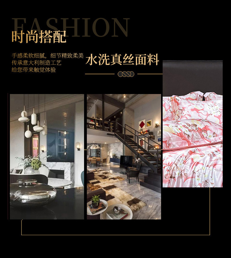 商品名称:黄鹂鸟 2025新款高端轻奢丝滑裸睡丝绸数码印花水洗真丝天丝四件套系列 -风格二 花开富贵