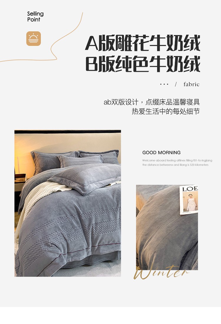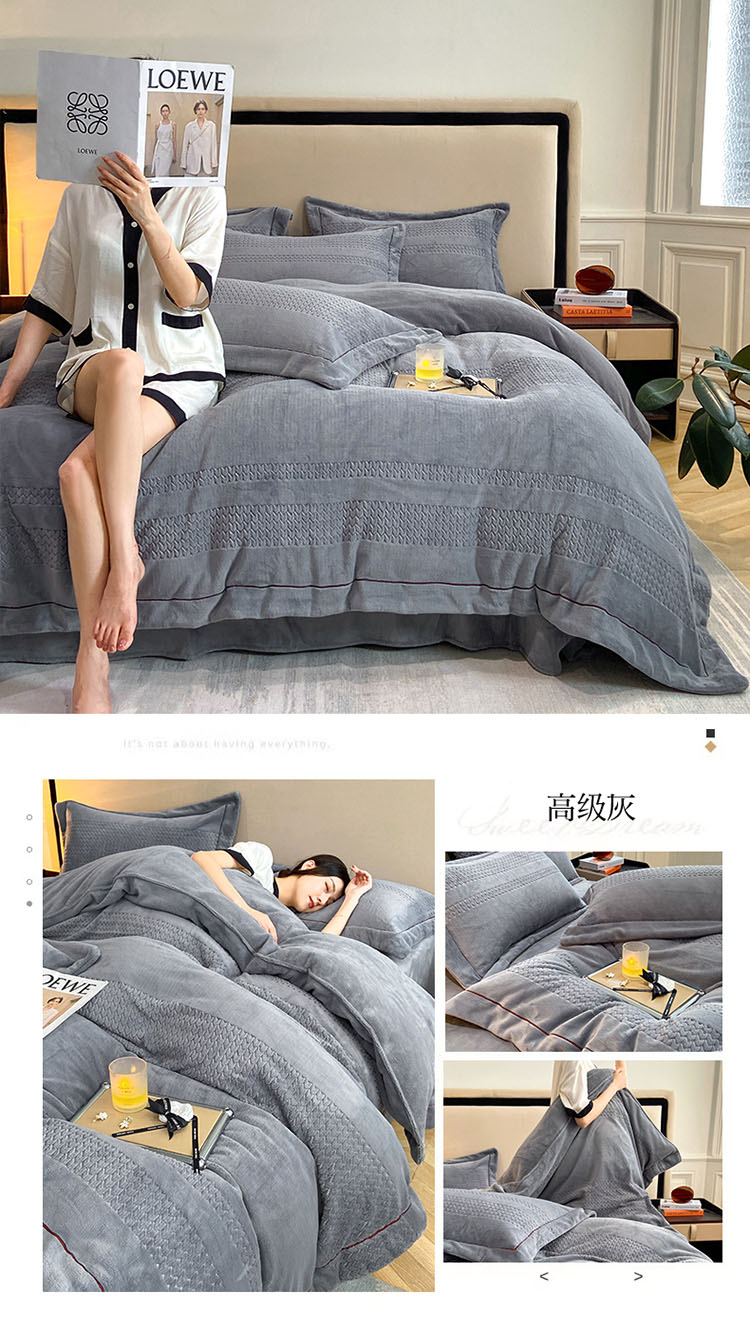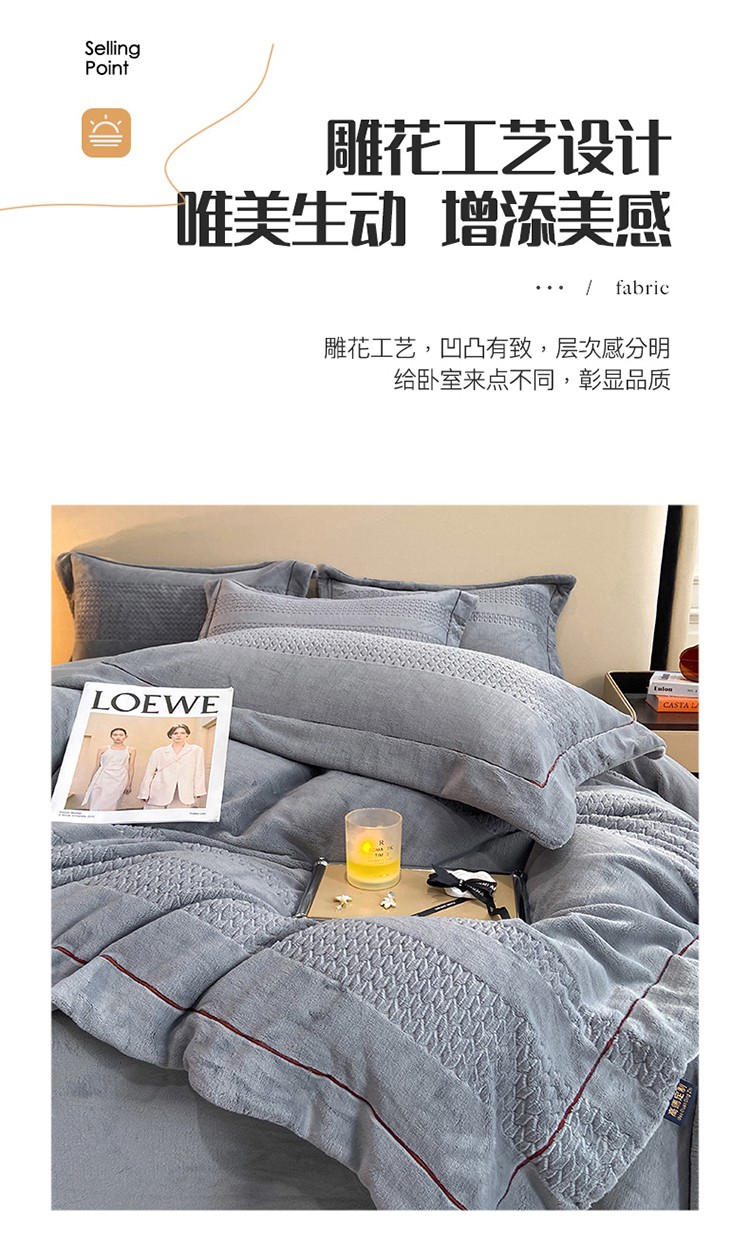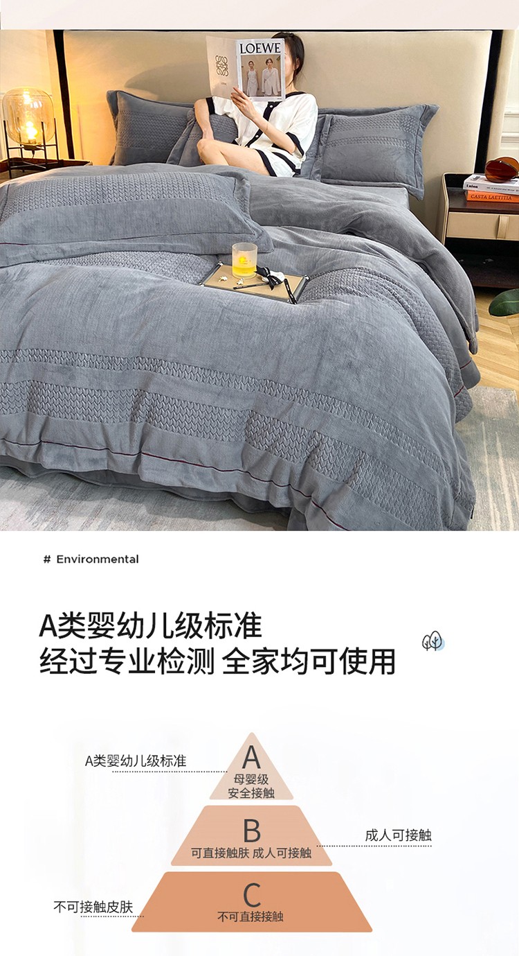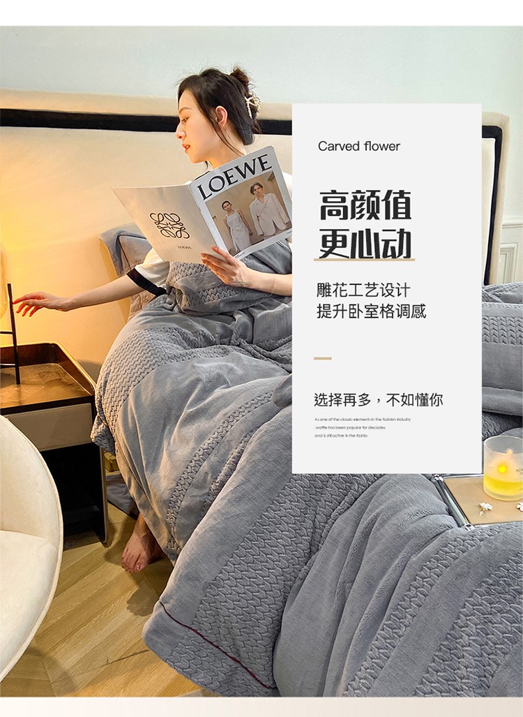 嗯呢 2023新款A类高克重轻奢雕花牛奶绒四件套 大麦-高级灰