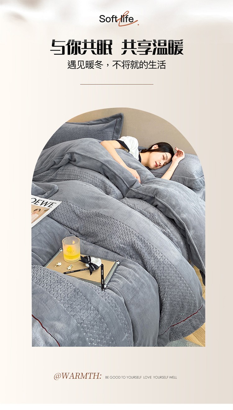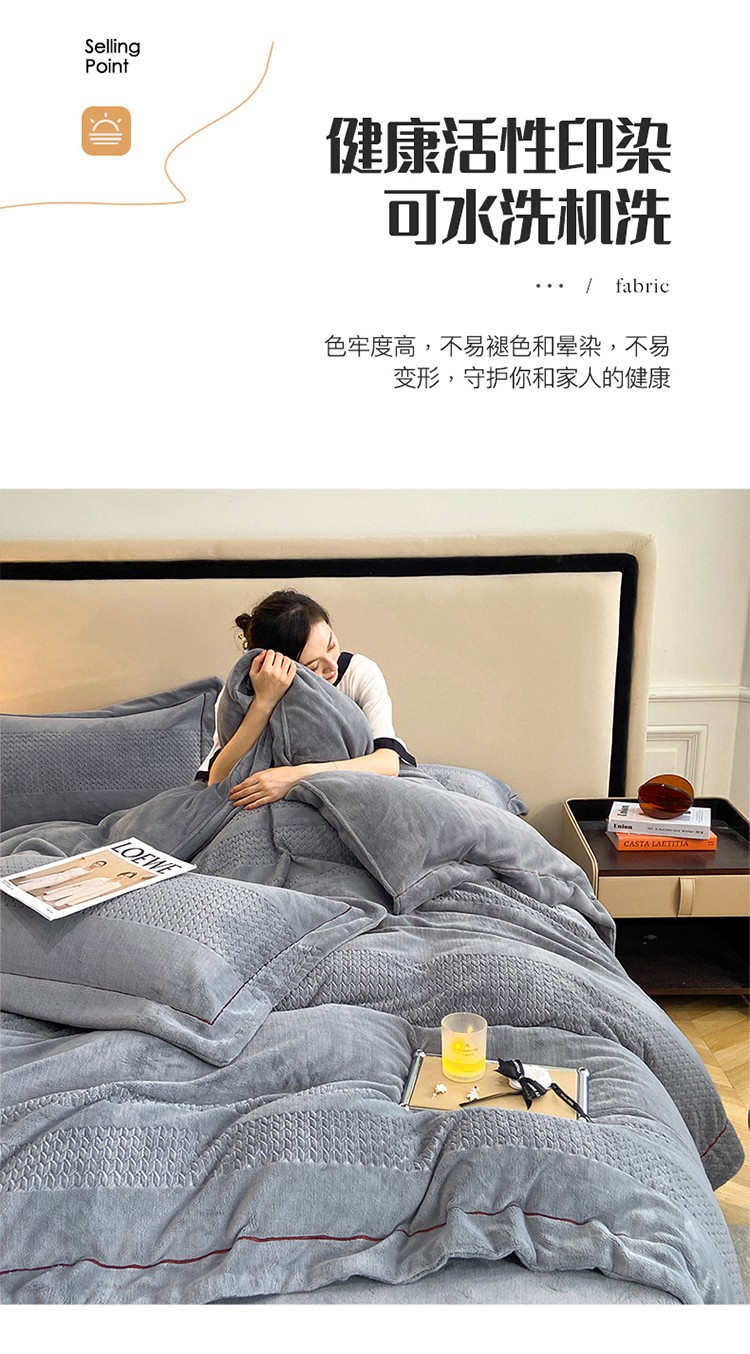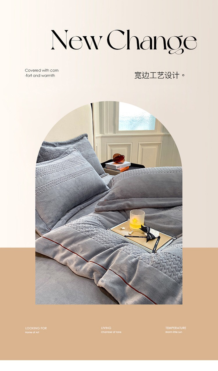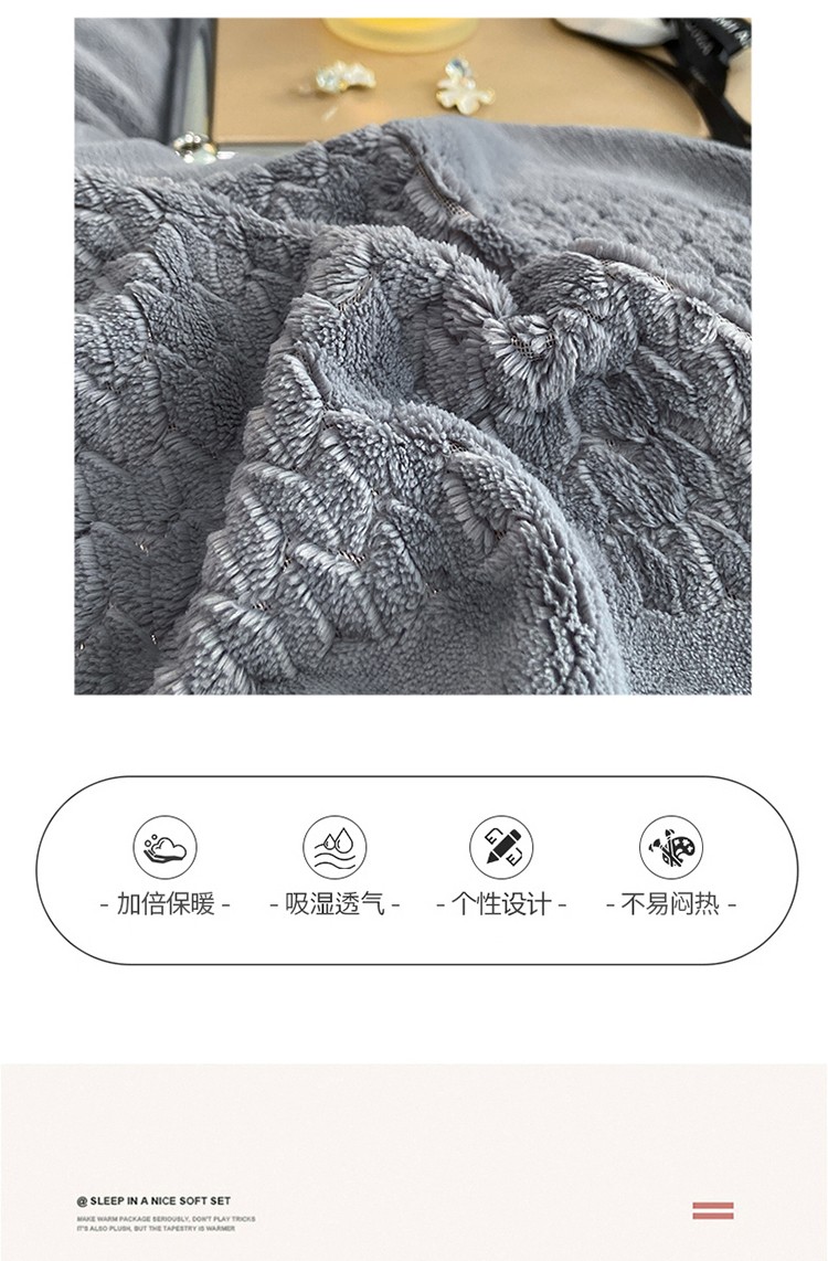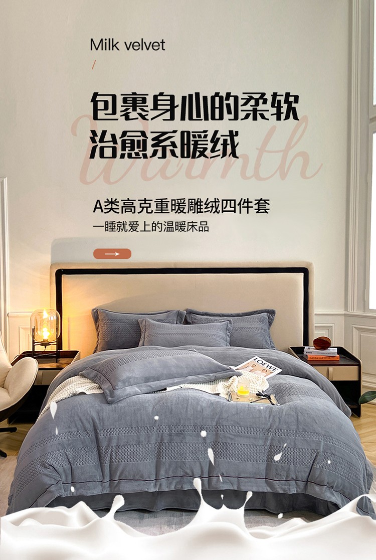 嗯呢 2023新款A类高克重轻奢雕花牛奶绒四件套 大麦-高级灰