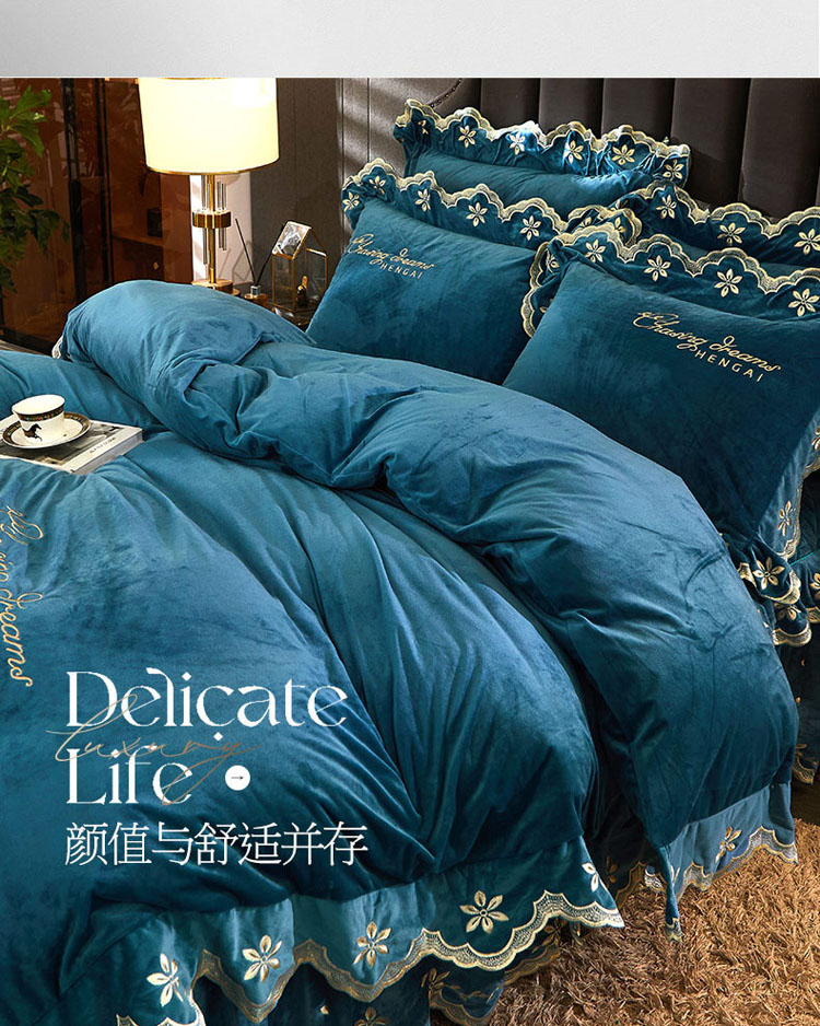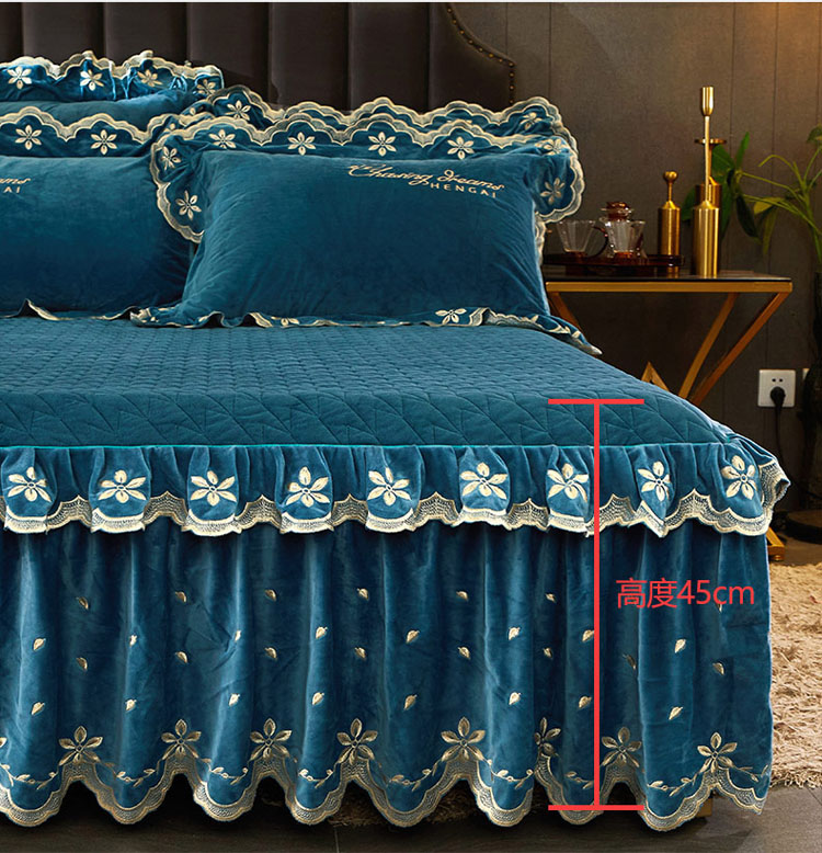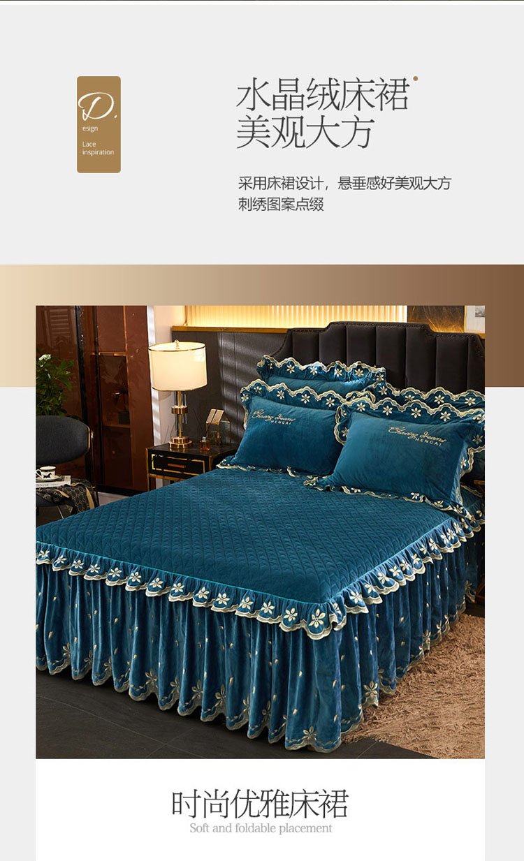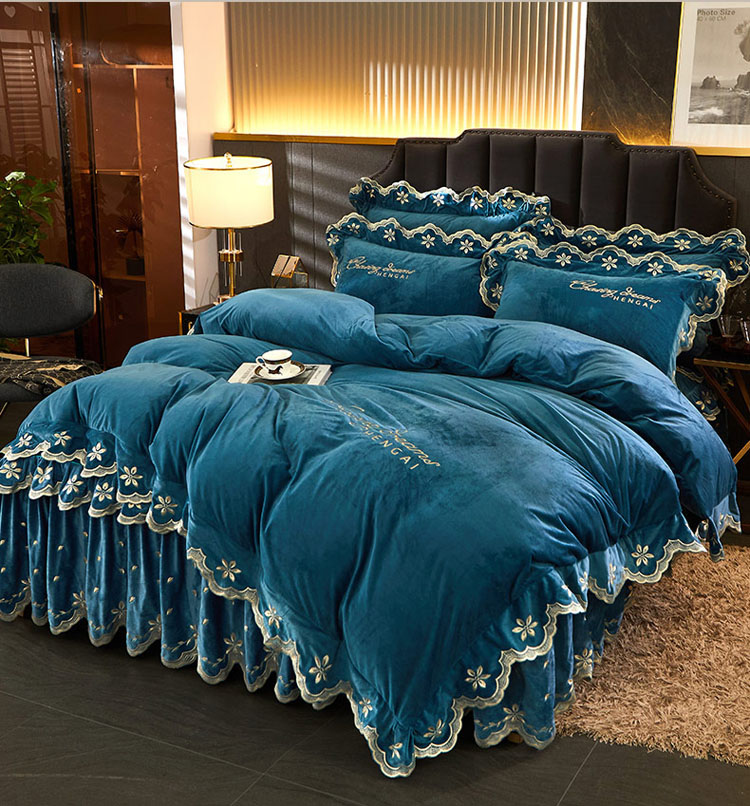 当前位置: 91家纺网 > 商品网购 > 床品套件 > 四件套 > 宝宝绒四件套 > 恒爱 2022新款秋冬轻奢宝宝绒刺绣床裙款四件套 宾利蓝