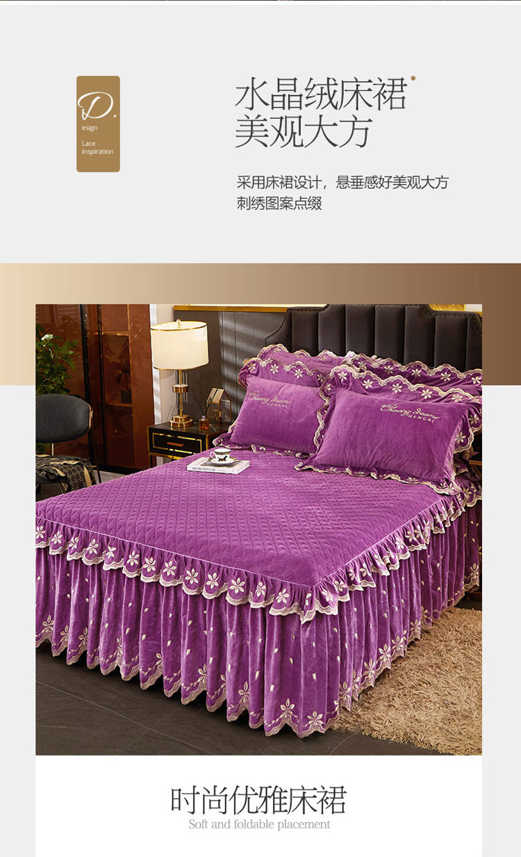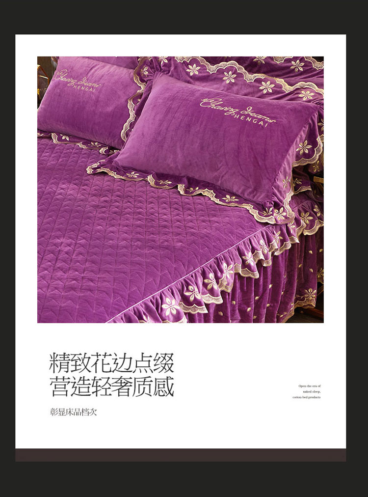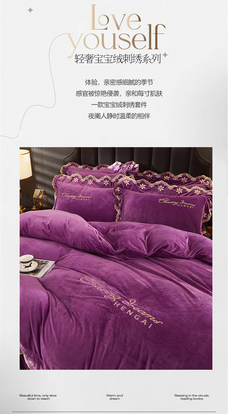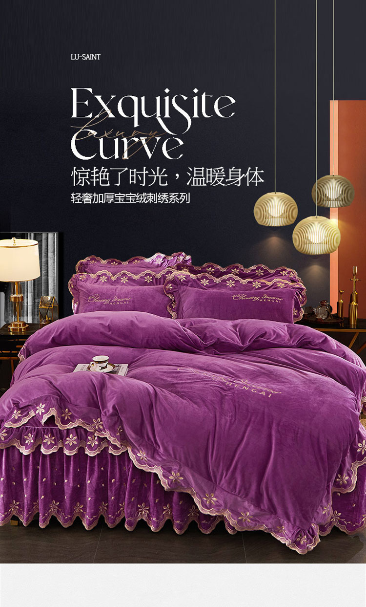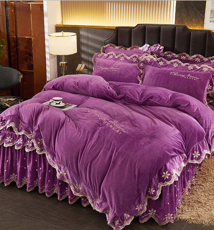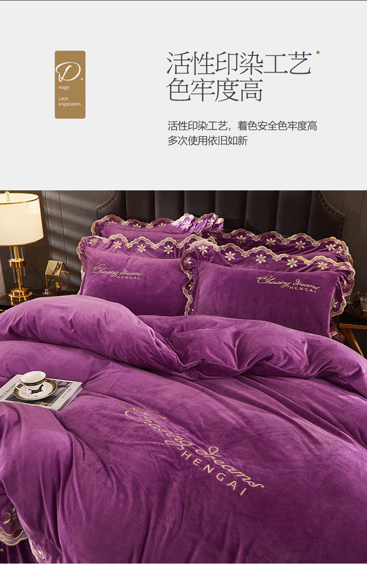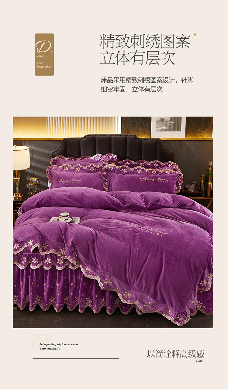 当前位置: 91家纺网 > 商品网购 > 床品套件 > 四件套 > 宝宝绒四件套 > 恒爱 2022新款秋冬轻奢宝宝绒刺绣床裙款四件套 香芋紫