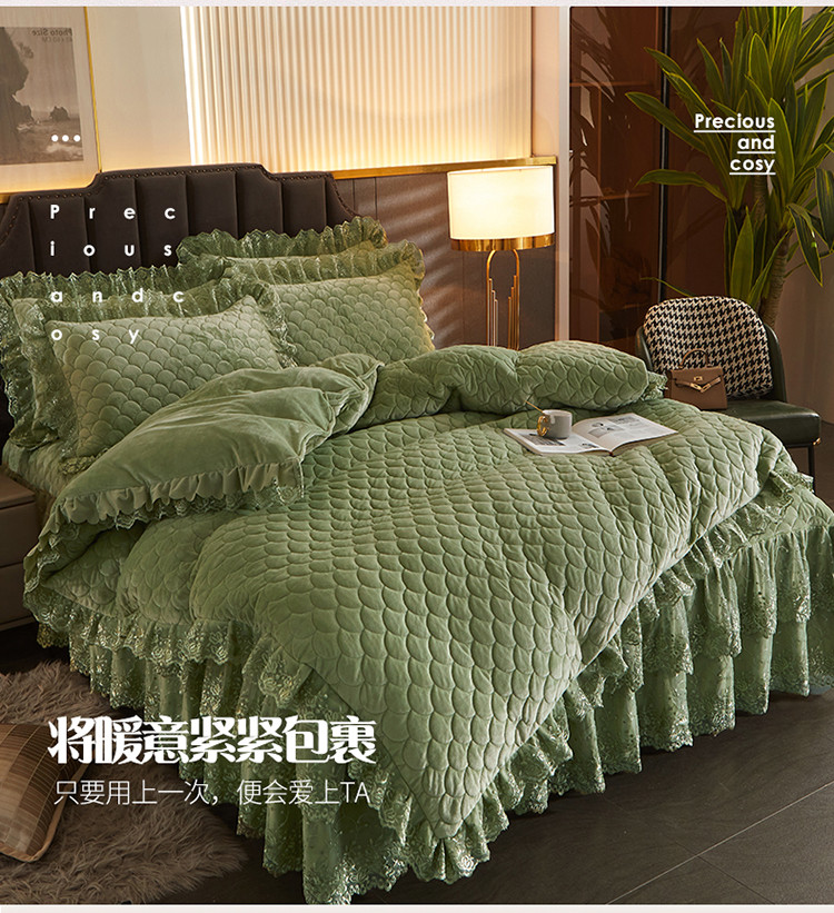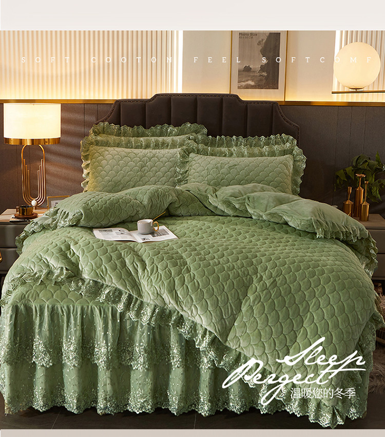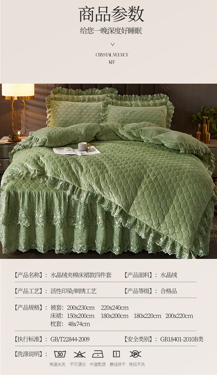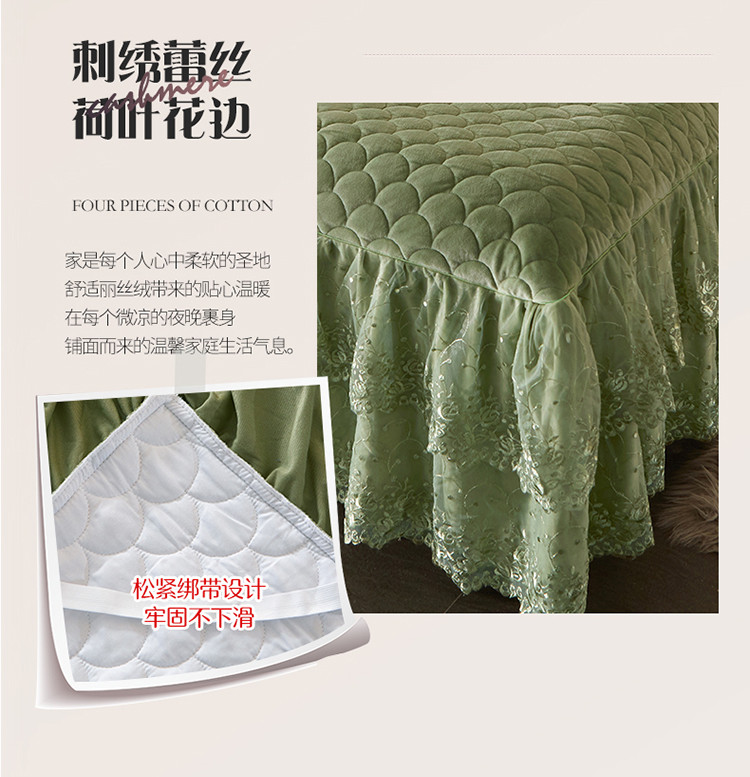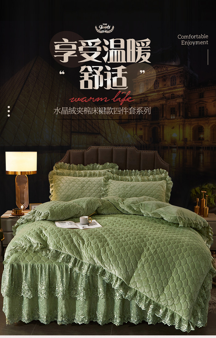 当前位置: 91家纺网 > 商品网购 > 床品套件 > 四件套 > 水晶绒四件套 > 恒爱 2022秋冬水晶绒翩翩花舞夹棉床裙四件套 橄榄绿