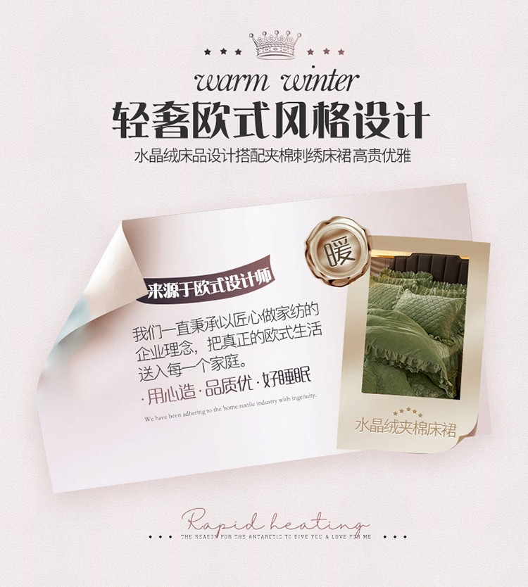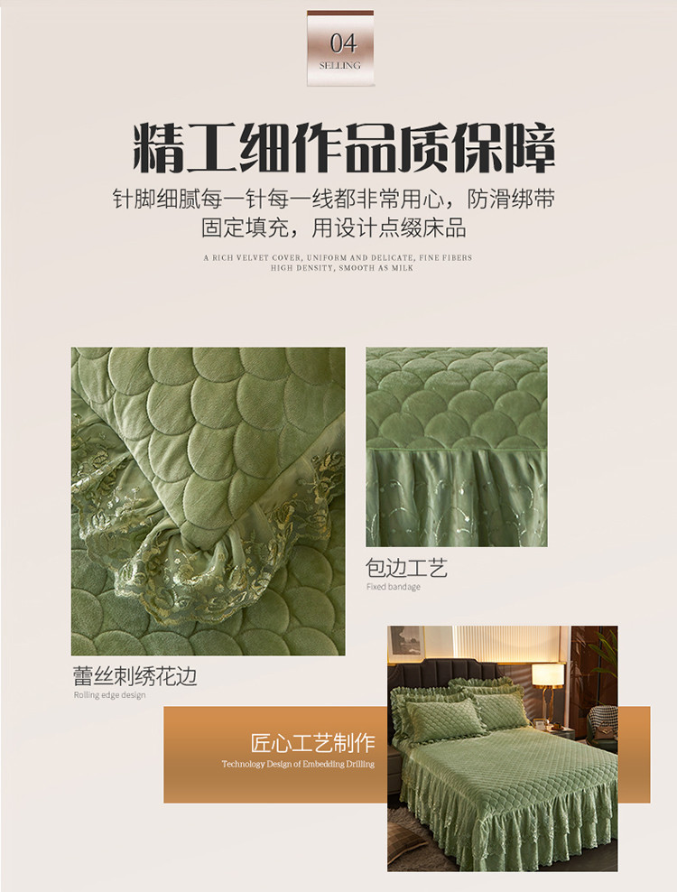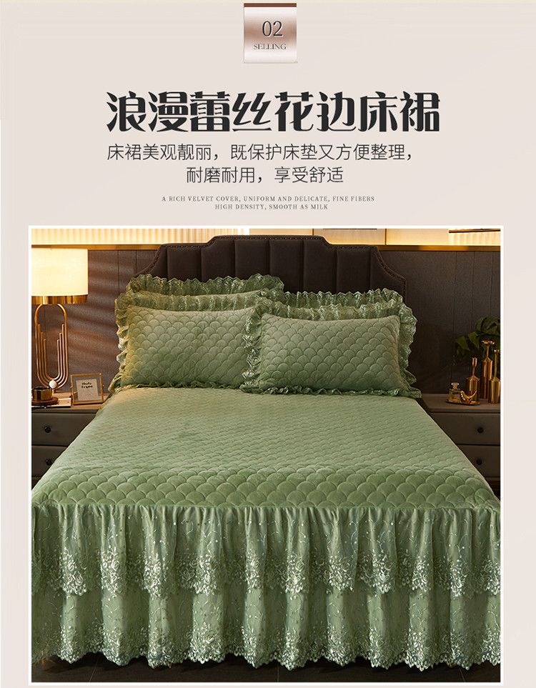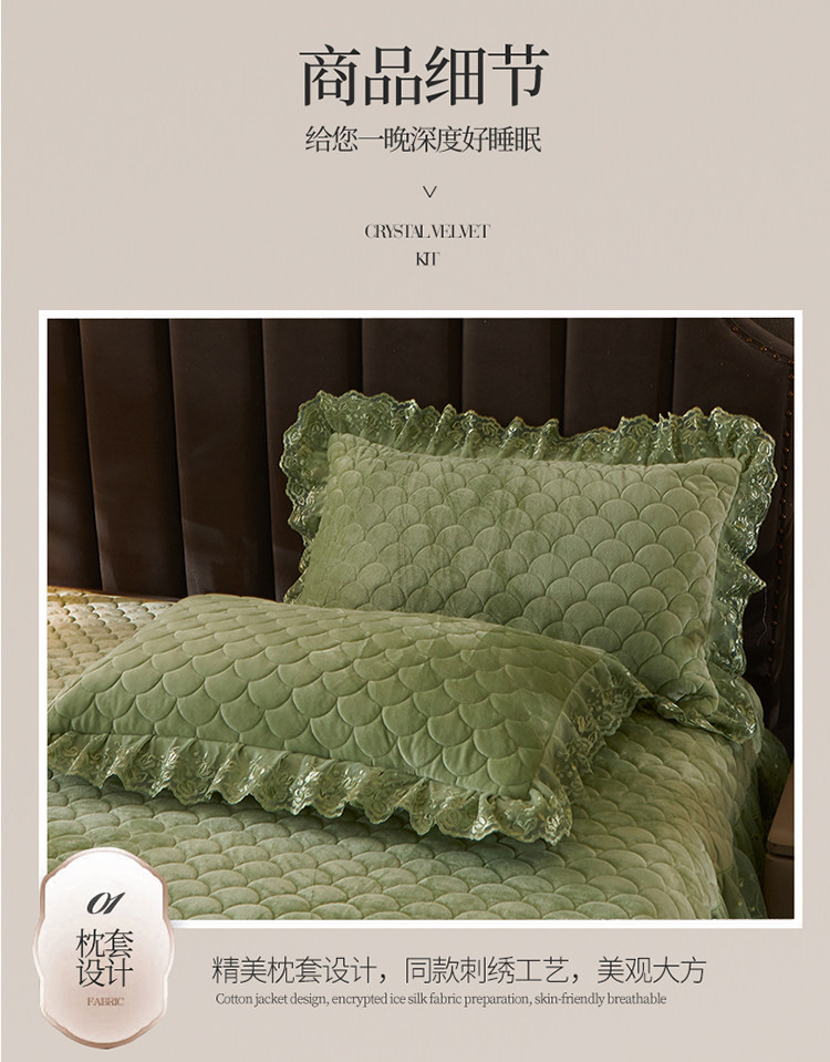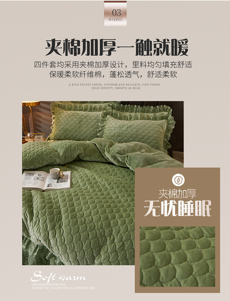 当前位置: 91家纺网 > 商品网购 > 床品套件 > 四件套 > 水晶绒四件套 > 恒爱 2022秋冬水晶绒翩翩花舞夹棉床裙四件套 橄榄绿