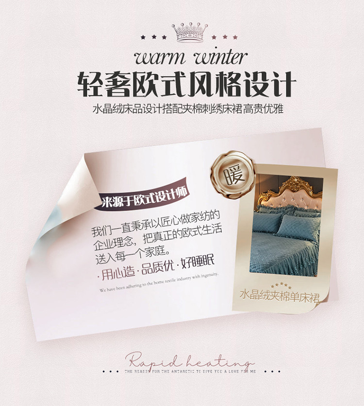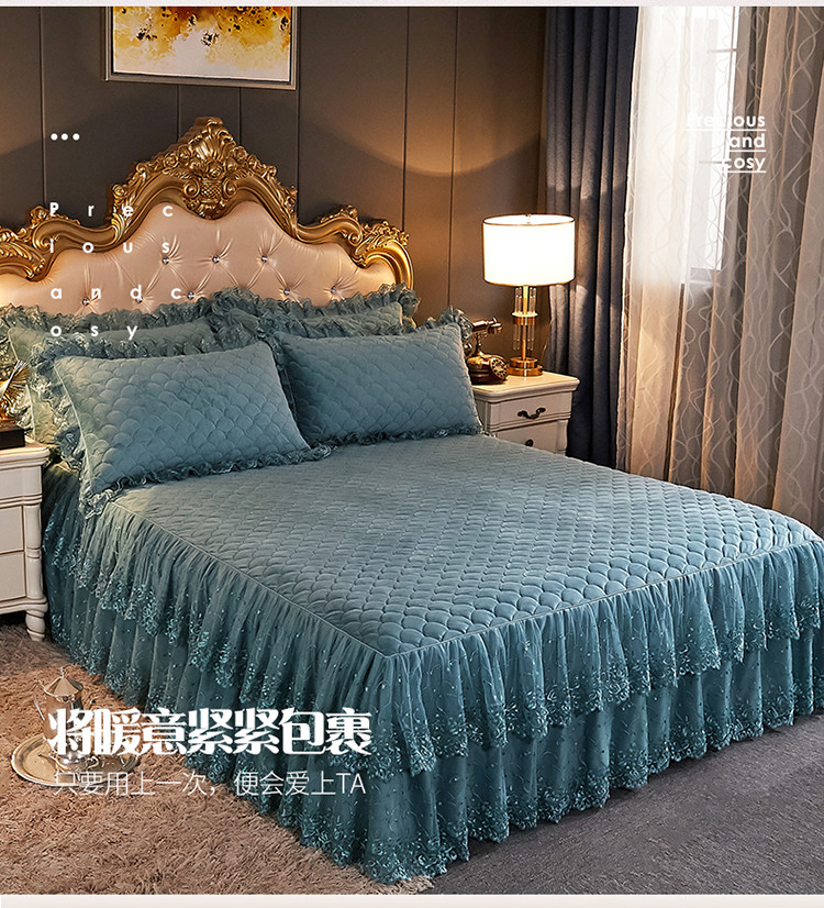 • 91家纺网 家纺一手货源 找家纺 恒爱 2022秋冬水晶绒翩翩花舞夹棉单床裙 孔雀绿