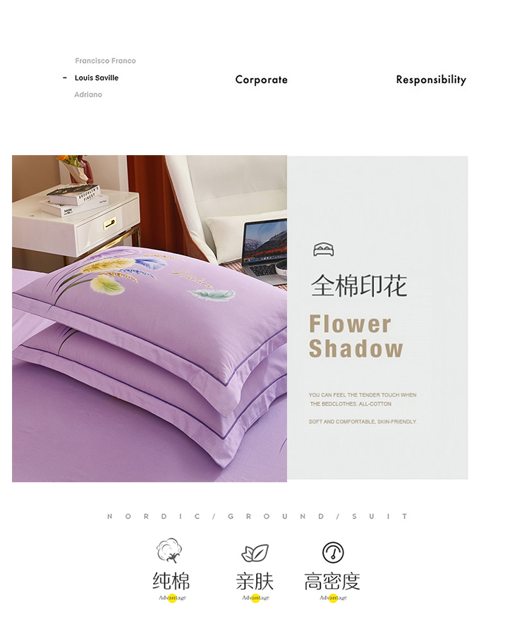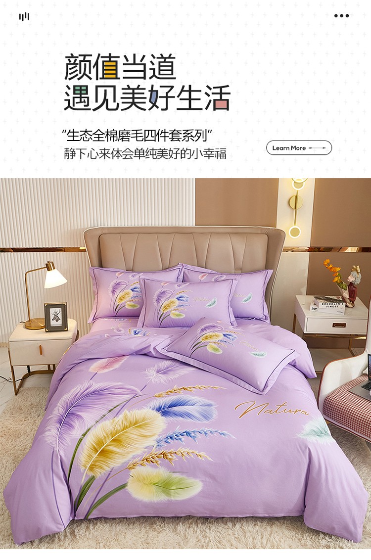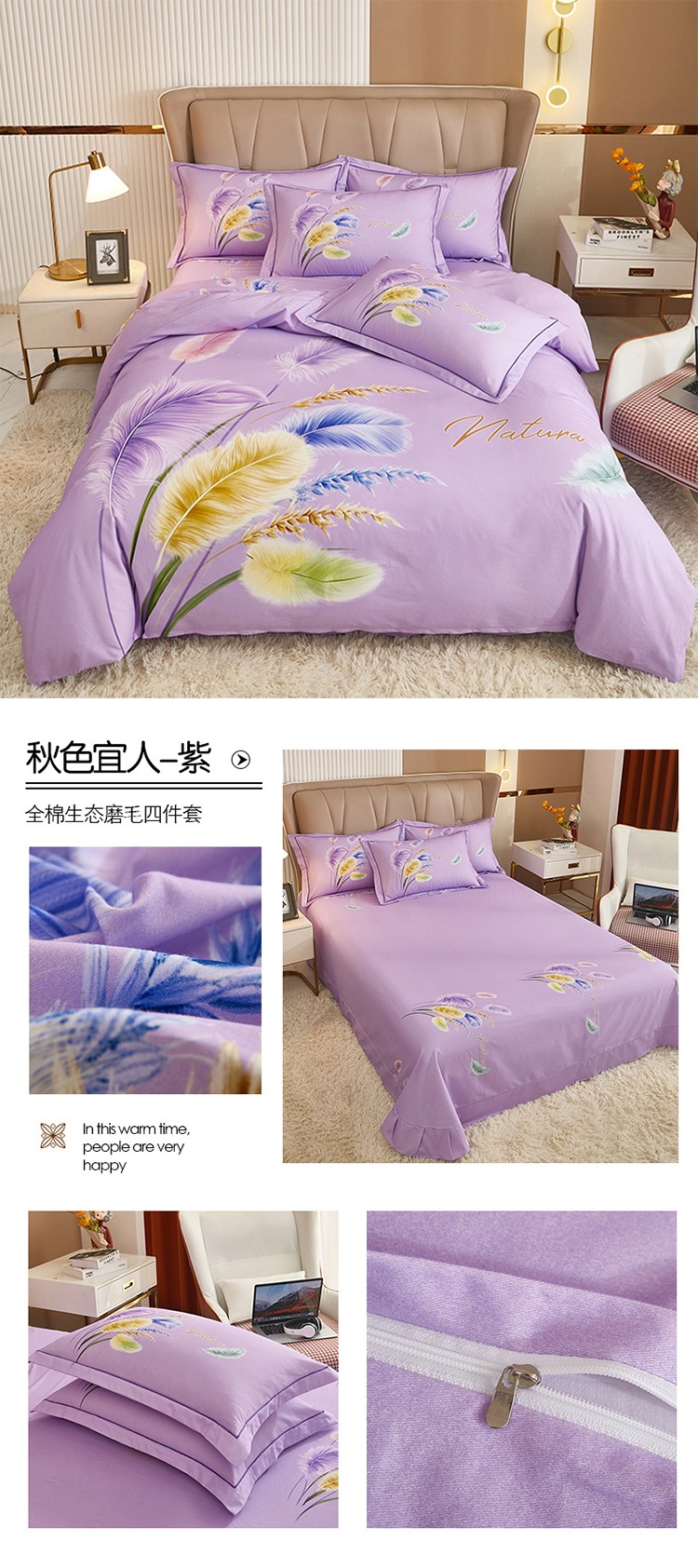 商品名称:雲归梦 2022年新款加厚全棉大版四件套第二批-花卉 秋色宜人-紫