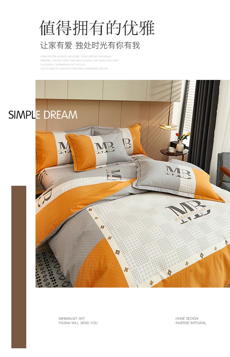(总)雲归梦 2021新款全棉生态磨毛刺绣四件套,慕思-橙色,慕思-粉紫,慕思-灰,慕思-米黄,慕思-青绿,慕思-天蓝