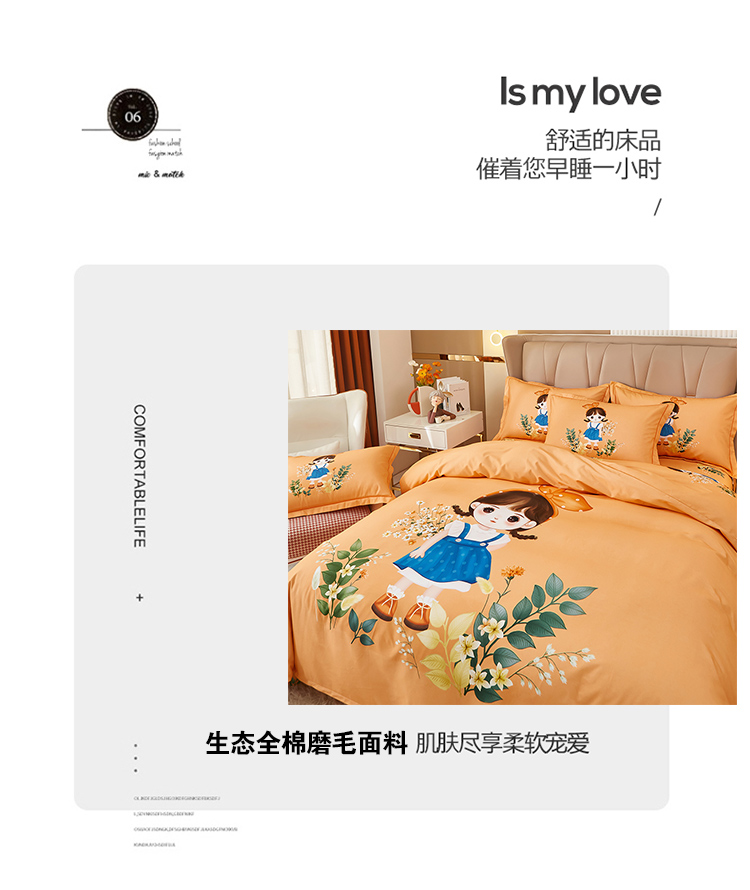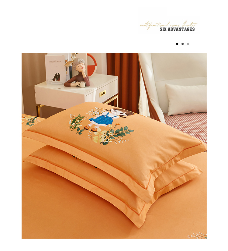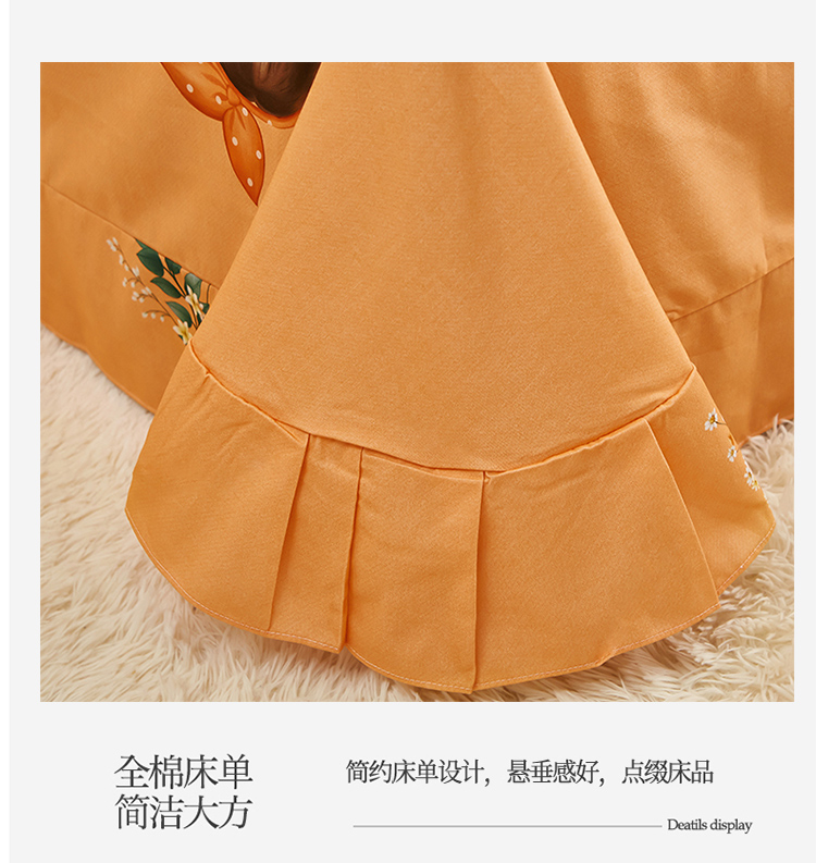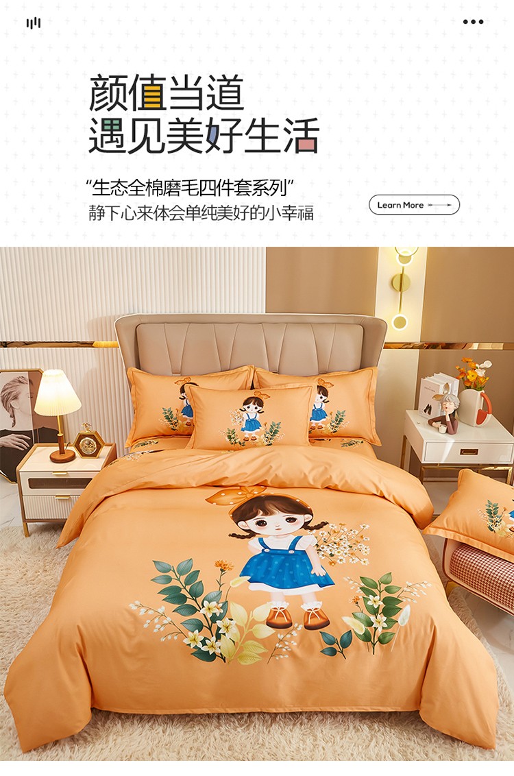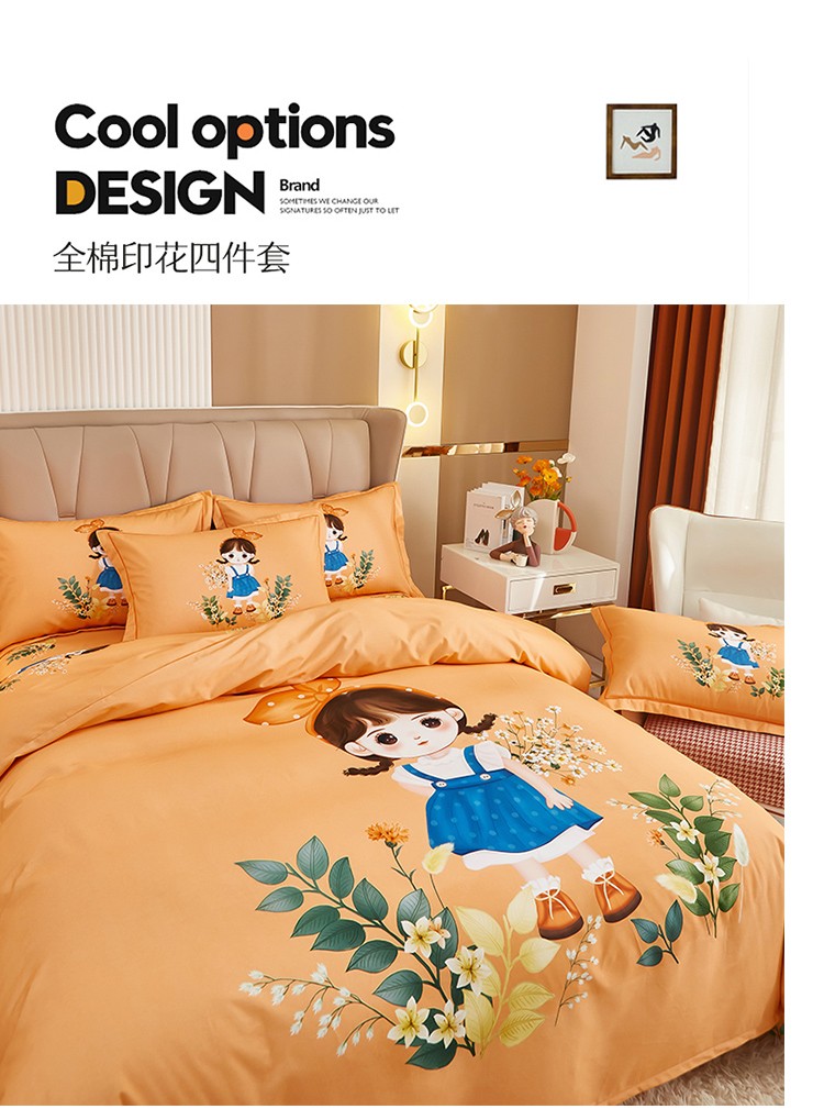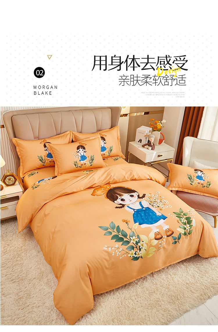 商品名称:雲归梦 2022年新款加厚全棉大版四件套第二批-格条卡通 甜丫丫-桔