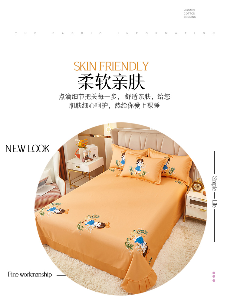 (总)雲归梦 2021新款全棉生态磨毛刺绣四件套,慕思-橙色,慕思-粉紫,慕思-灰,慕思-米黄,慕思-青绿,慕思-天蓝