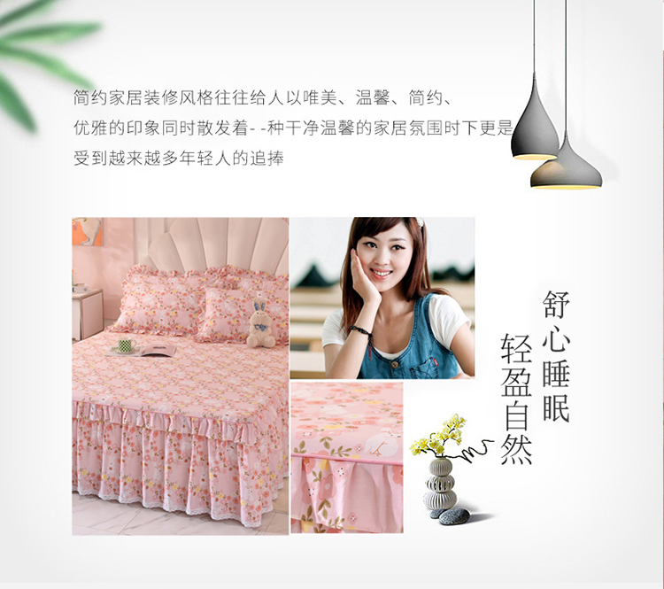 商品名称:美达2025全棉蕾丝小花边单层床裙四件套 米菲兔