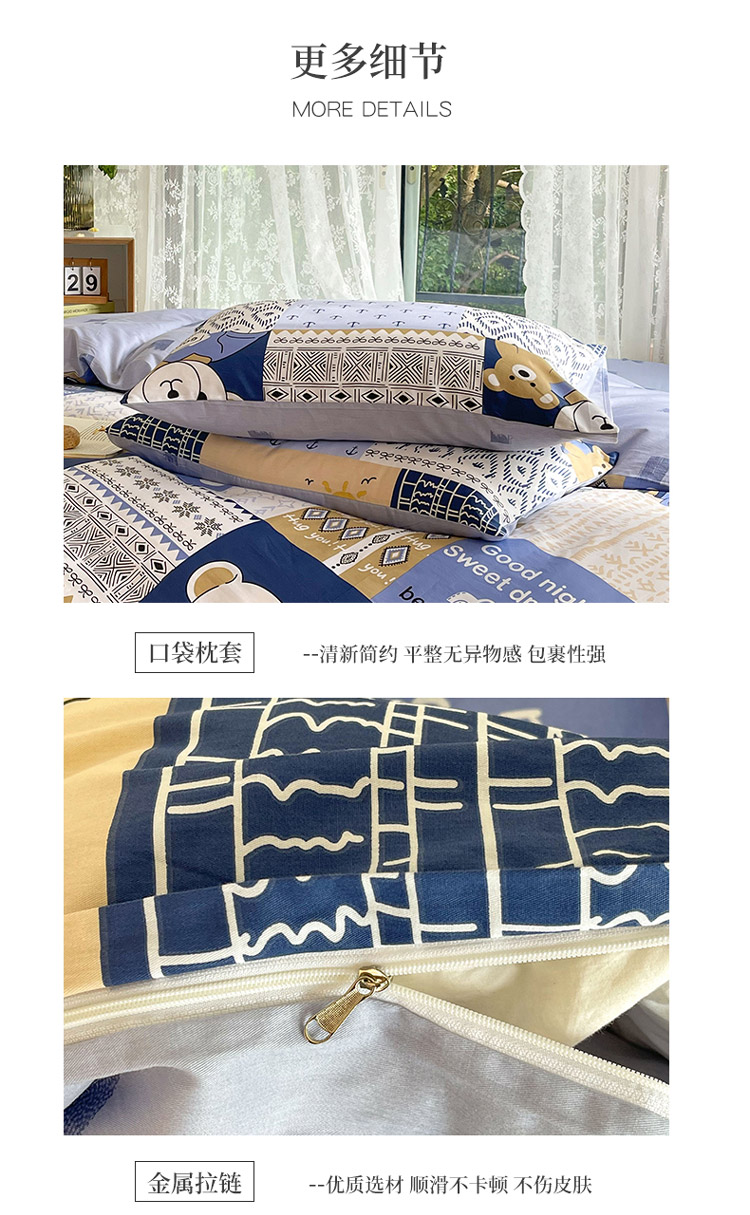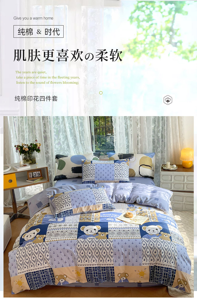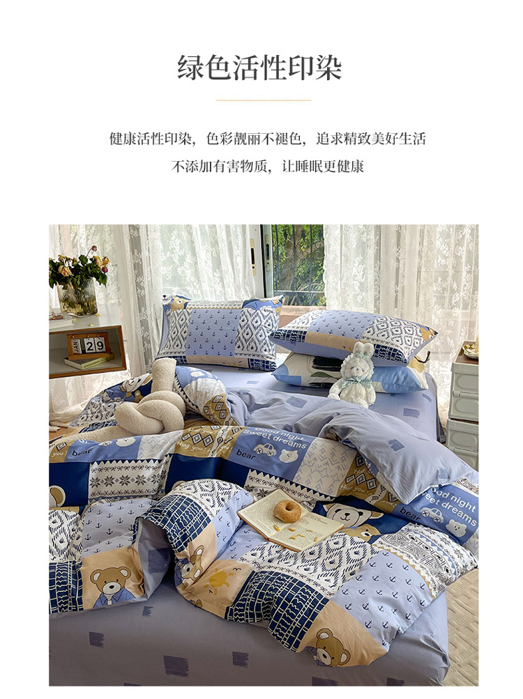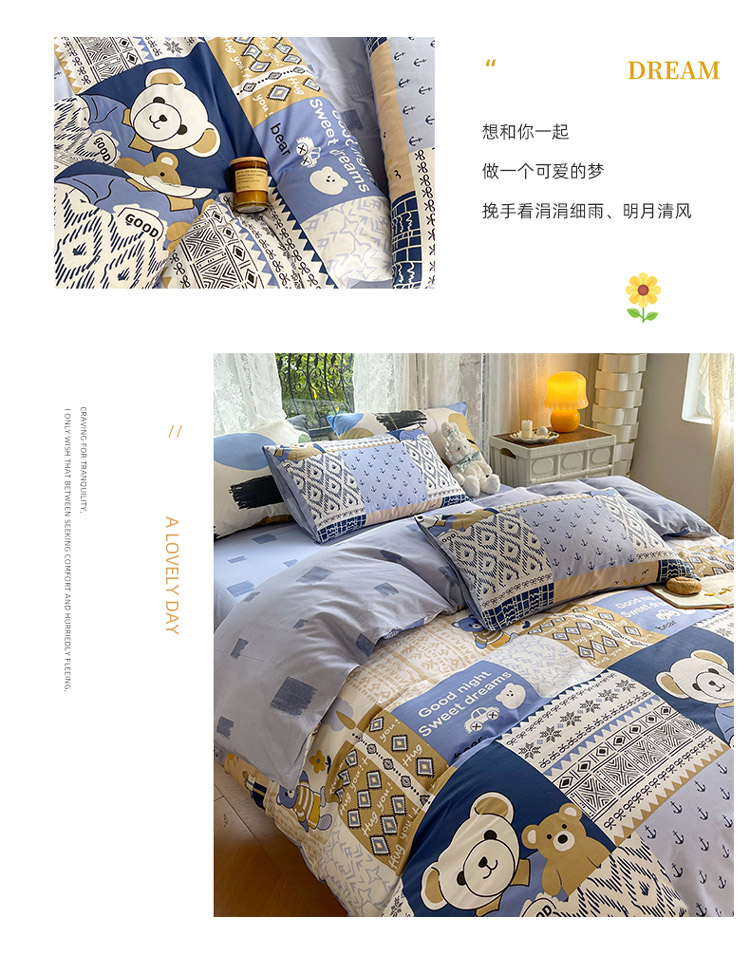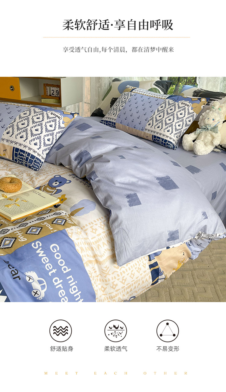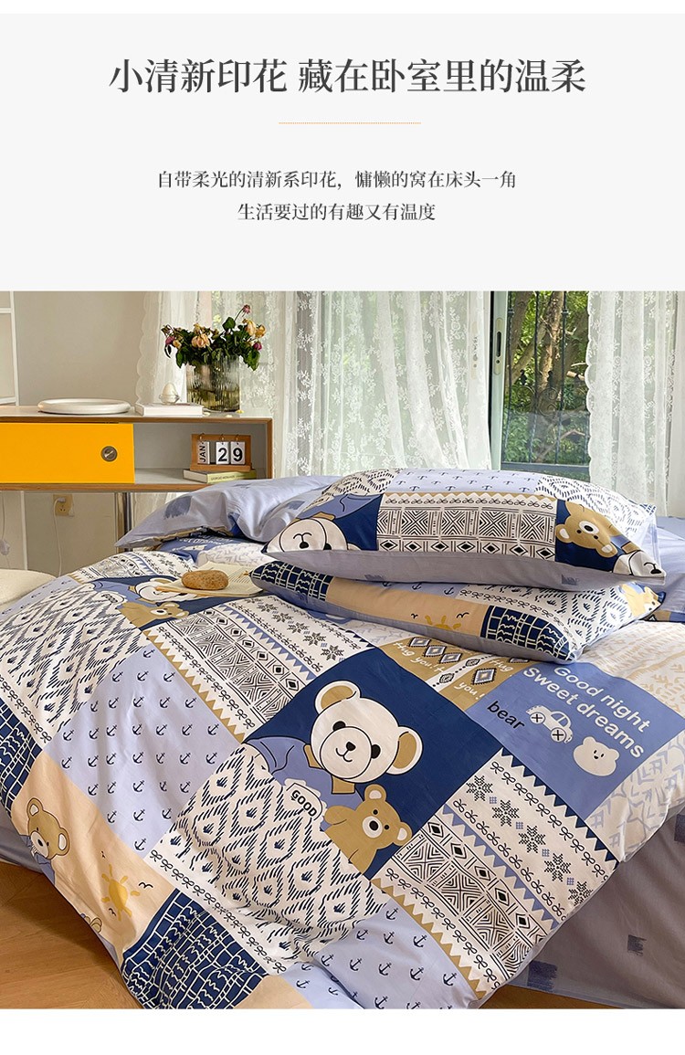 当前位置: 91家纺网 > 商品网购 > 床品套件 > 四件套 > 全棉普通四件套 > 感遇2022新款纯棉印花四件套 伙伴熊