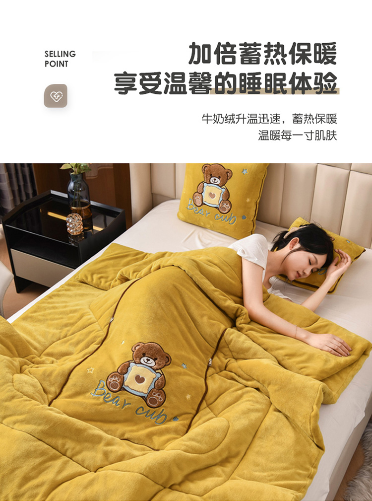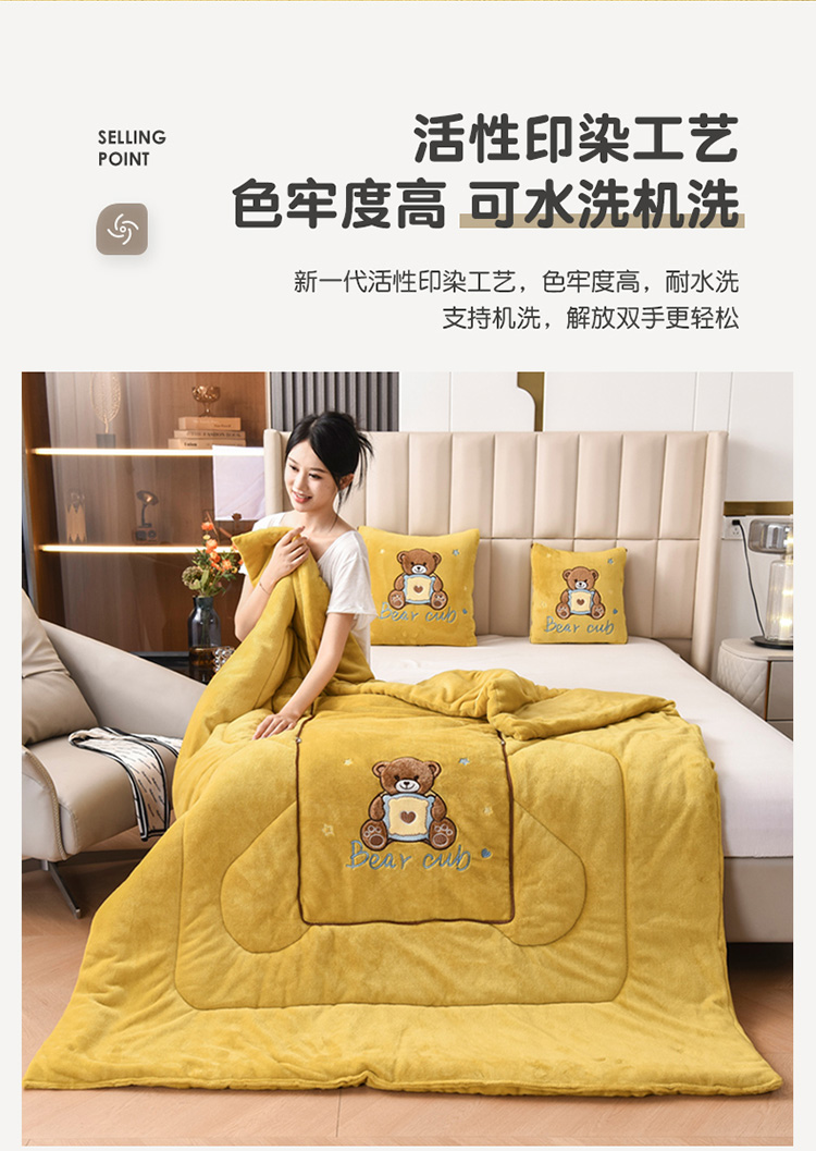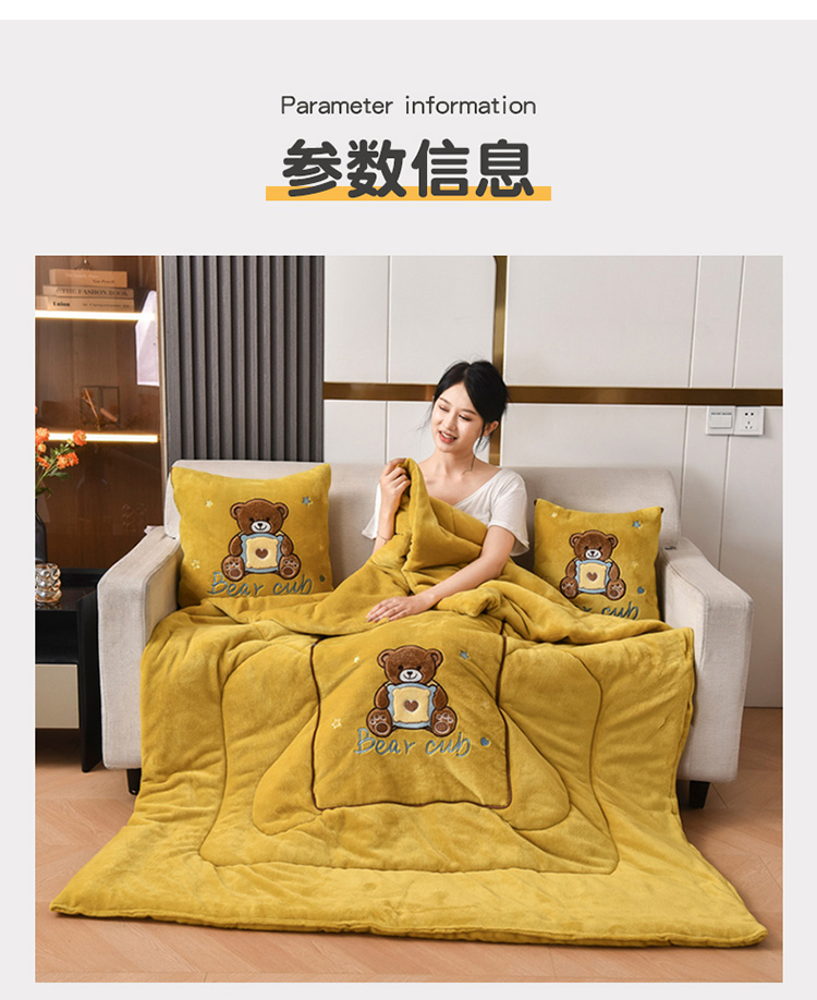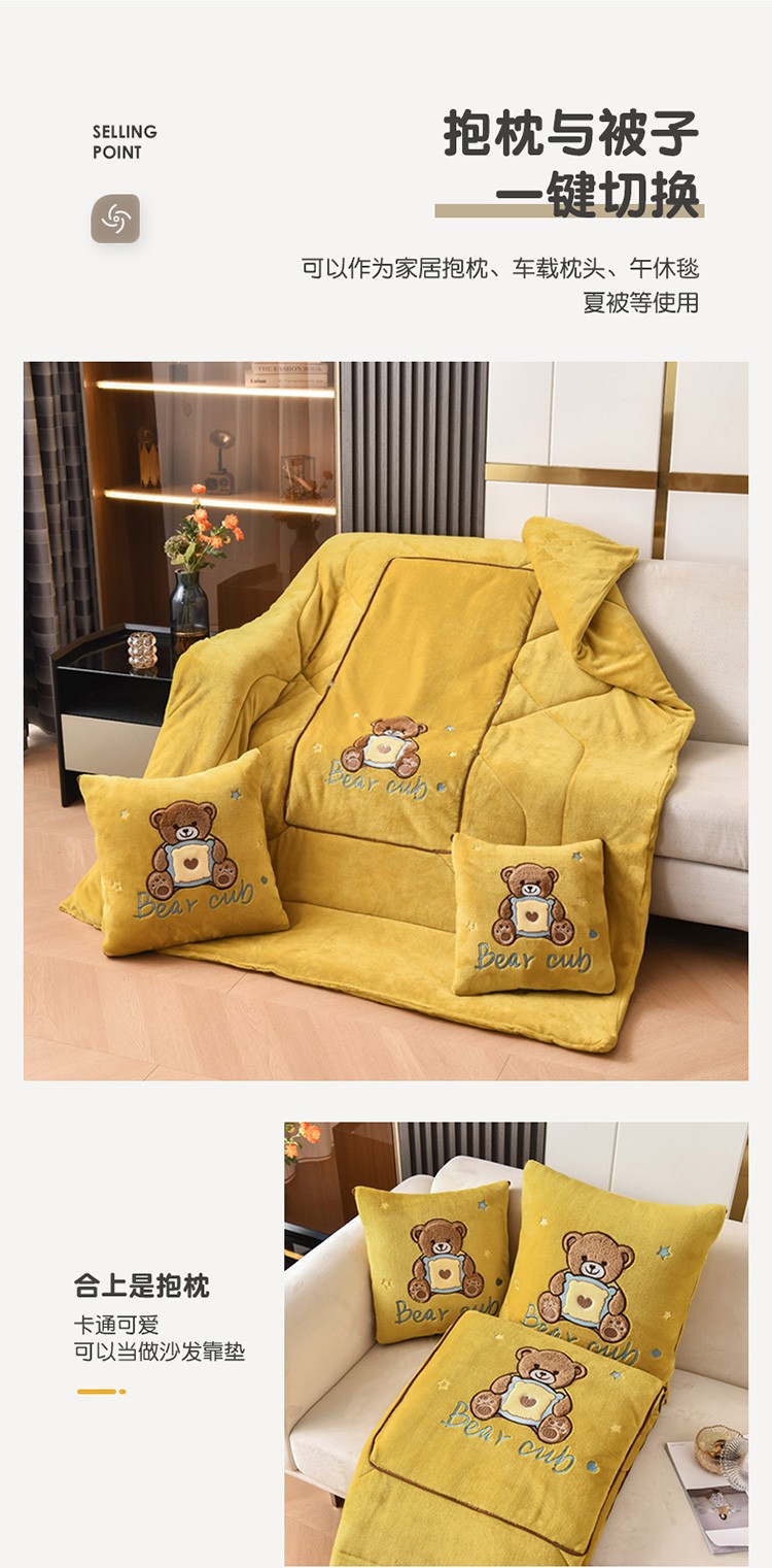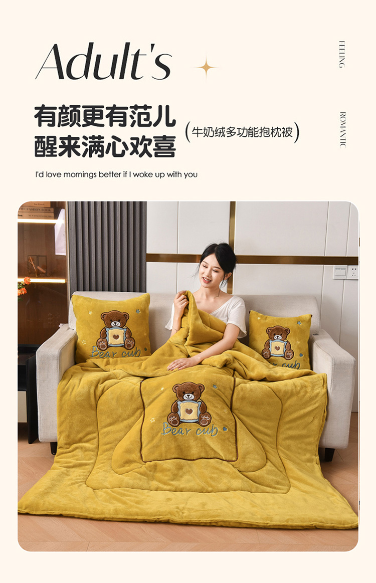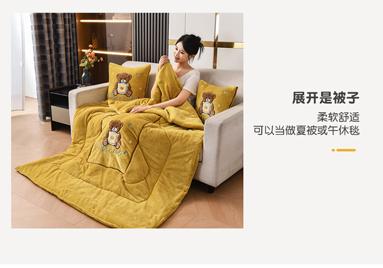 商品名称:阳光依佰2022新款牛奶绒多功能抱枕被系列-艾尼熊 明黄