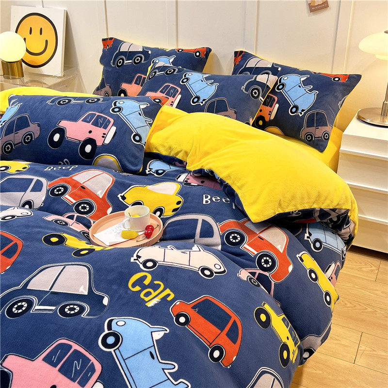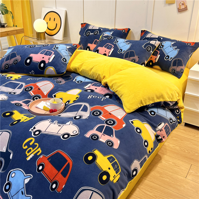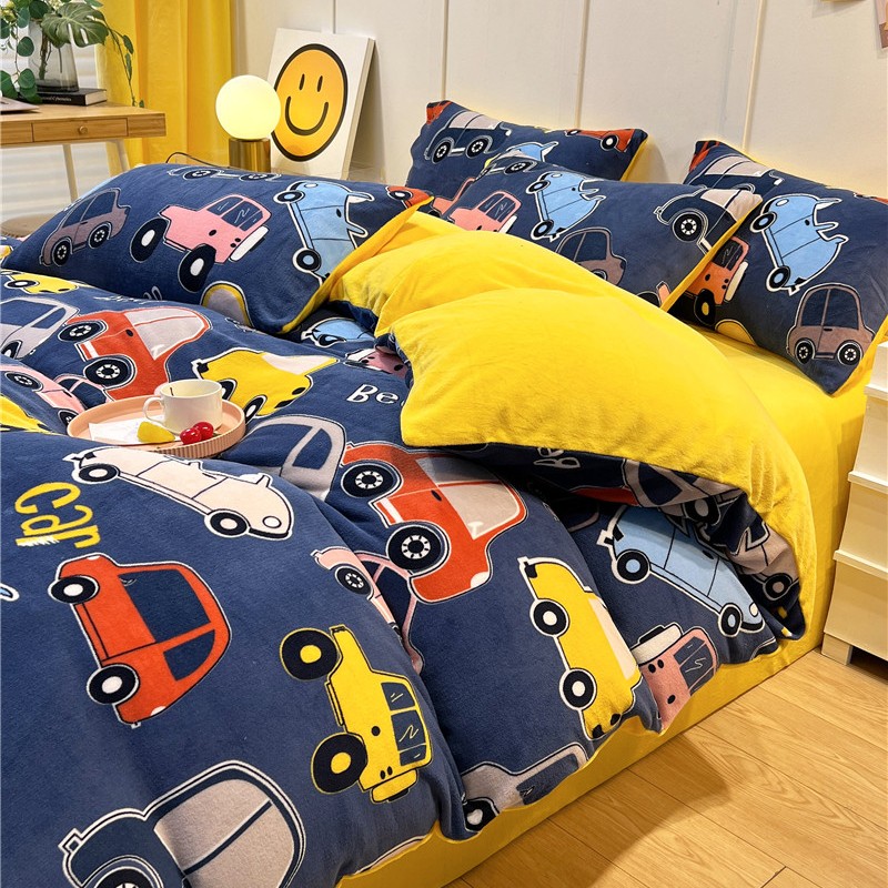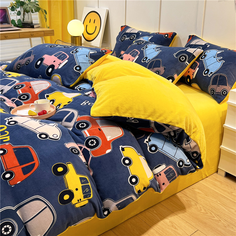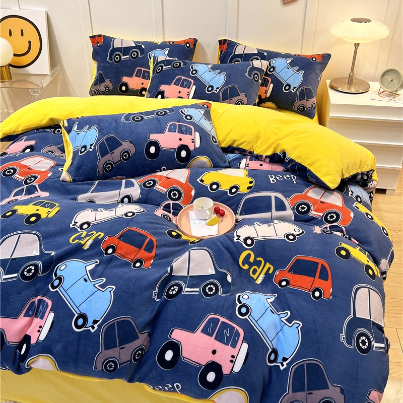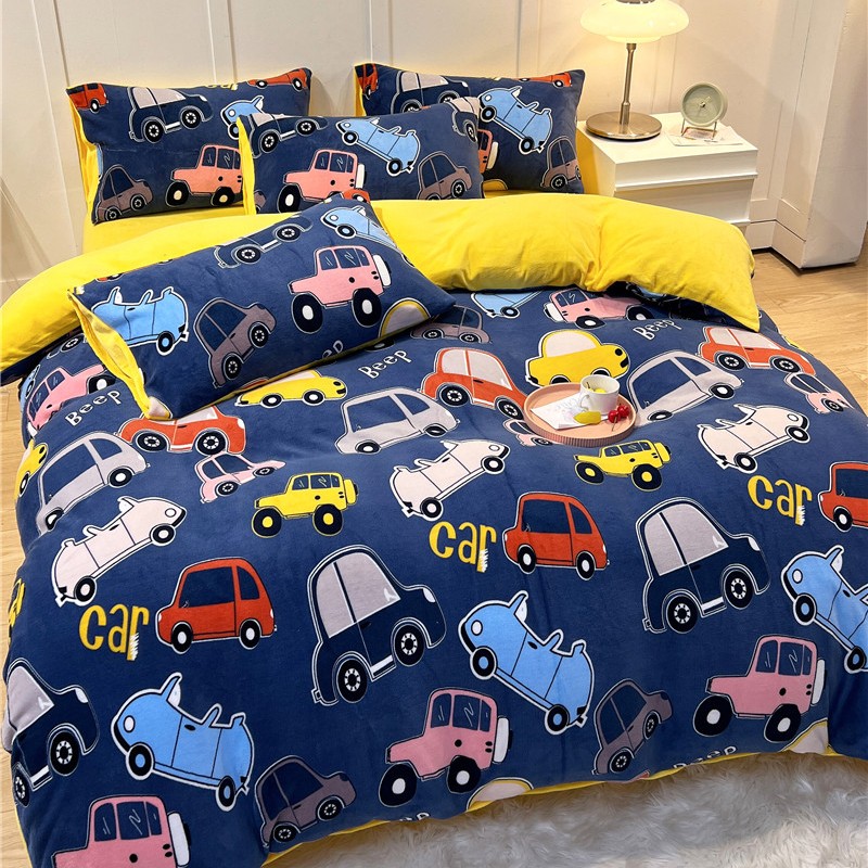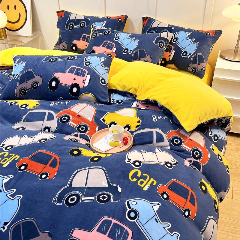 孩子王新款冬季加厚牛奶绒水晶绒珊瑚绒印花系列单被套 欢乐汽车
