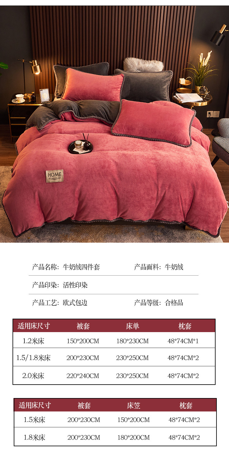 当前位置: 91家纺网 > 商品网购 > 床品套件 > 四件套 > 牛奶绒四件套 > 闲鱼家纺 2025款高克重欧式包边牛奶绒四件套-深豆沙