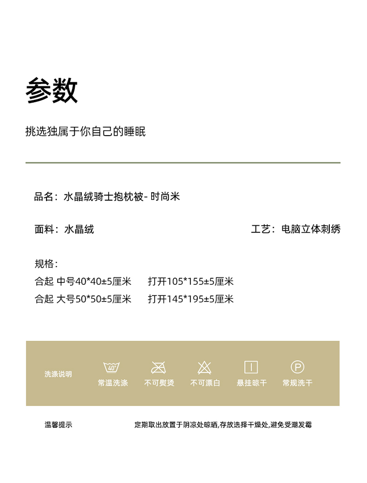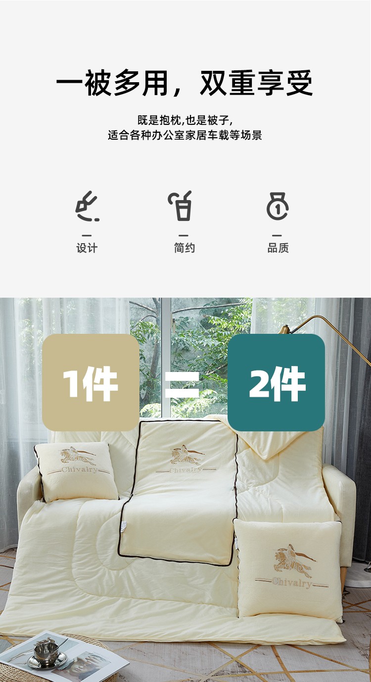 商品名称:翰轩家居 2022新款水晶绒绣花抱枕被系列-骑士 骑士-时尚米