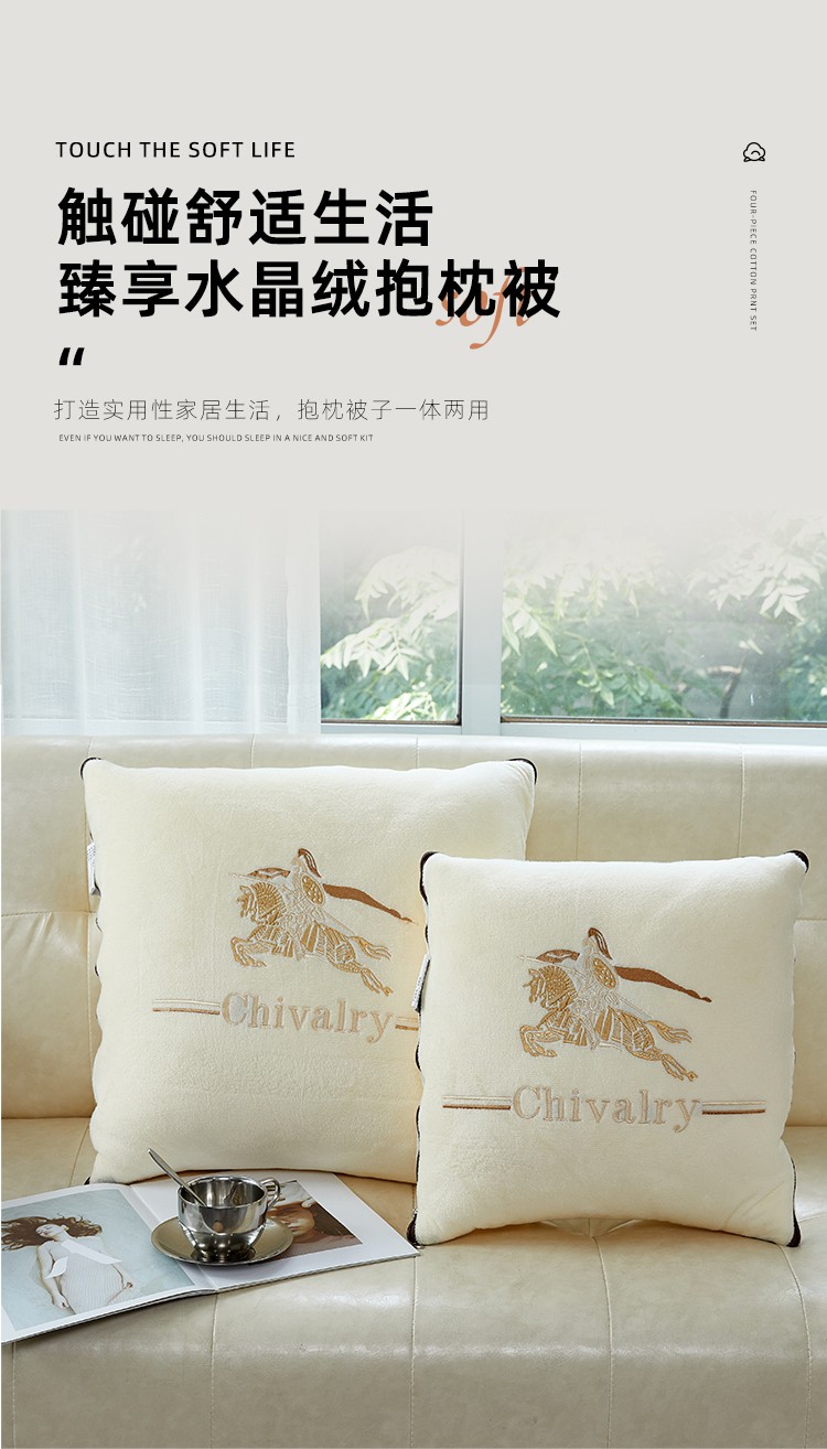 翰轩家居 2022新款水晶绒绣花抱枕被系列-骑士 骑士-时尚米