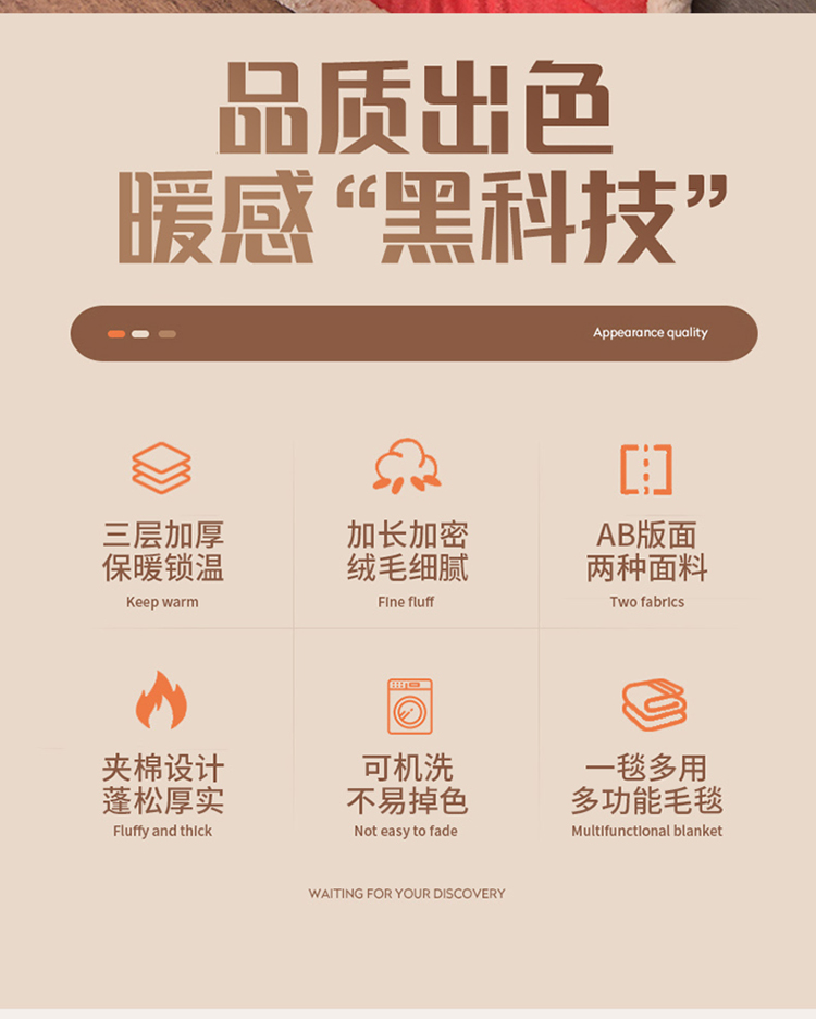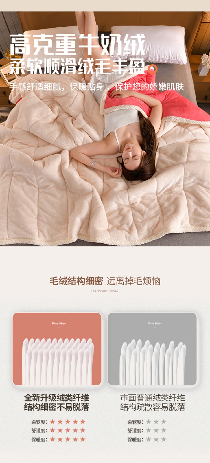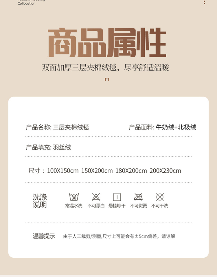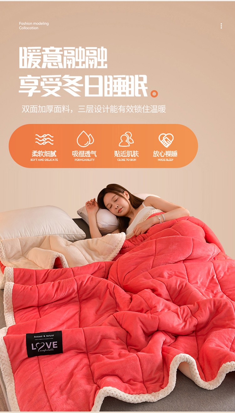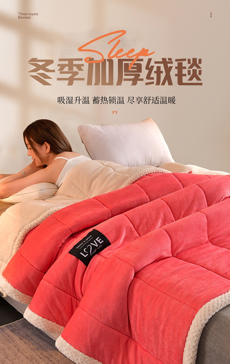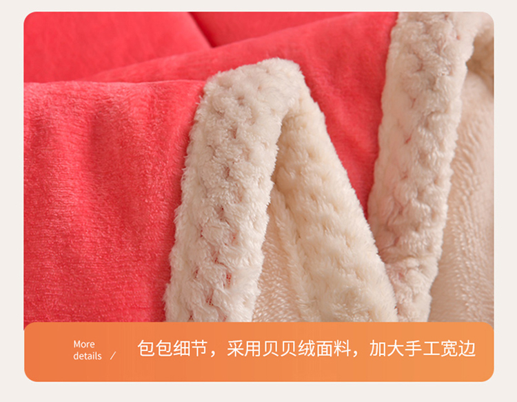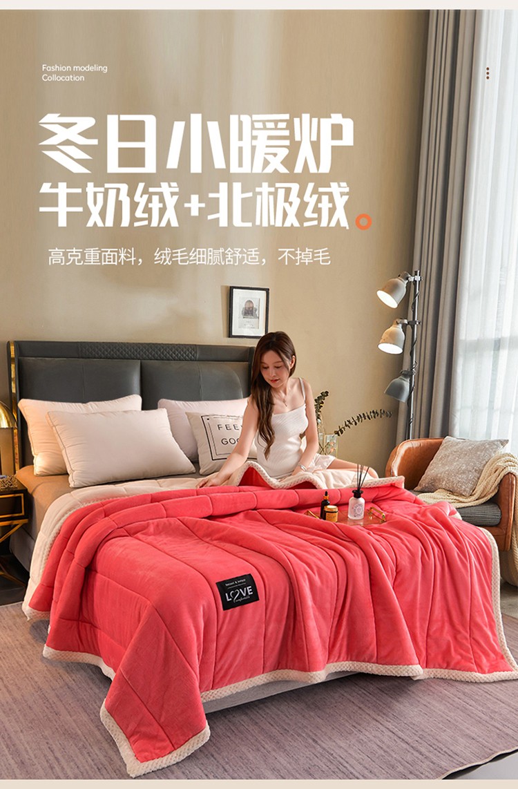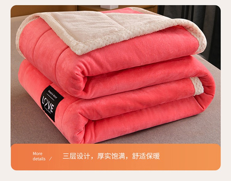 商品名称:粉色 加厚三层夹棉牛奶绒毯冬季保暖午睡法莱绒毛毯