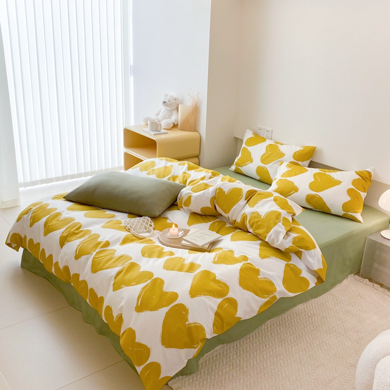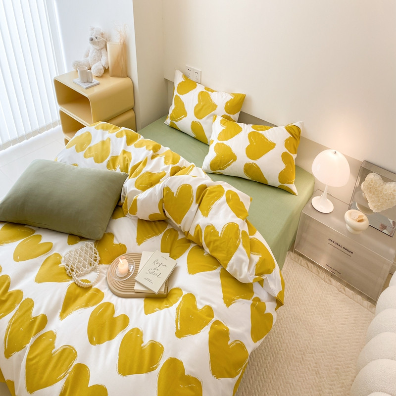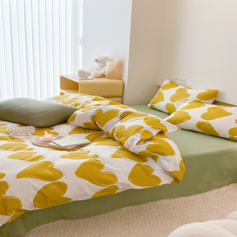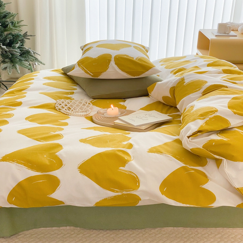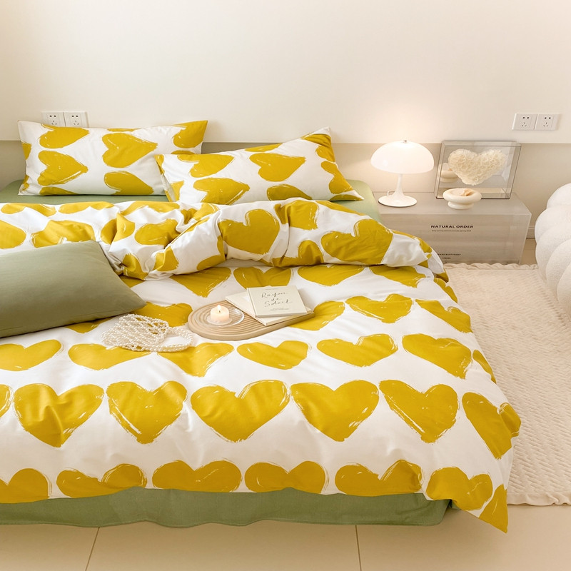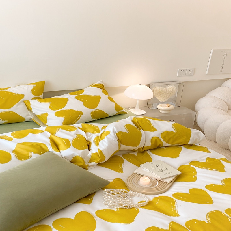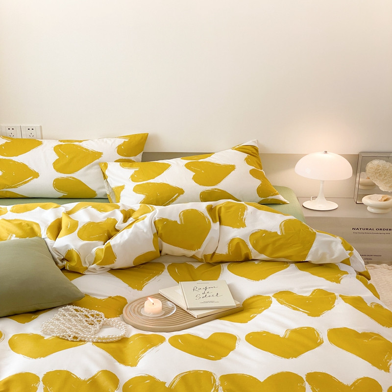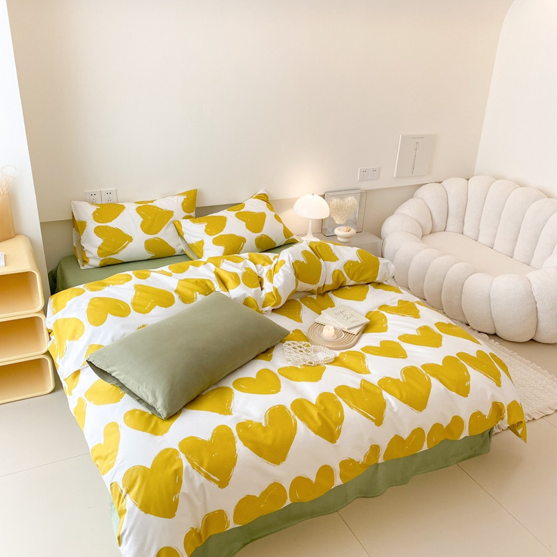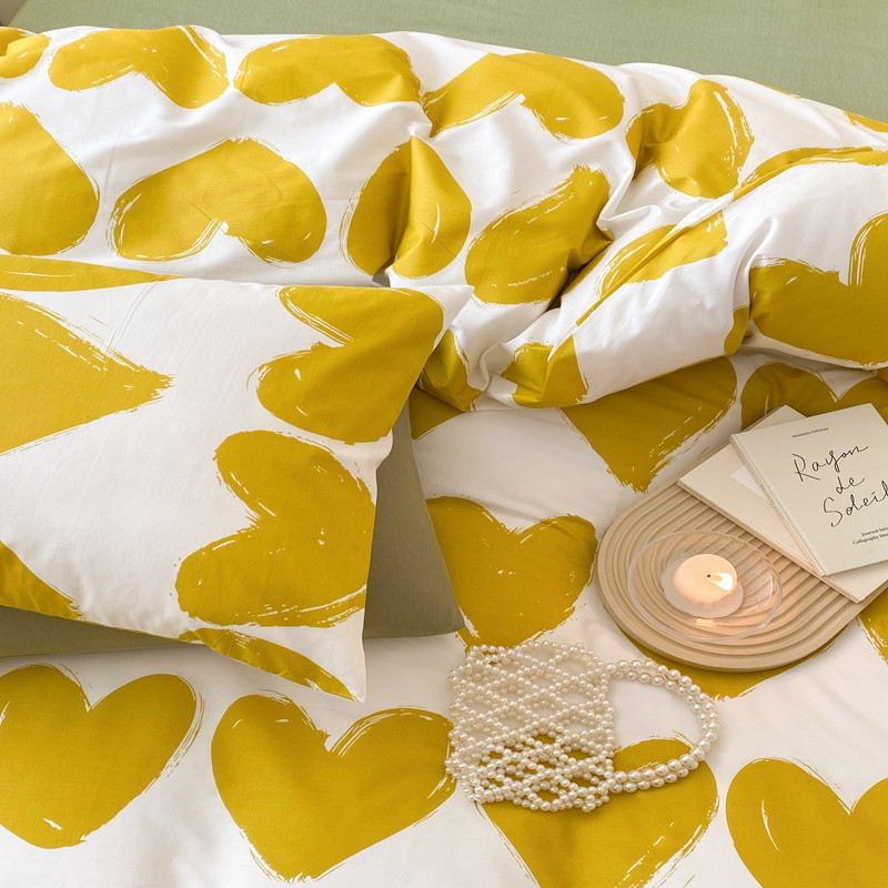 昔可 2022新款全棉四件套影棚图2 黄色爱心