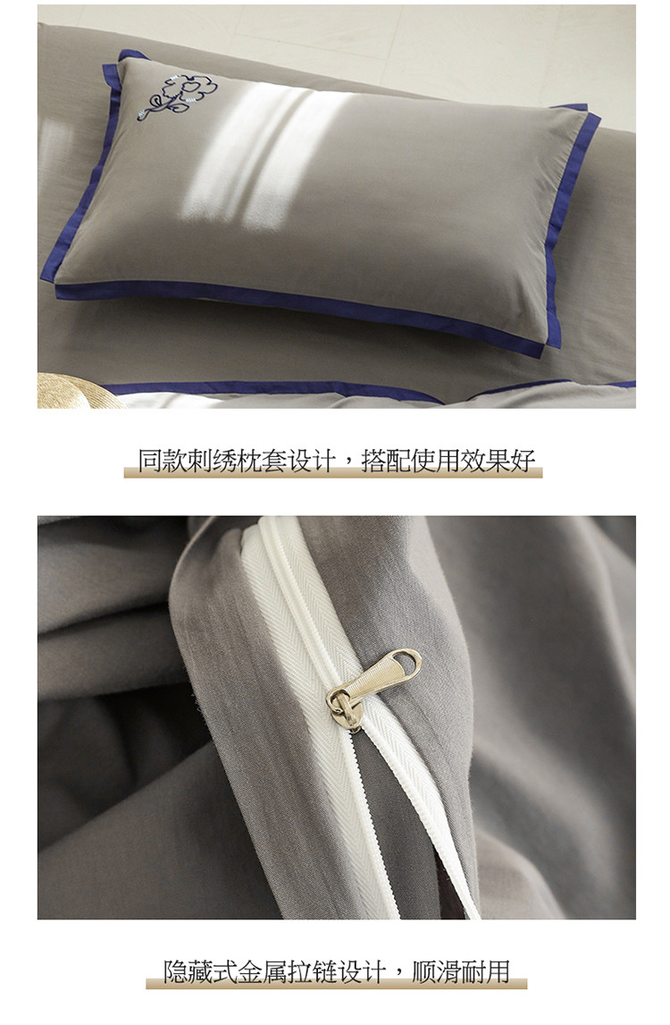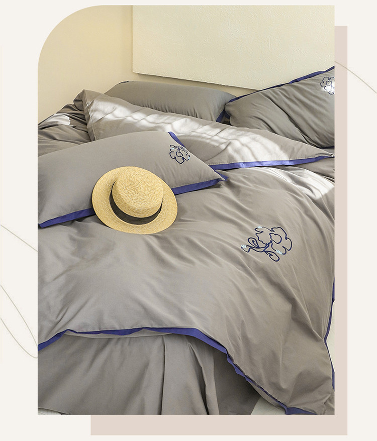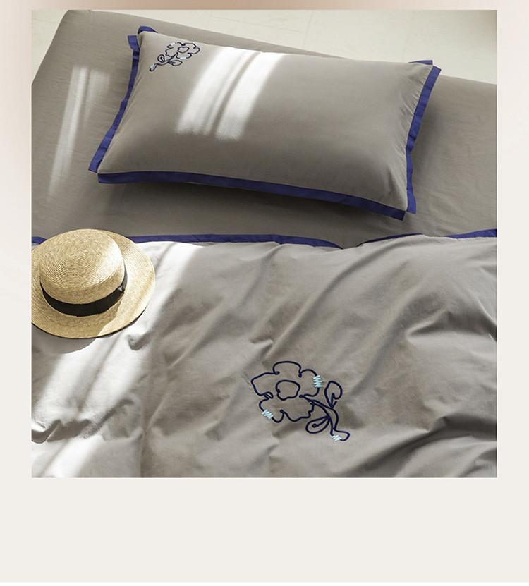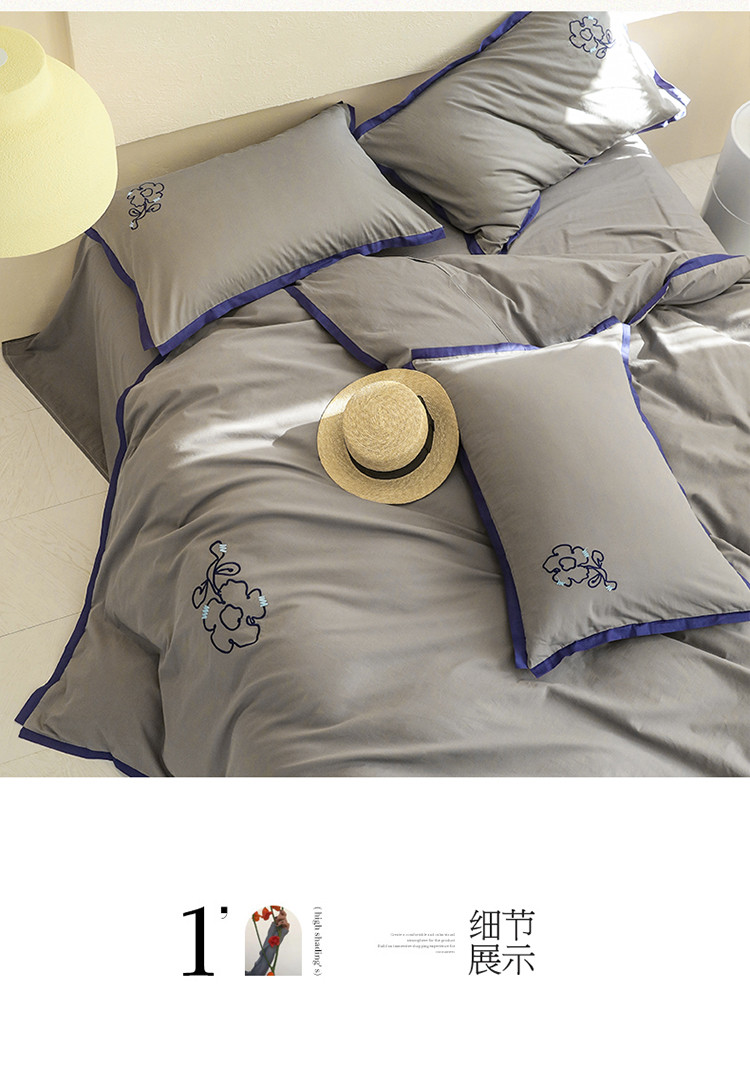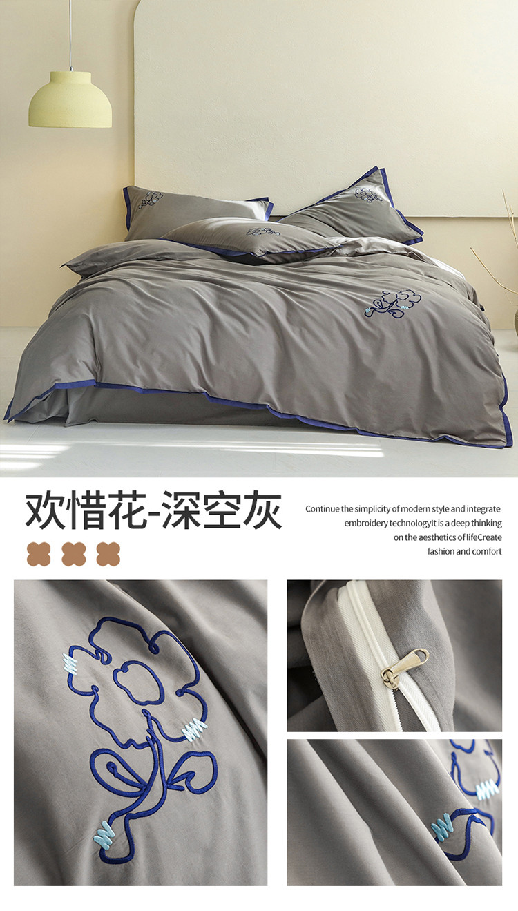 商品名称:名品优仓 2023新款水洗棉刺绣四件套-欢惜花 欢惜花-深空灰