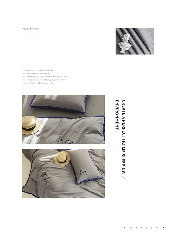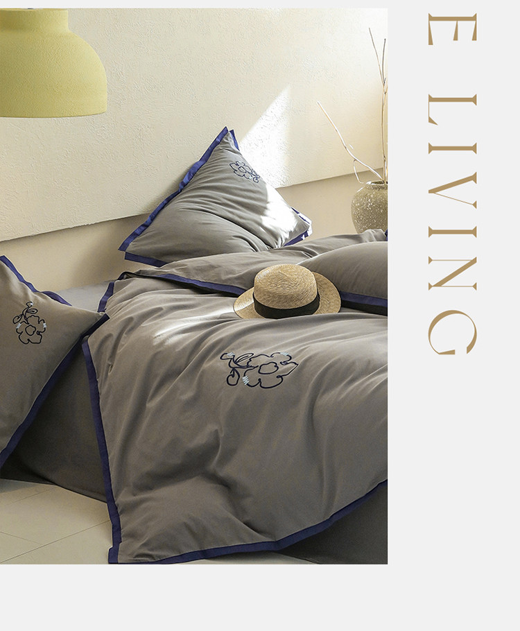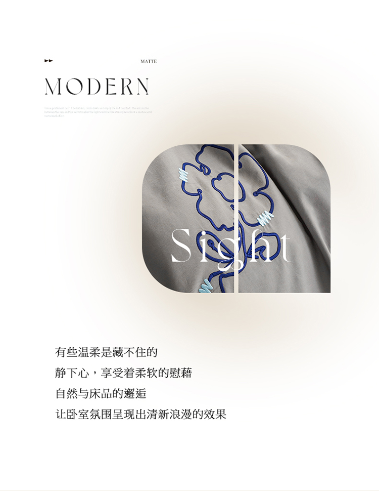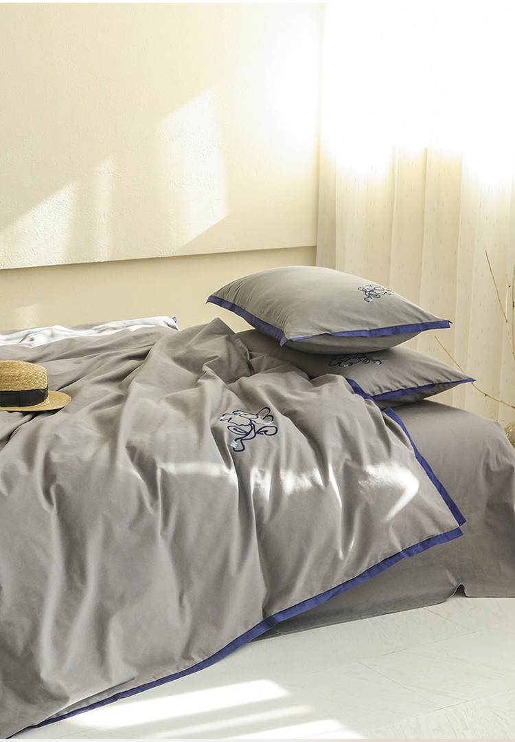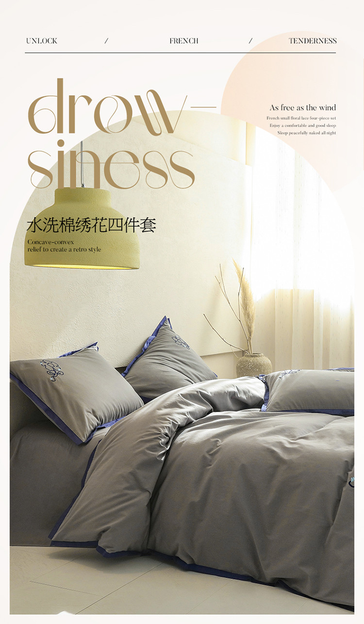 商品名称:名品优仓 2023新款水洗棉刺绣四件套-欢惜花 欢惜花-深空灰