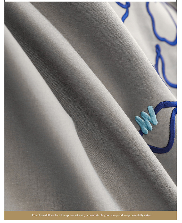 名品优仓 2023新款水洗棉刺绣四件套-欢惜花 欢惜花-深空灰