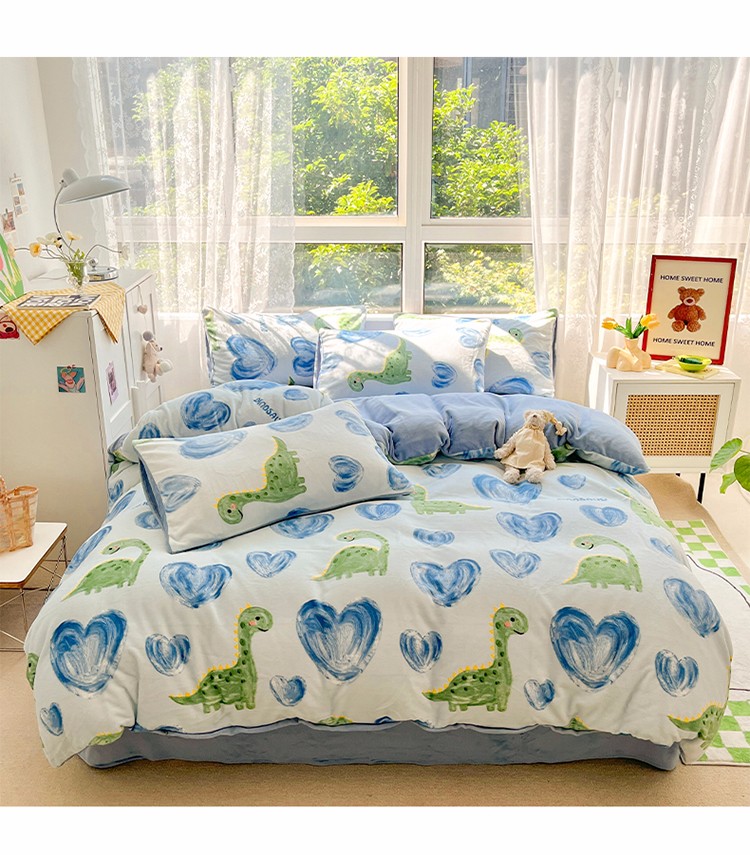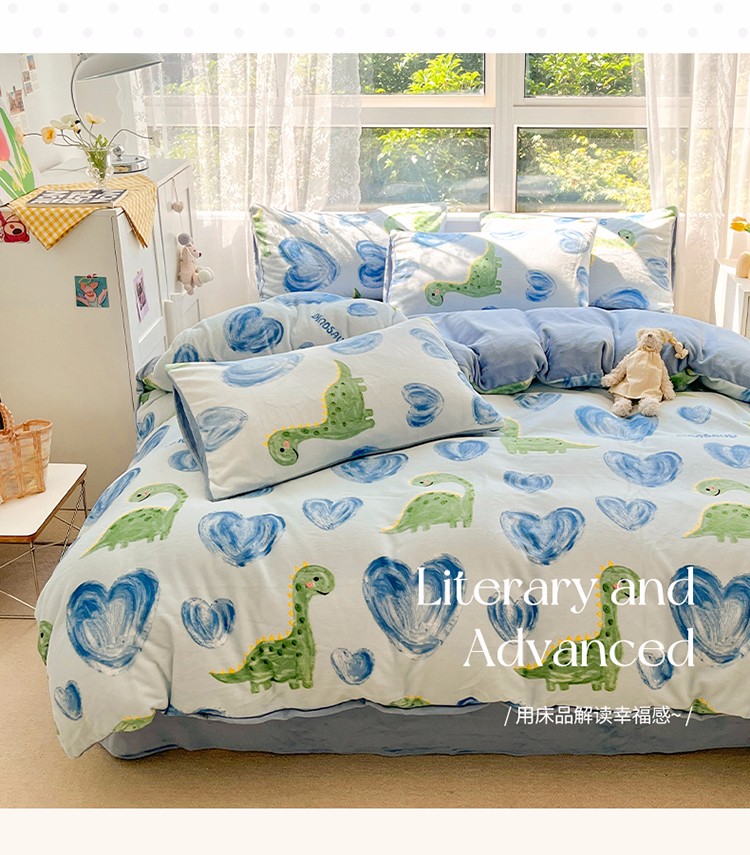雅居纺 2022新款牛奶绒印花四件套 爱心恐龙