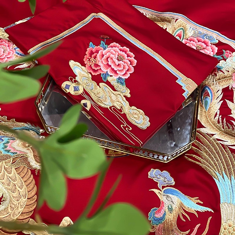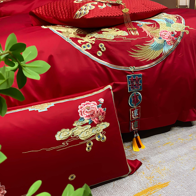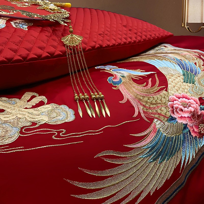 (总)缔缦 2025新款Wedding高端婚庆长绒棉系列-凤舞九天,凤舞九天-红