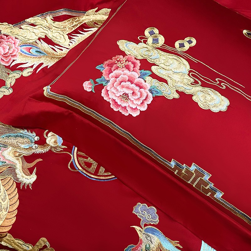 (总)缔缦 2025新款Wedding高端婚庆长绒棉系列-龙凤瑞彩,龙凤瑞彩-红