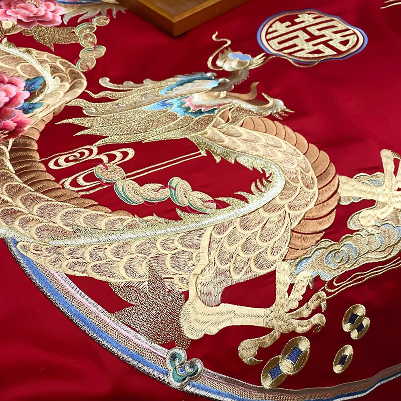 (总)2024新款刺绣长绒棉婚庆重磅新品多件套-金龙玉凤,金龙玉凤
