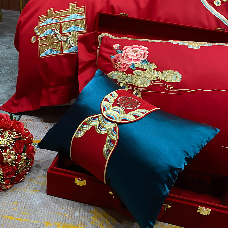 (总) 缔缦 2022新款秋冬婚庆长绒棉刺绣多件套-双喜临门