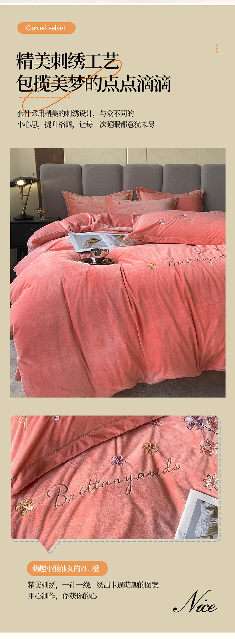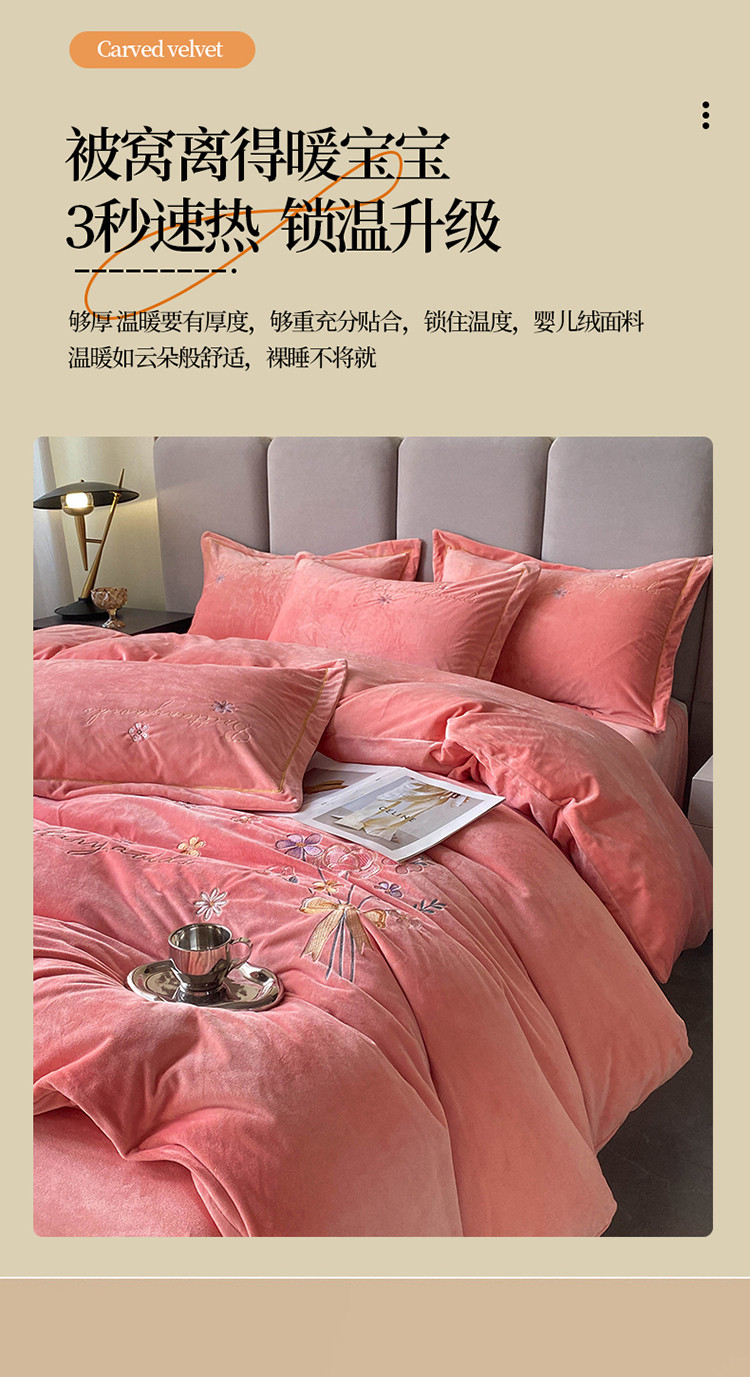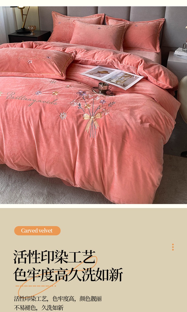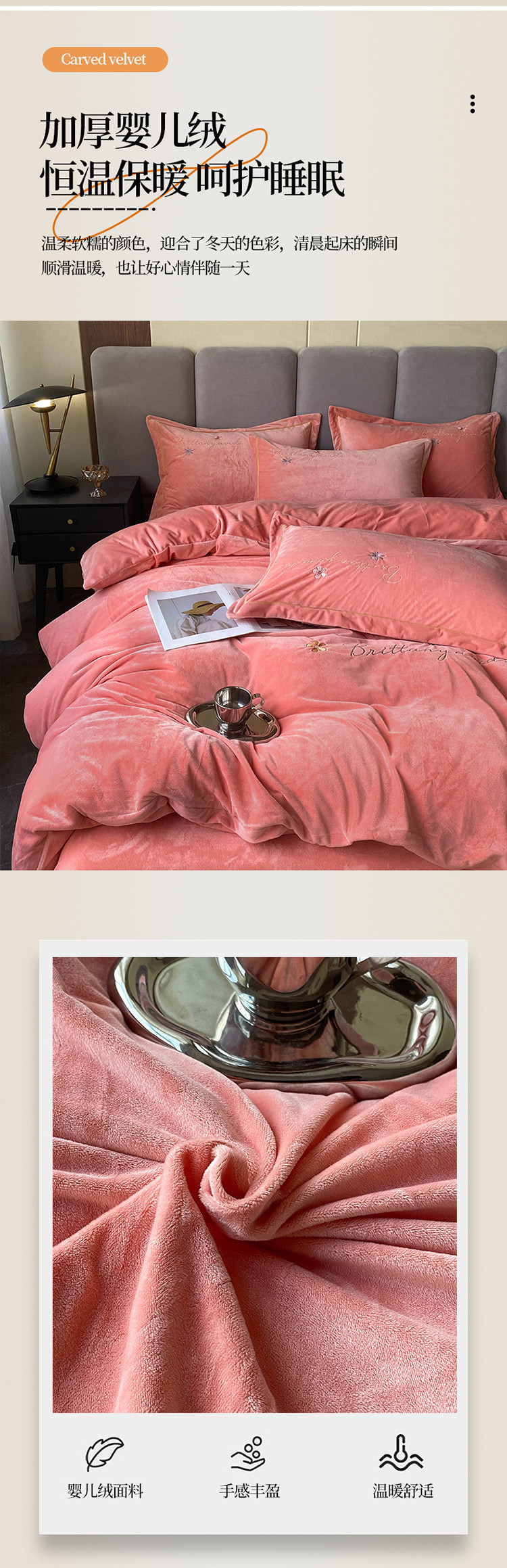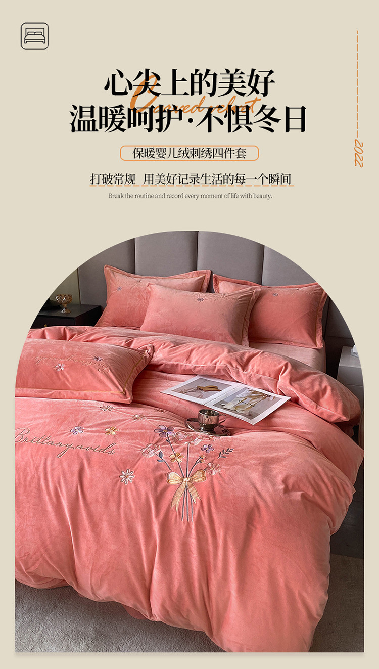 云锦 2022秋冬新品加厚婴儿绒刺绣四件套 手捧花-玉藕色