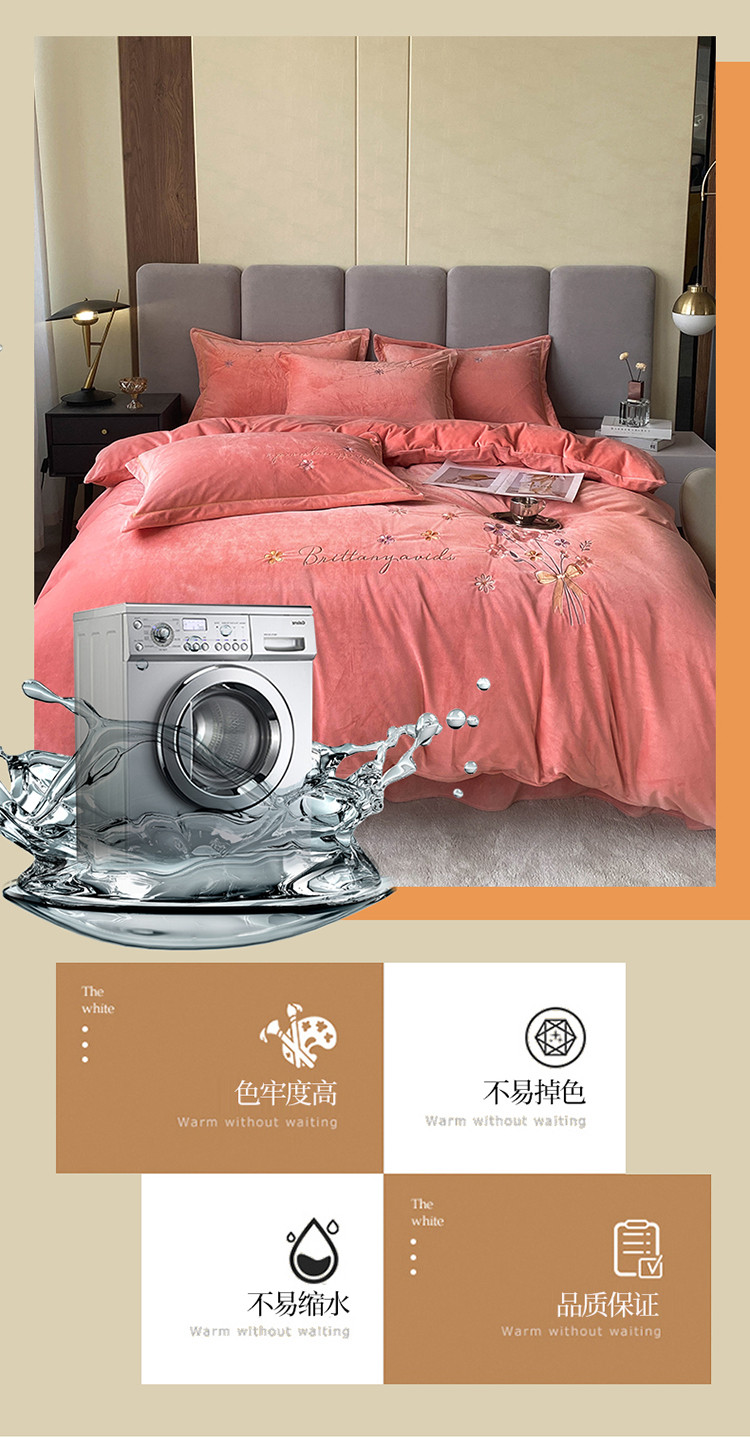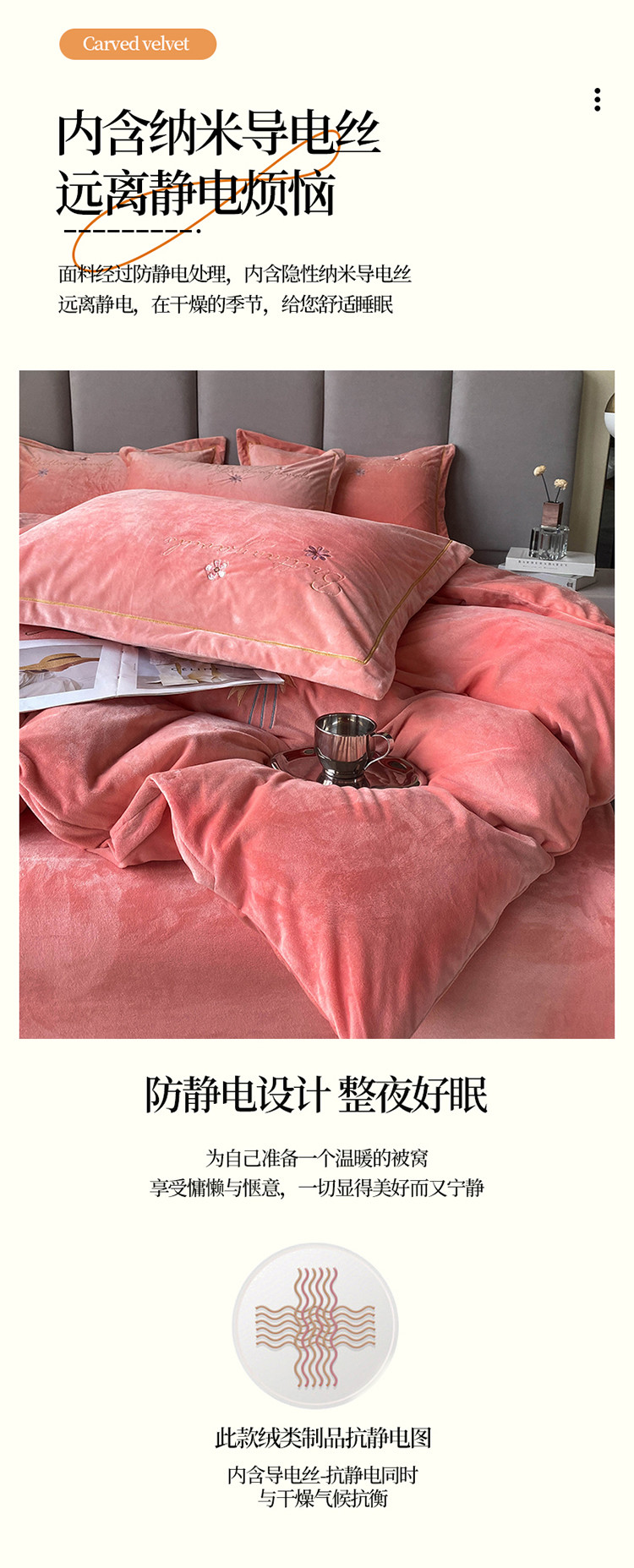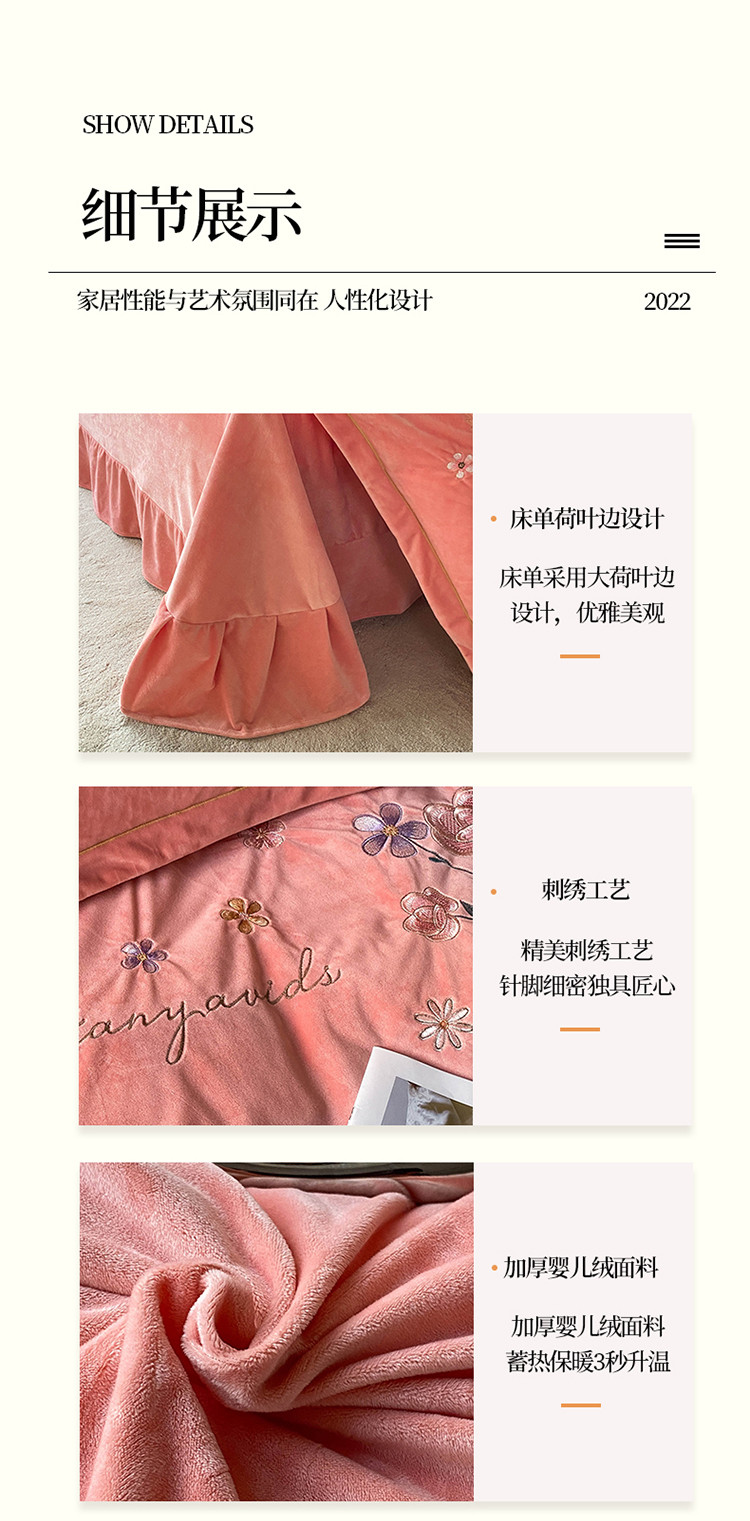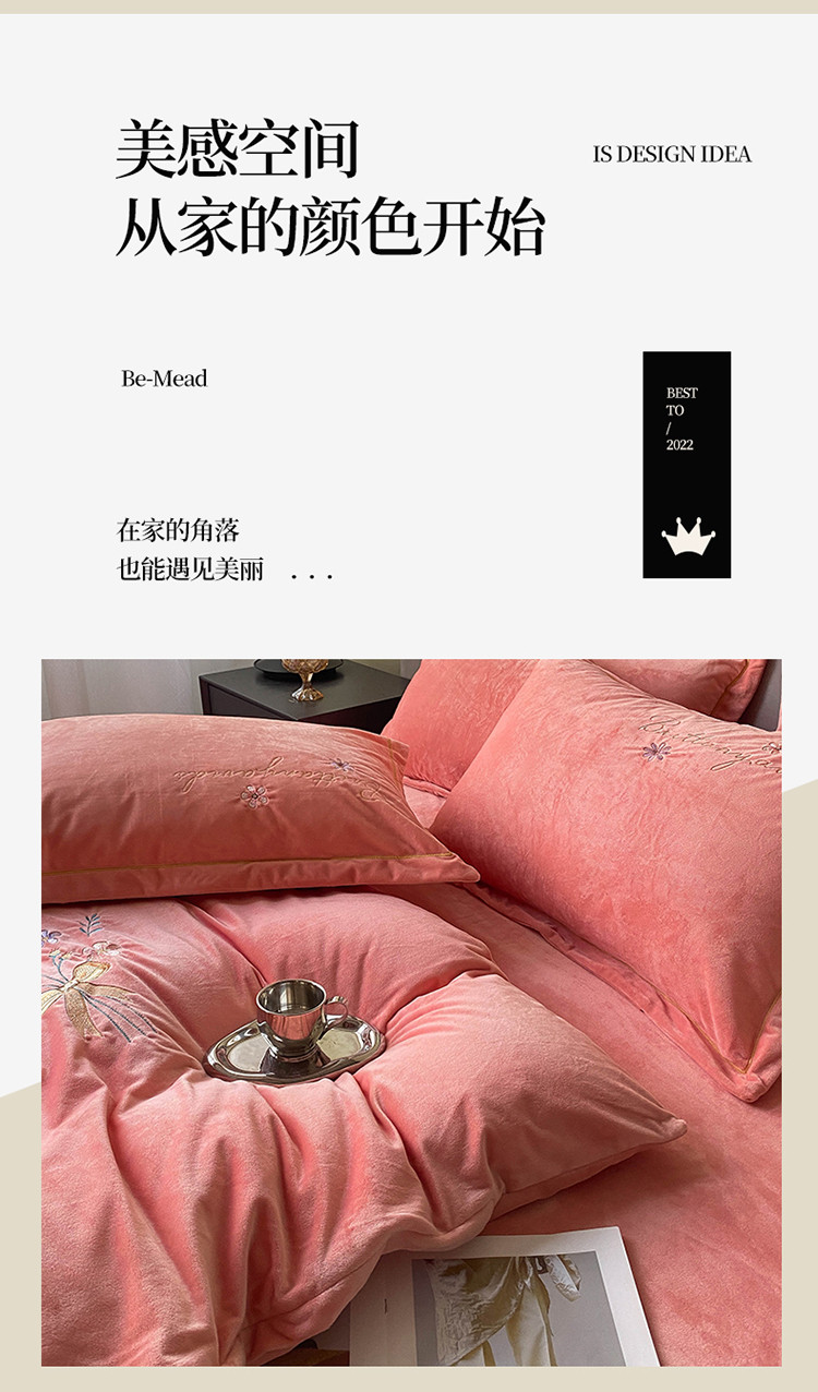 云锦 2022秋冬新品加厚婴儿绒刺绣四件套 手捧花-玉藕色