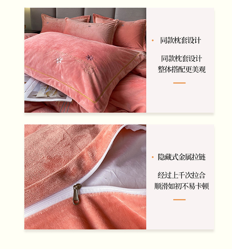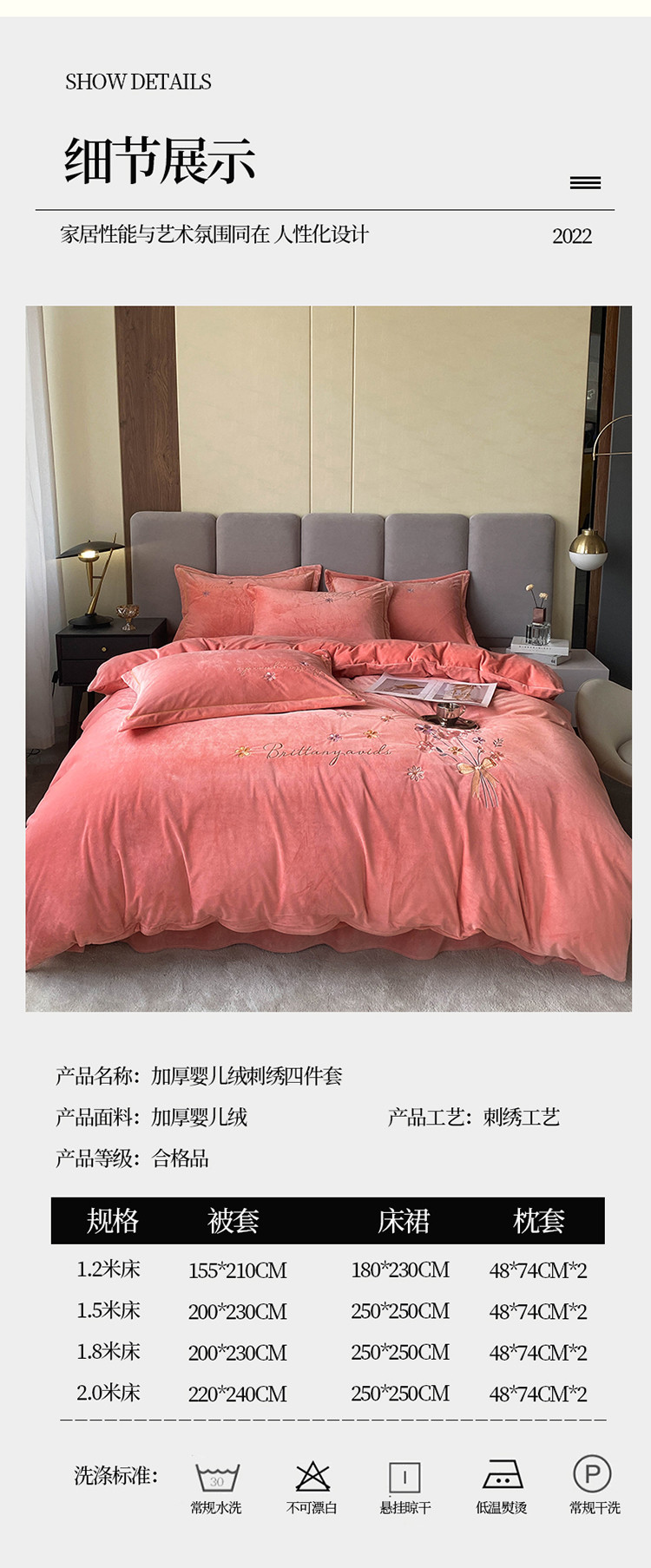 商品名称:云锦 2022秋冬新品加厚婴儿绒刺绣四件套 手捧花-玉藕色