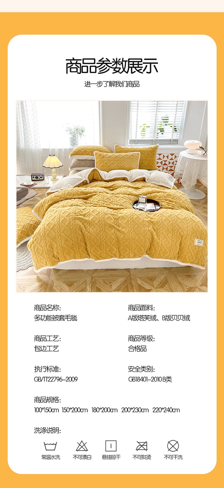 当前位置: 91家纺网 > 商品网购 > 毛毯休闲毯绒毯 > 毛毯 > 新月家纺 2022新款塔芙绒多功能被套毯 姜黄