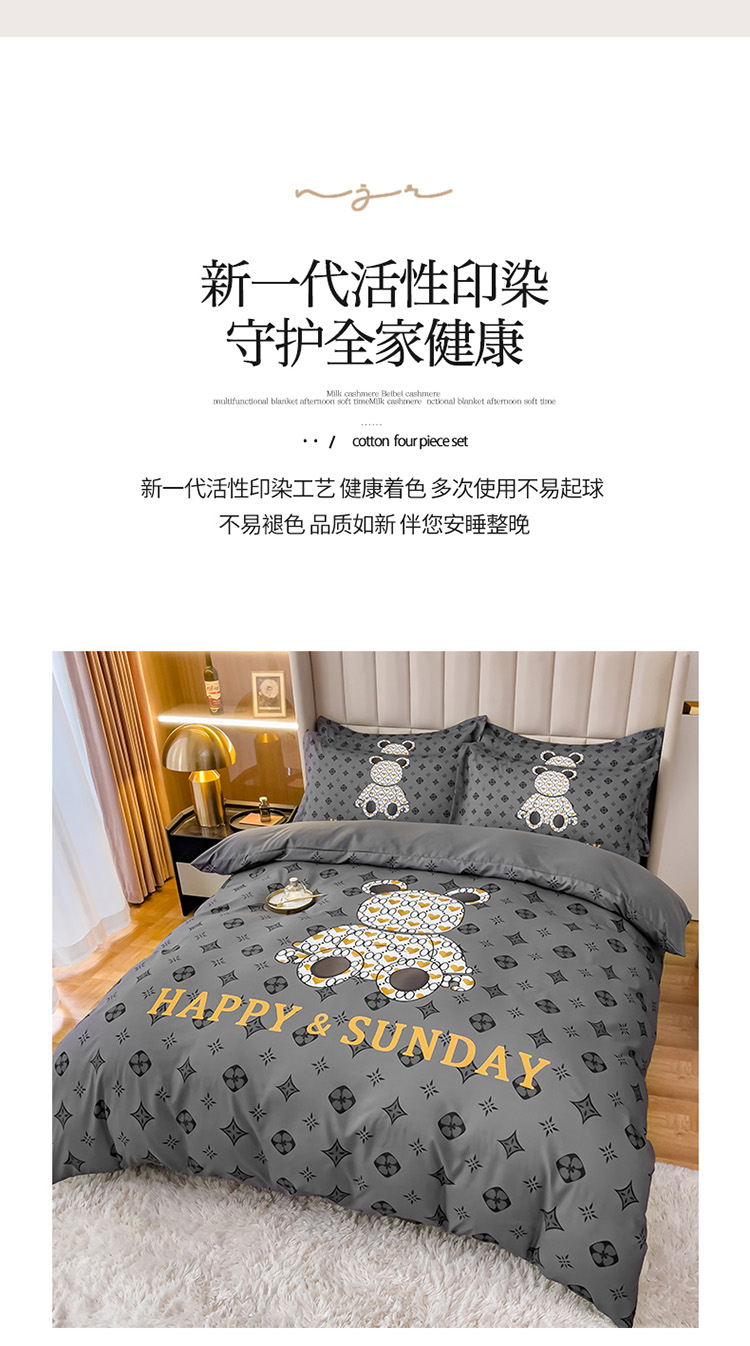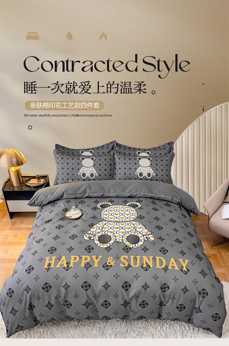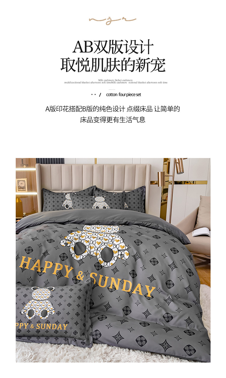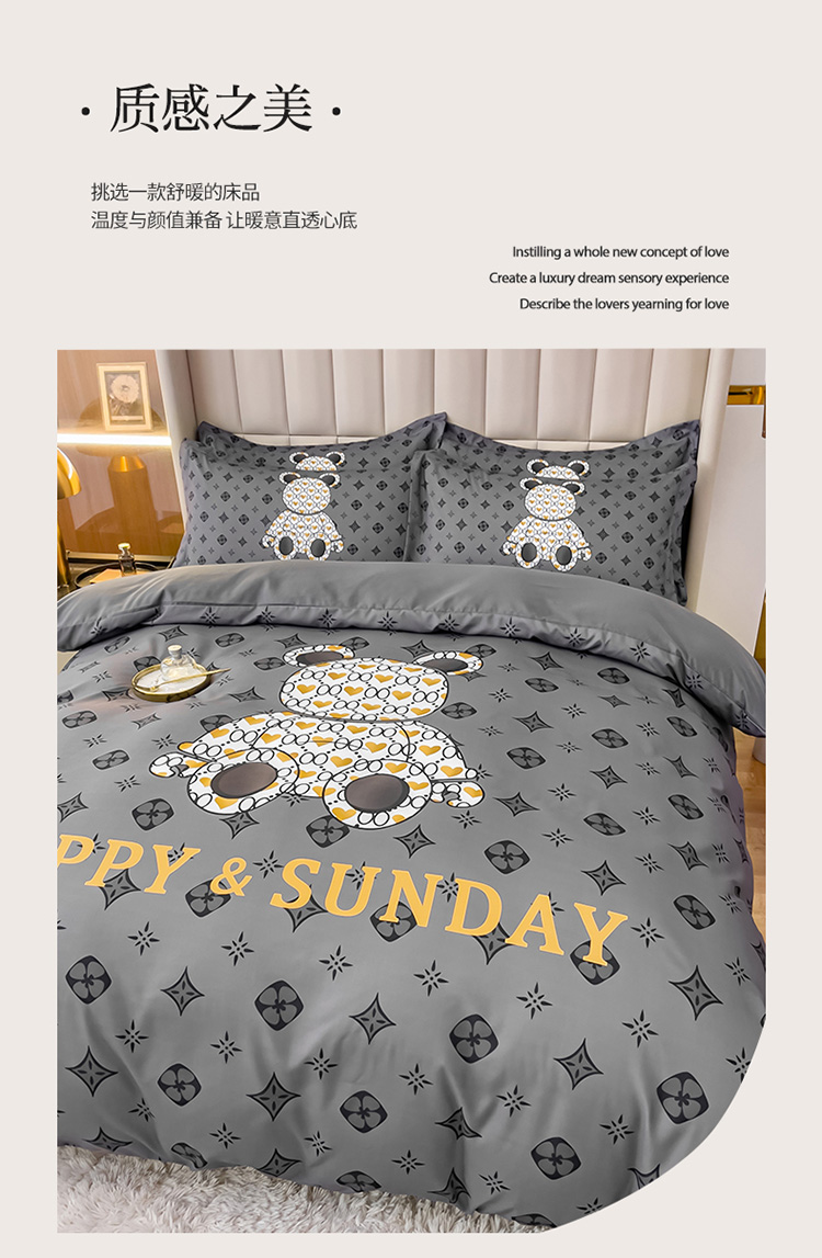 娜娜 2022新款大版大牌风亲肤棉工艺款四件套 熊仔灰