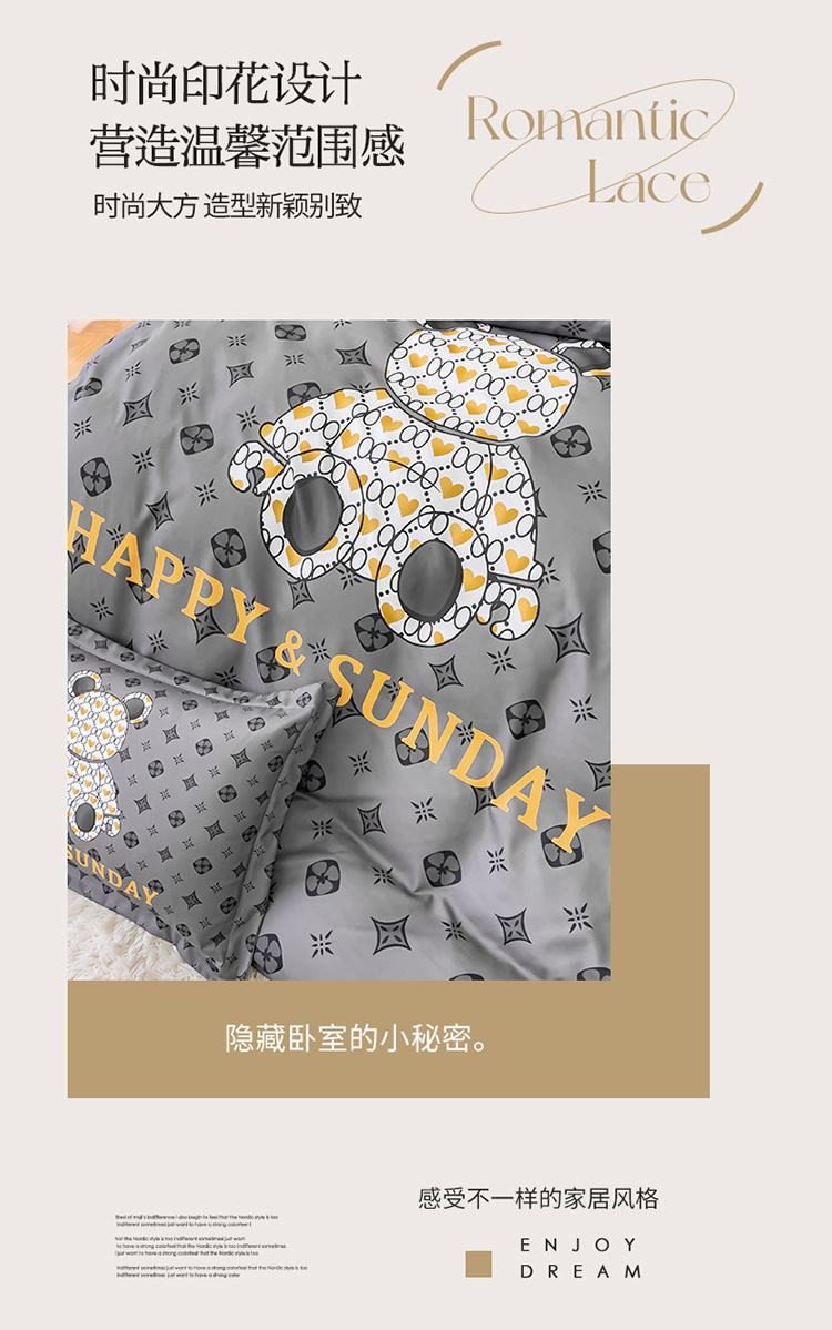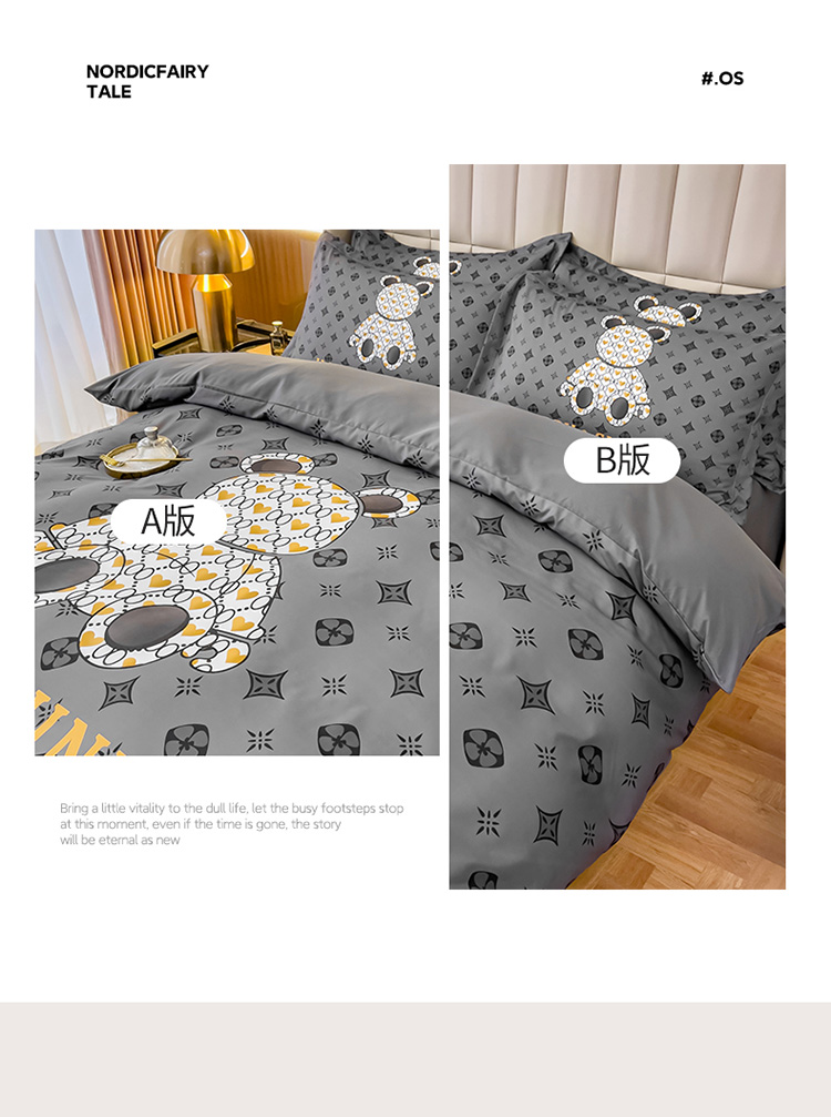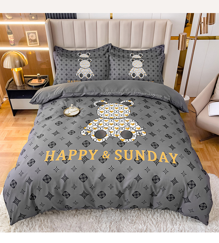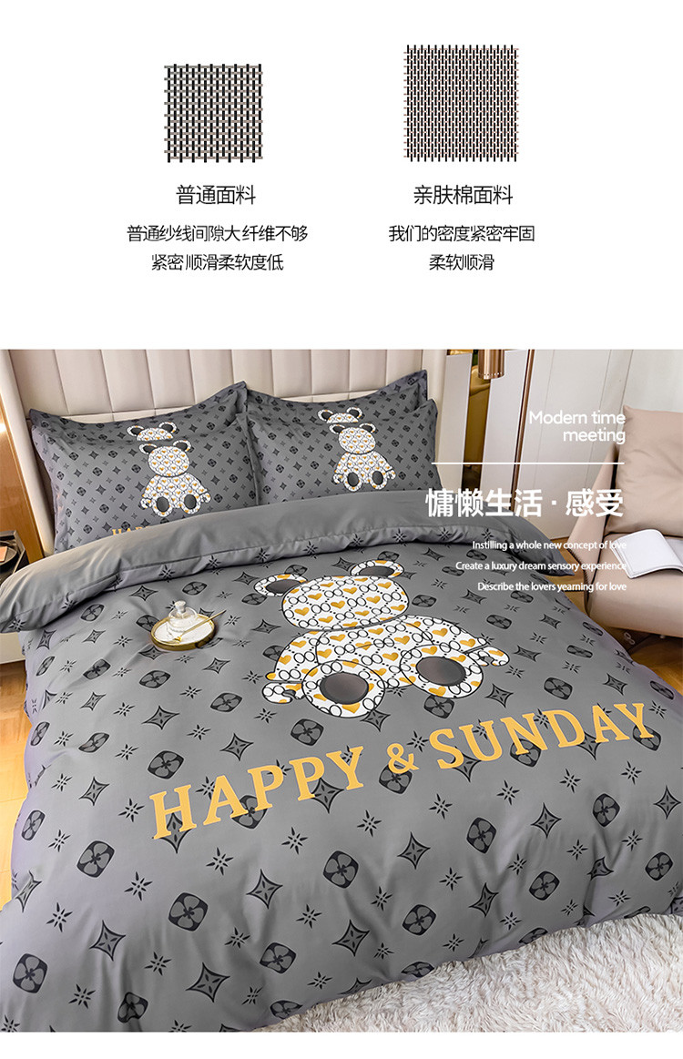 娜娜 2022新款大版大牌风亲肤棉工艺款四件套 熊仔灰