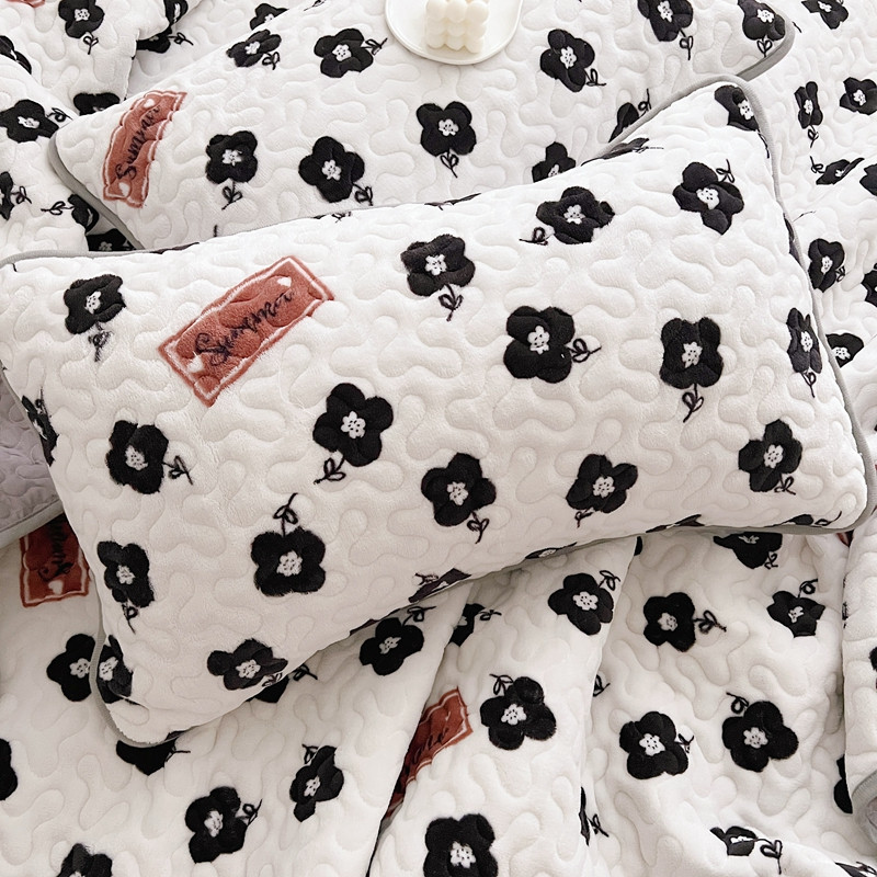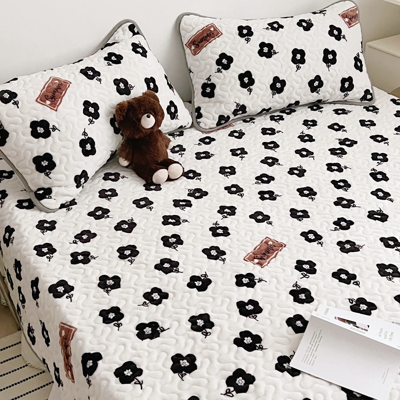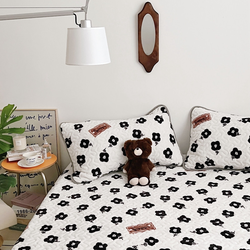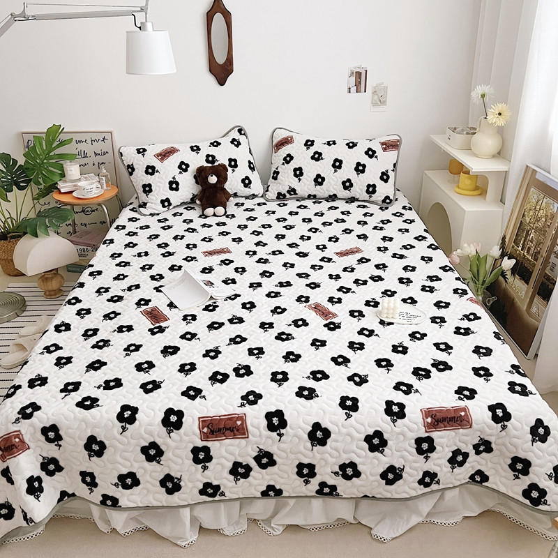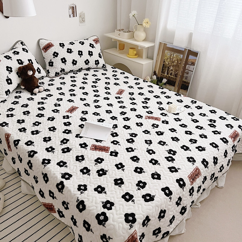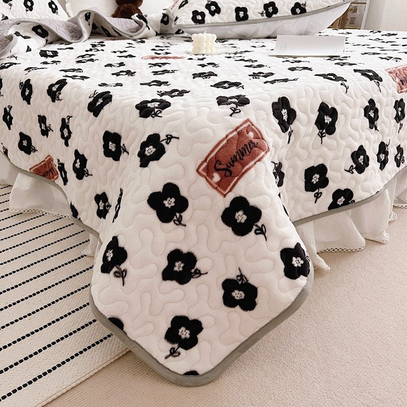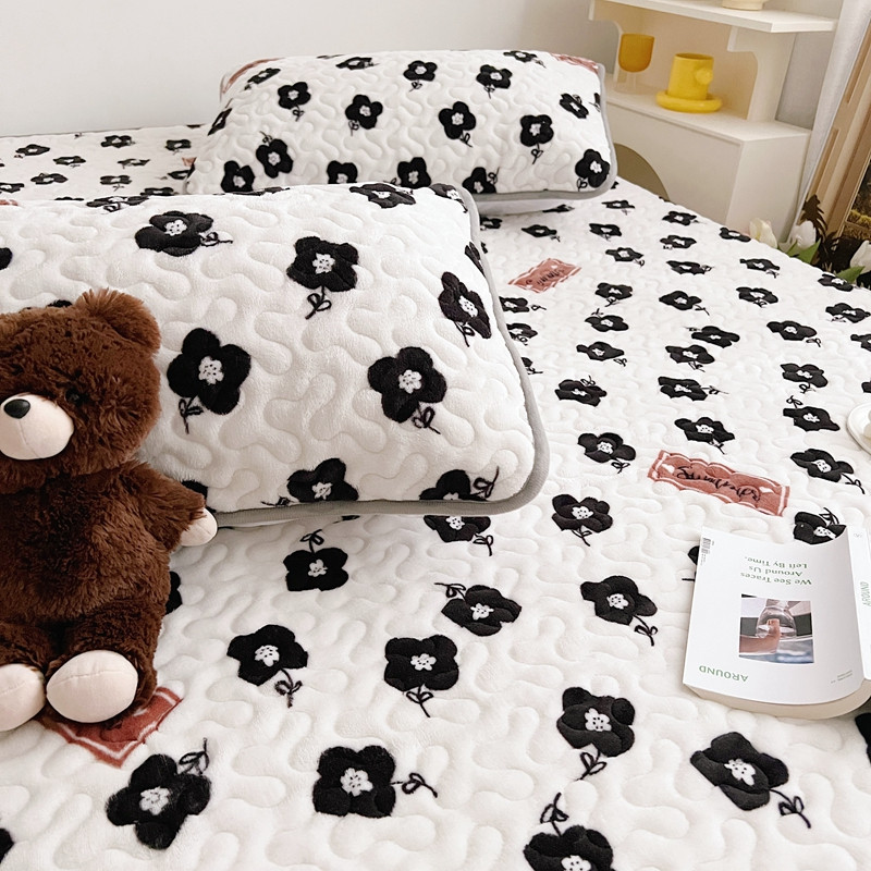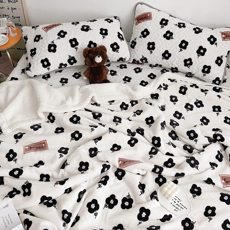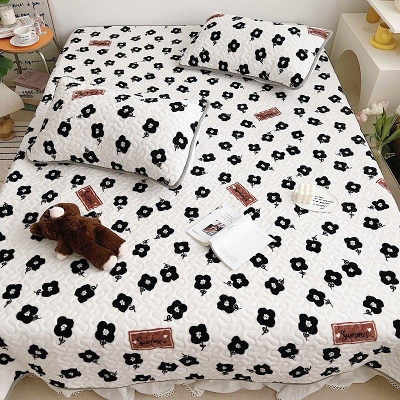 美乐迪 2022新款多功能牛奶绒亲肤棉床盖套件 黑色小花