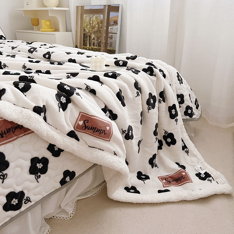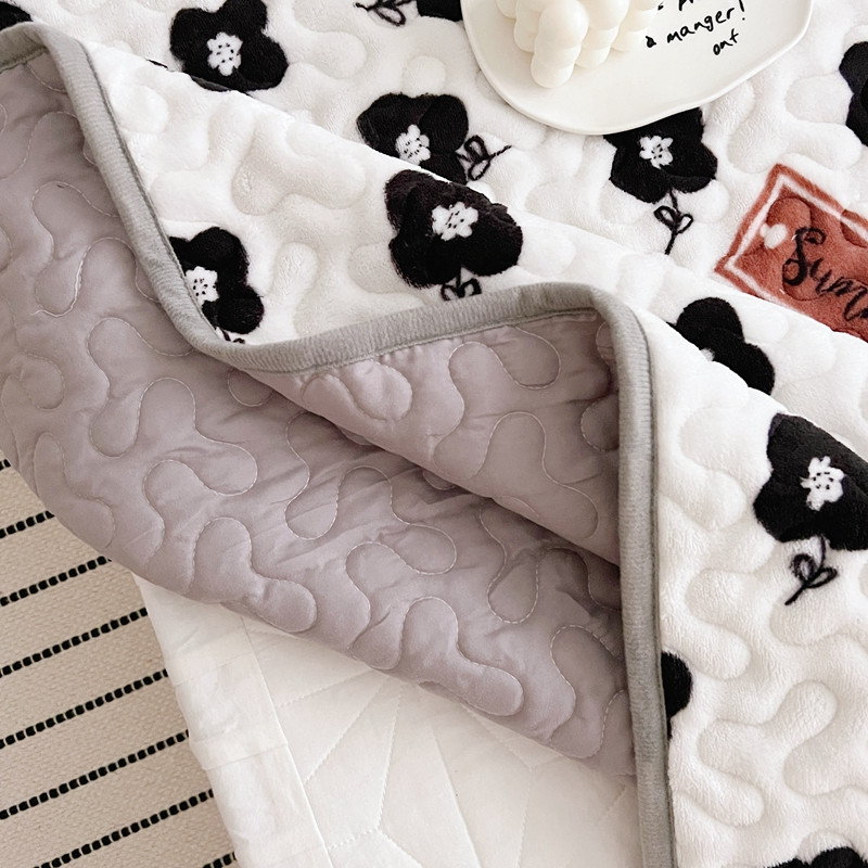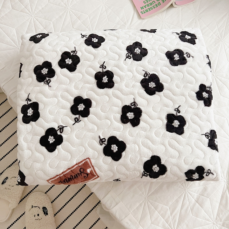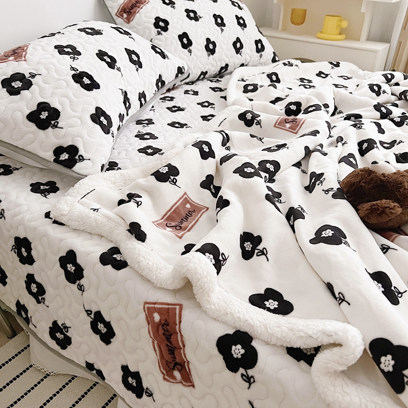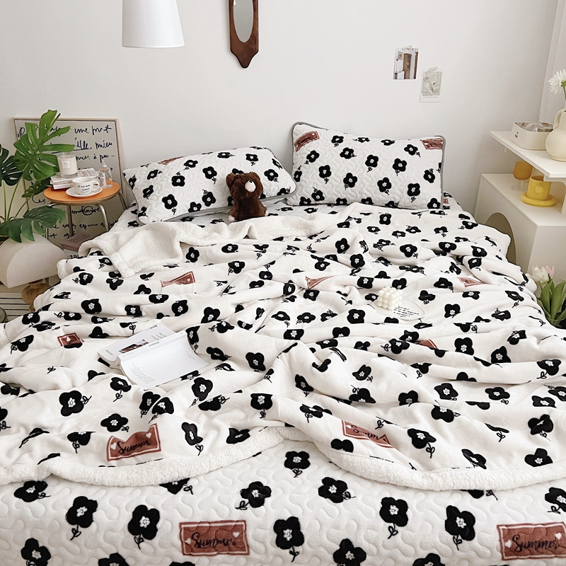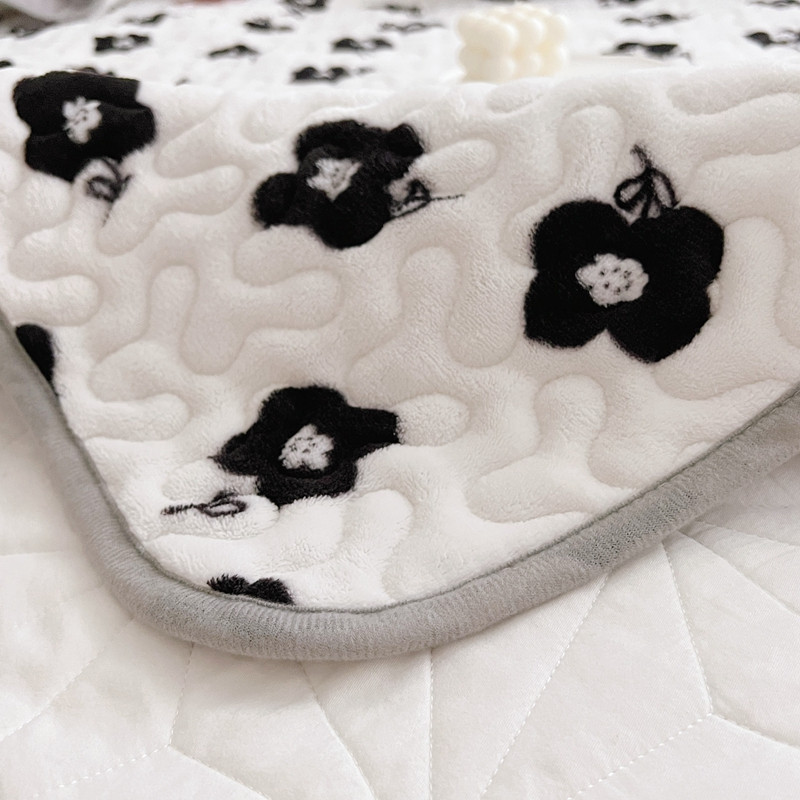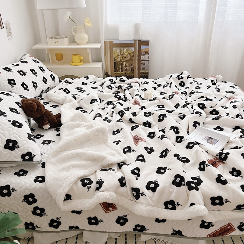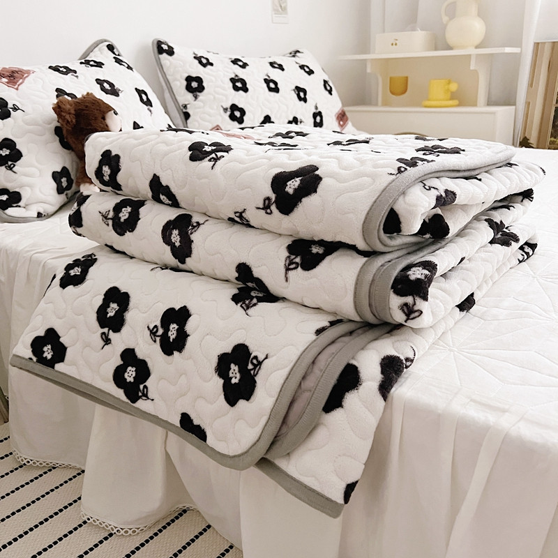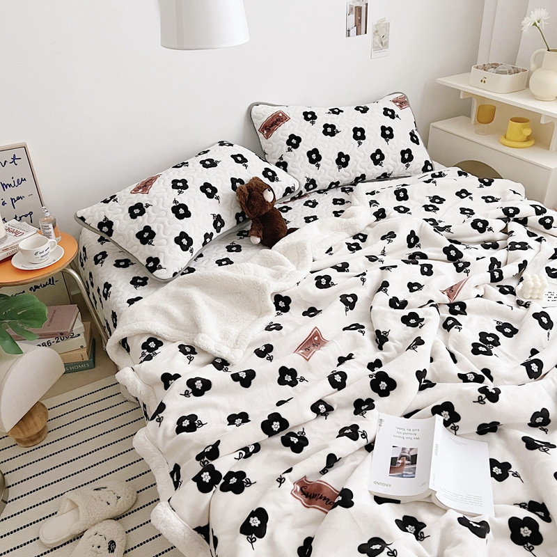 美乐迪 2022新款多功能牛奶绒亲肤棉床盖套件 黑色小花
