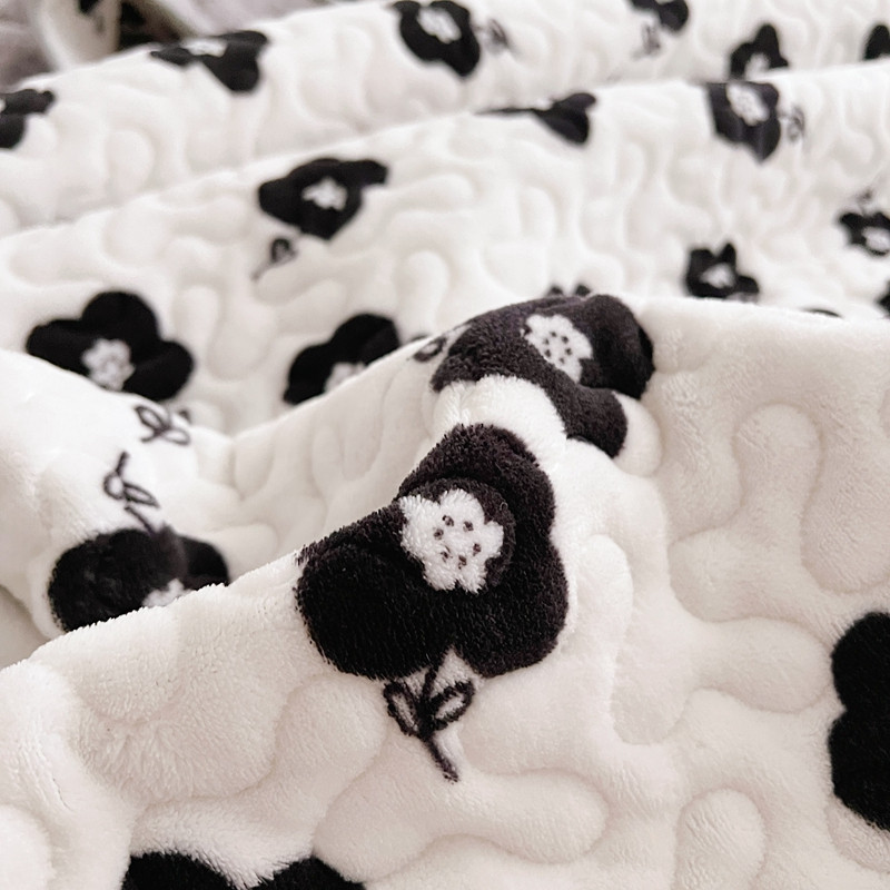 商品名称:美乐迪 2022新款多功能牛奶绒亲肤棉床盖套件 黑色小花