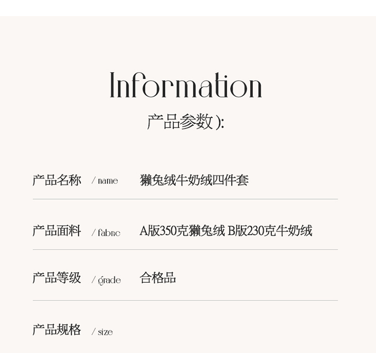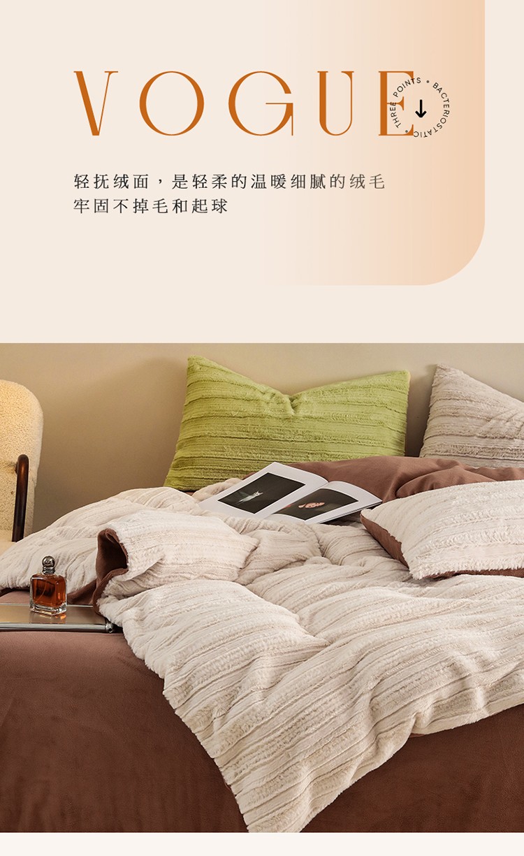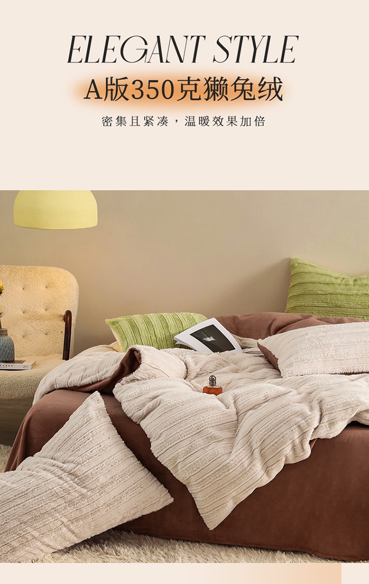 商品名称:总名品优仓A版350克兔毛绒 B版230克牛奶绒四件套洛可可