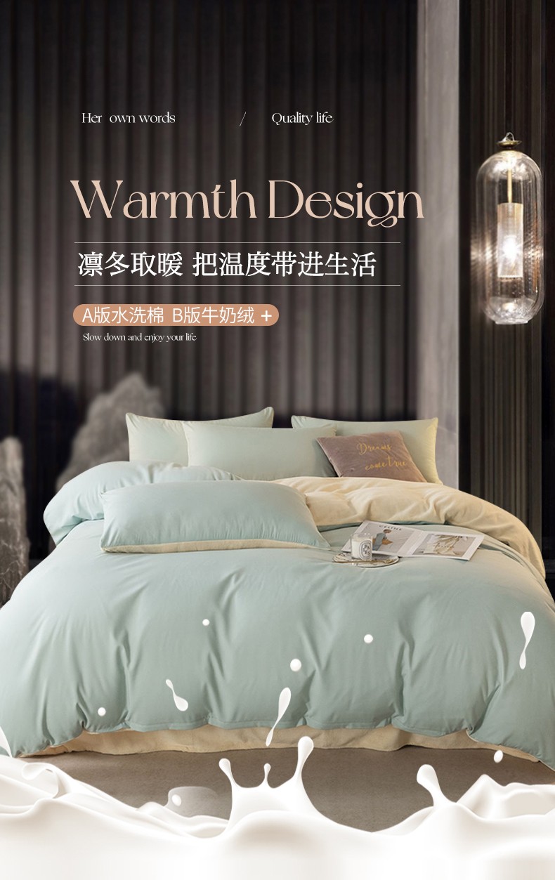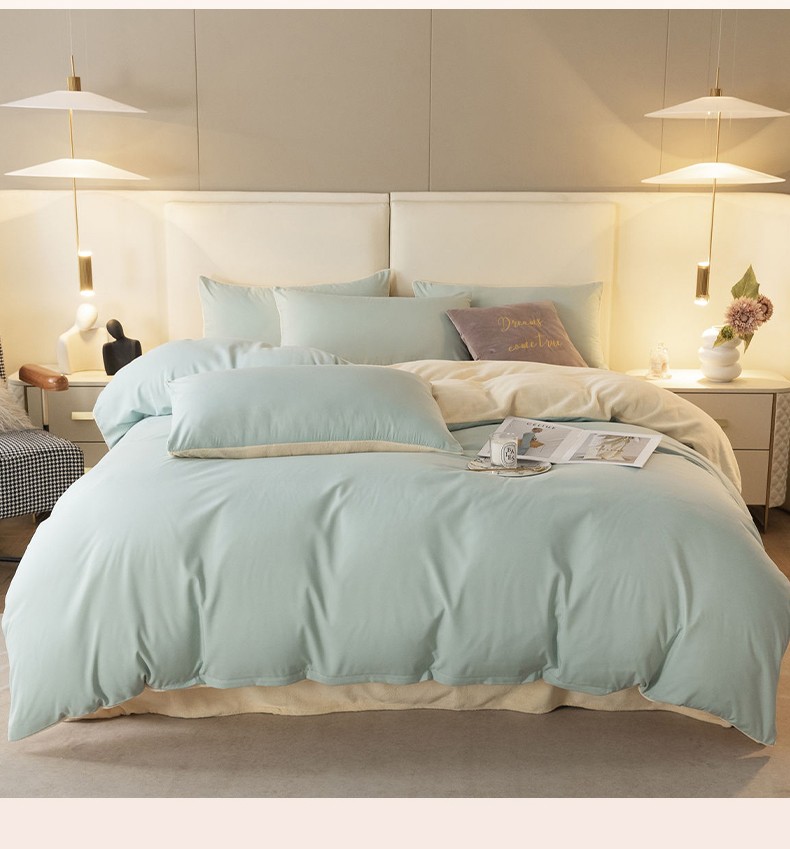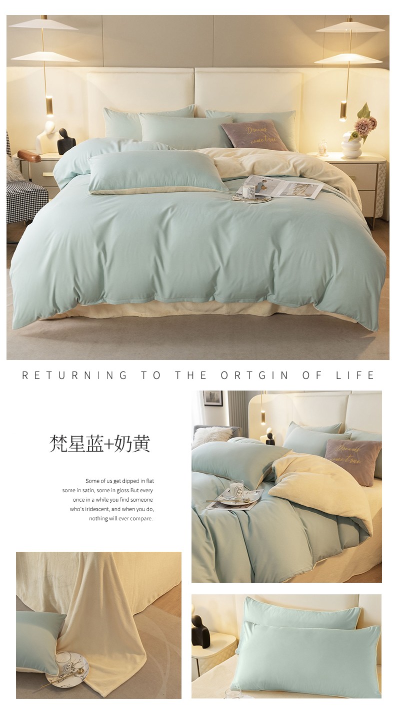 当前位置: 91家纺网 > 商品网购 > 床品套件 > 四件套 > 牛奶绒四件套 > 古吉梦高克重牛奶绒双色床单床笠款四件套纯色棉绒-梵星蓝+奶黄