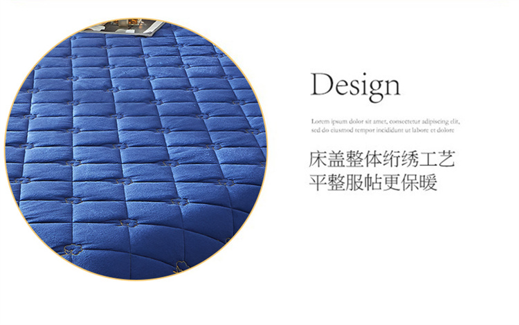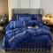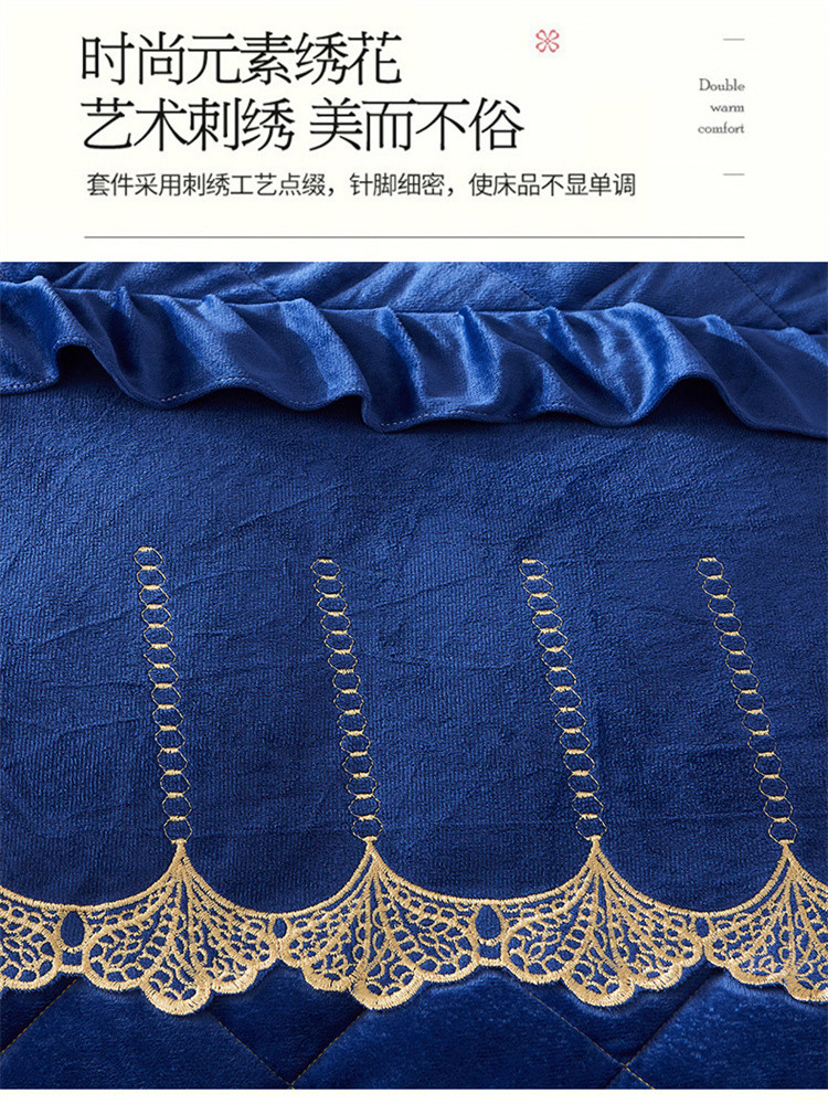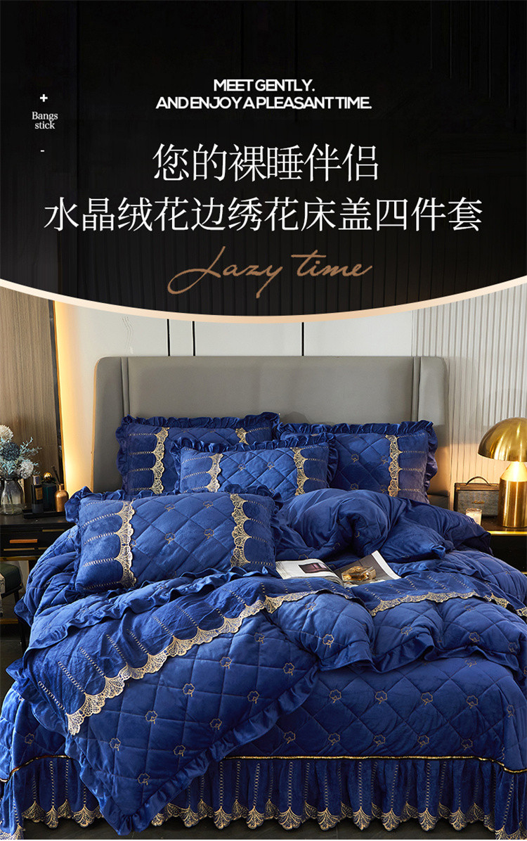 十个点家纺 2024新款刺绣水晶绒床盖四件套 宝蓝