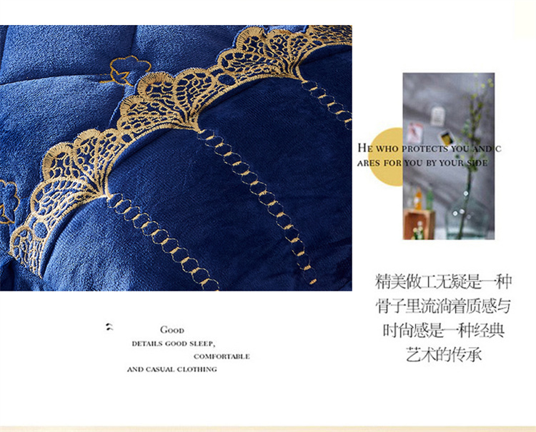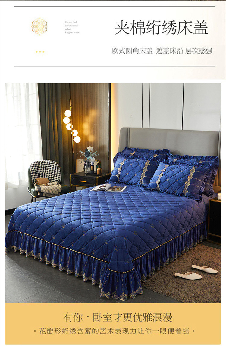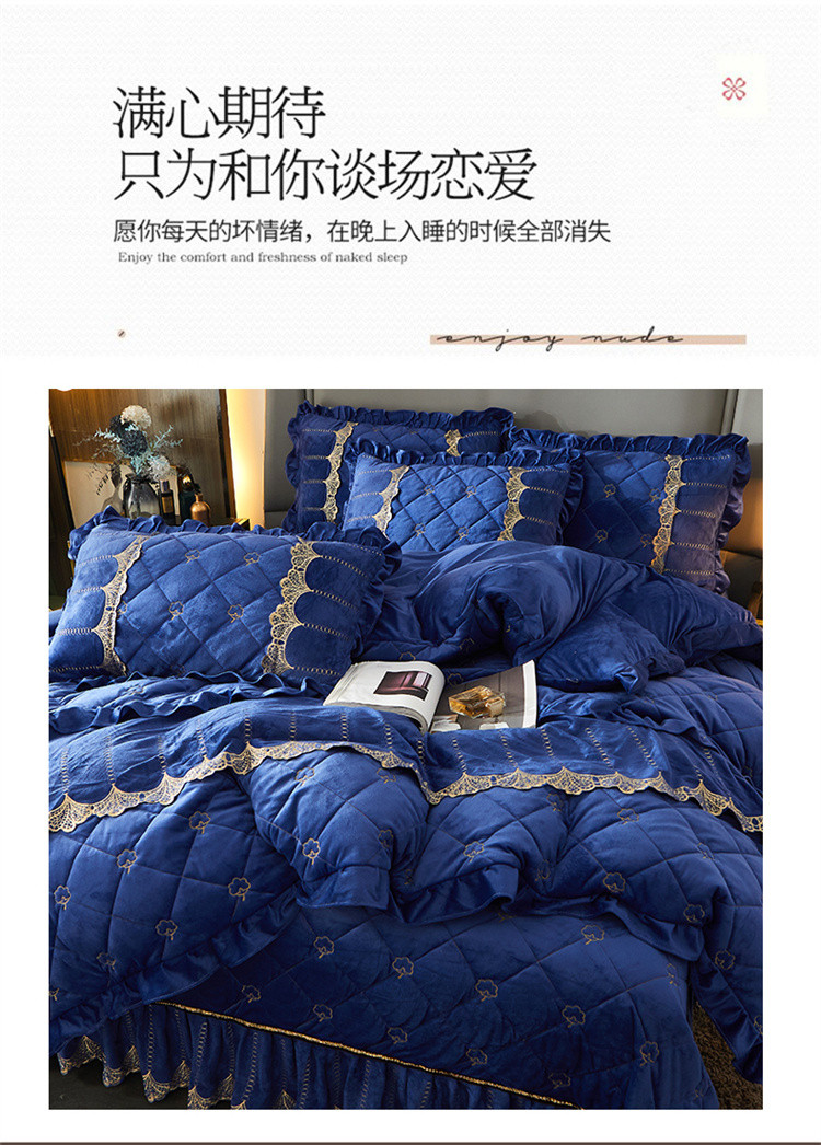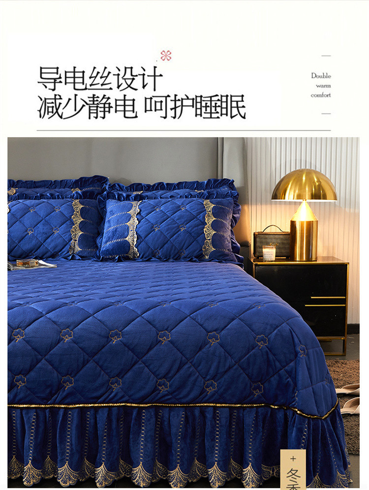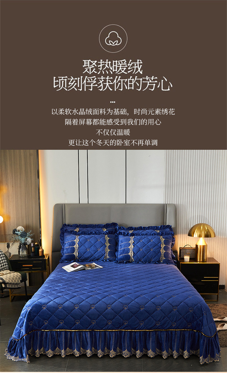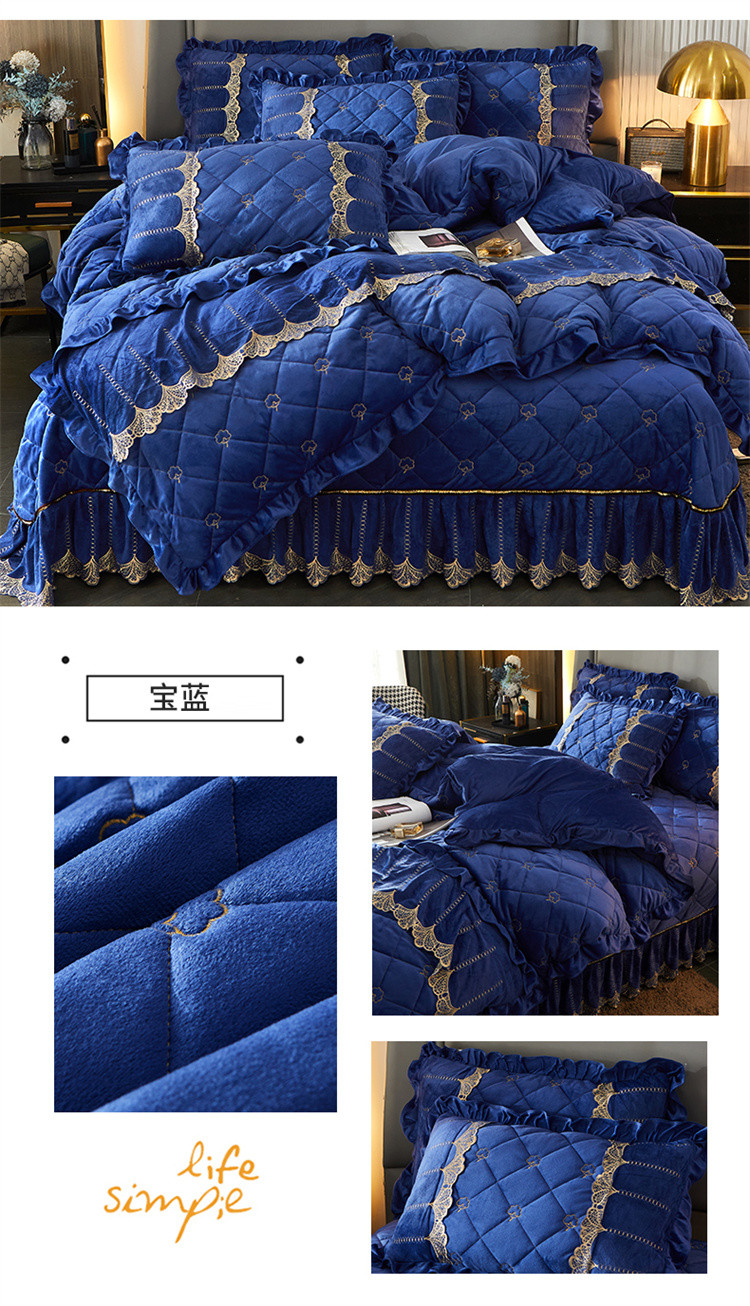 商品名称:十个点家纺 2024新款刺绣水晶绒床盖四件套 宝蓝