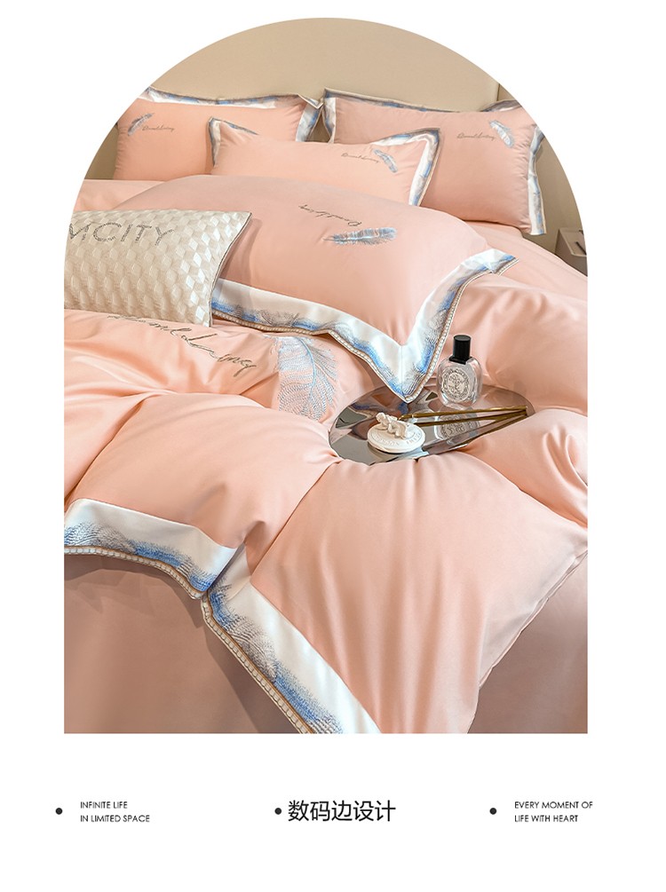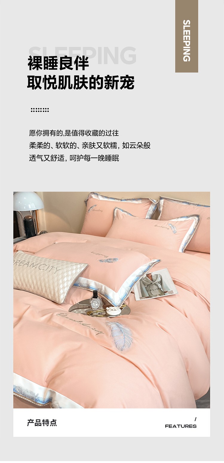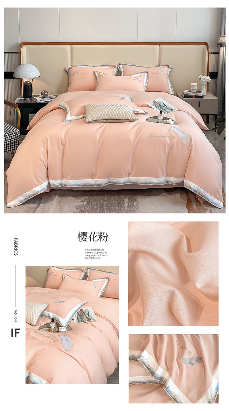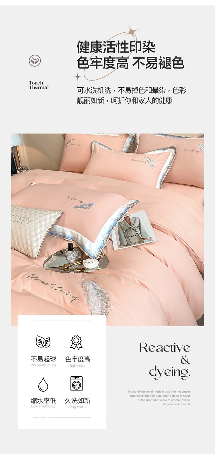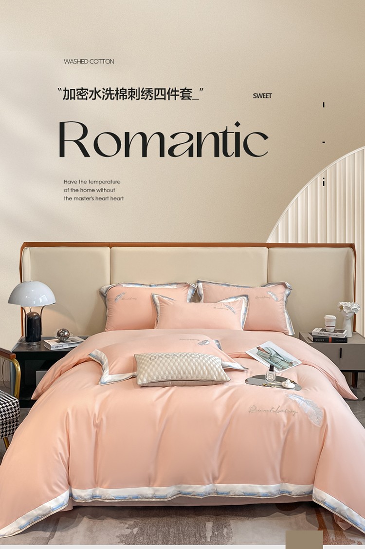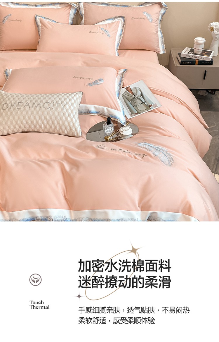商品名称:花愿2023新款加密水洗棉刺绣四件套 樱花粉