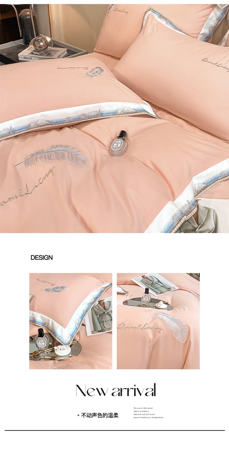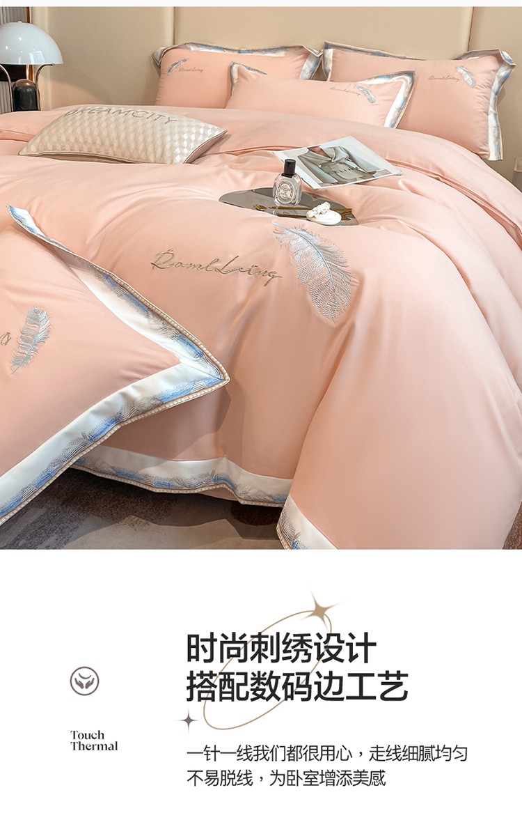 (总)花愿(原花纪) 2025新款加密水洗棉刺绣四件套-蓝羽,奶昔白,蔷薇紫,天空蓝,樱花粉