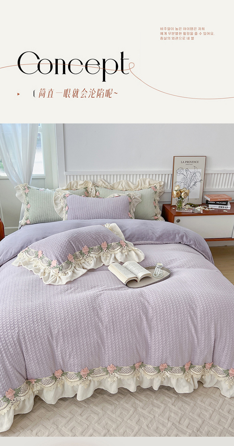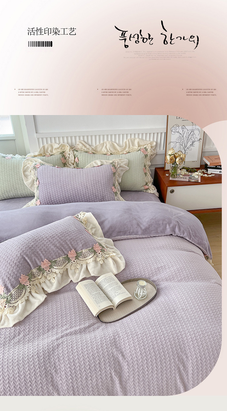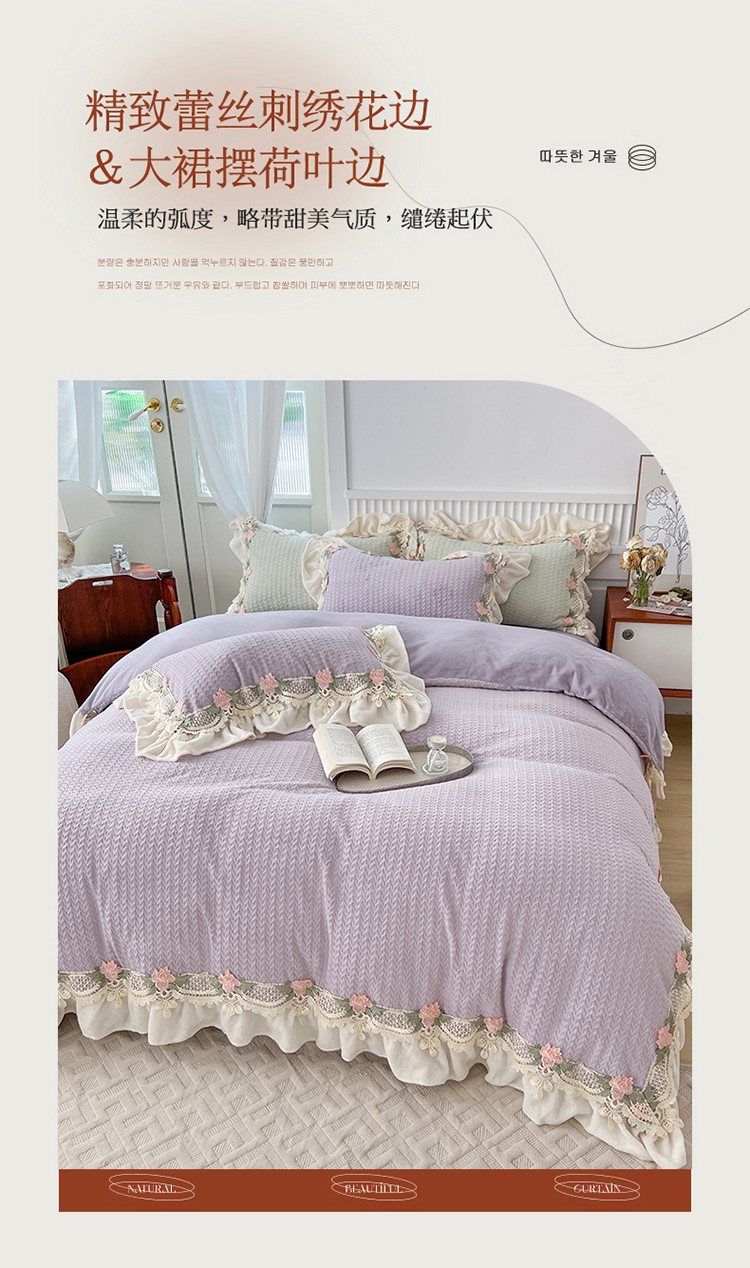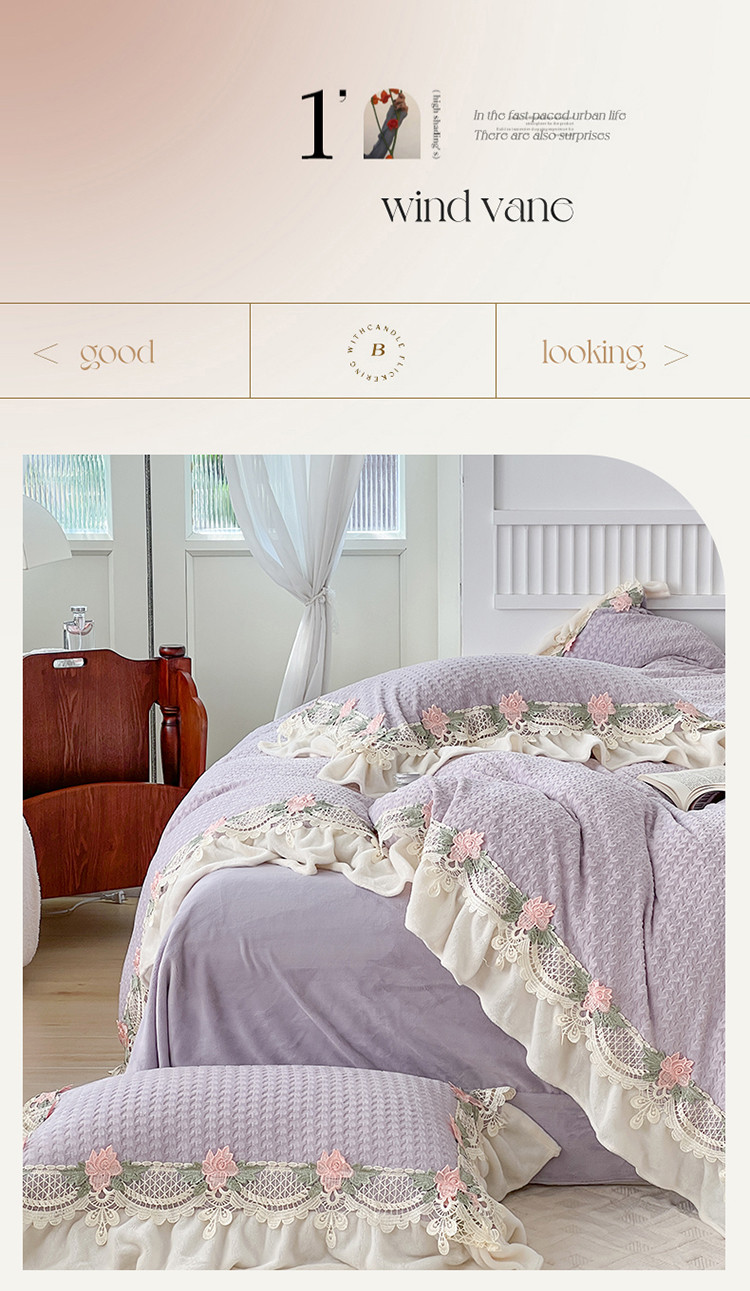 玛奇朵 高定蕾丝边全消光云芙暖绒四件套-唯 一(场景1) 唯一(紫)