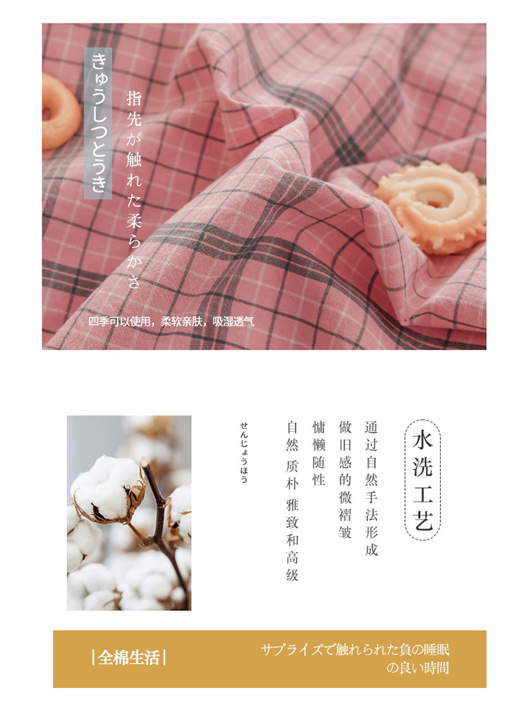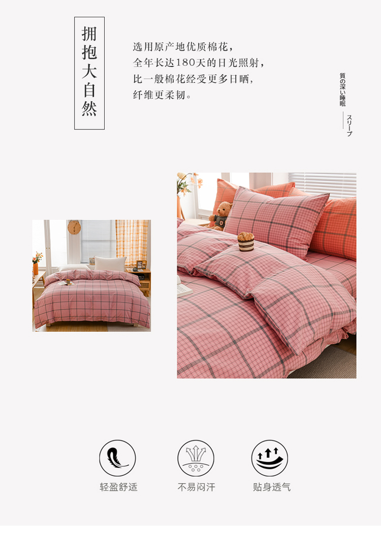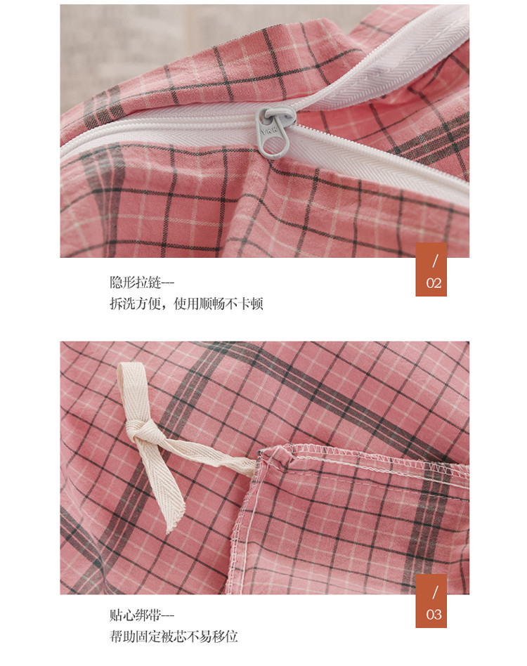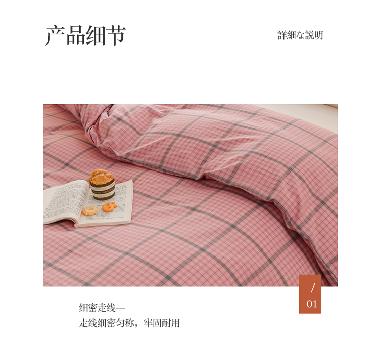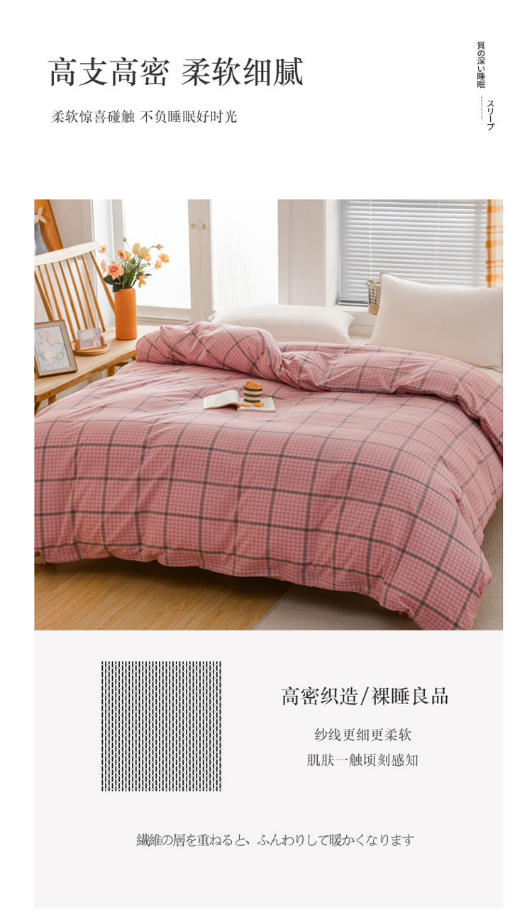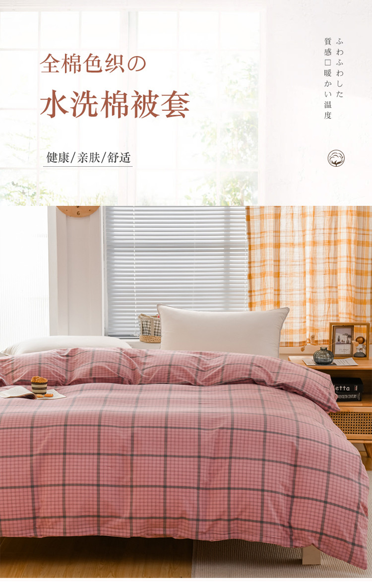 柠萌家居 2022新款A类全棉色织水洗棉单被套 瓦尔粉