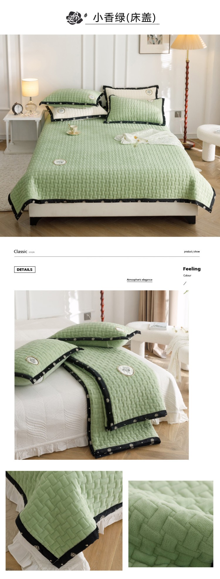 (总)菊上家纺 2025新款高克重5D雕花牛奶绒时尚仿皮草国潮风床盖四件套-羽妃系列,羽妃-米咖,羽妃-豆绿,羽妃-玫粉