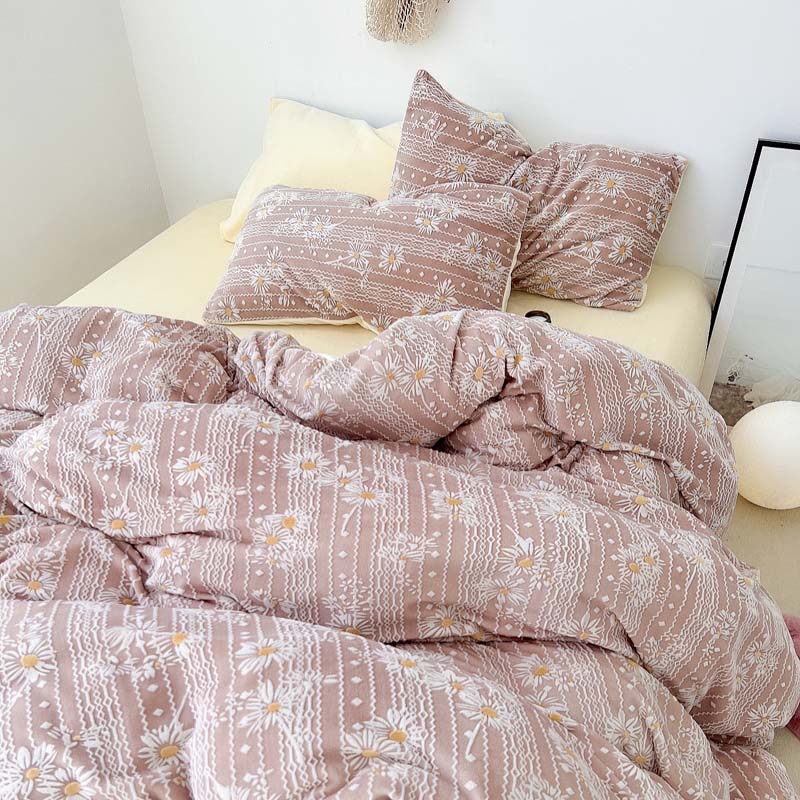 商品名称:例外home 2022新款小雏菊牛奶绒四件套-实拍图 咖