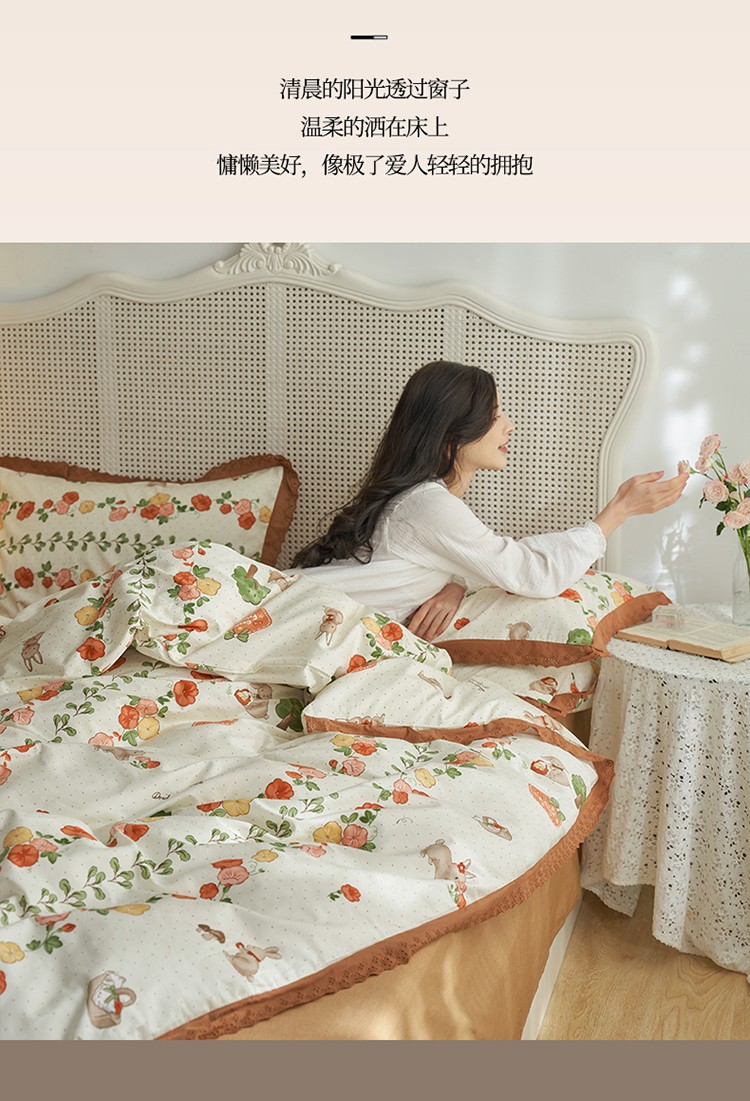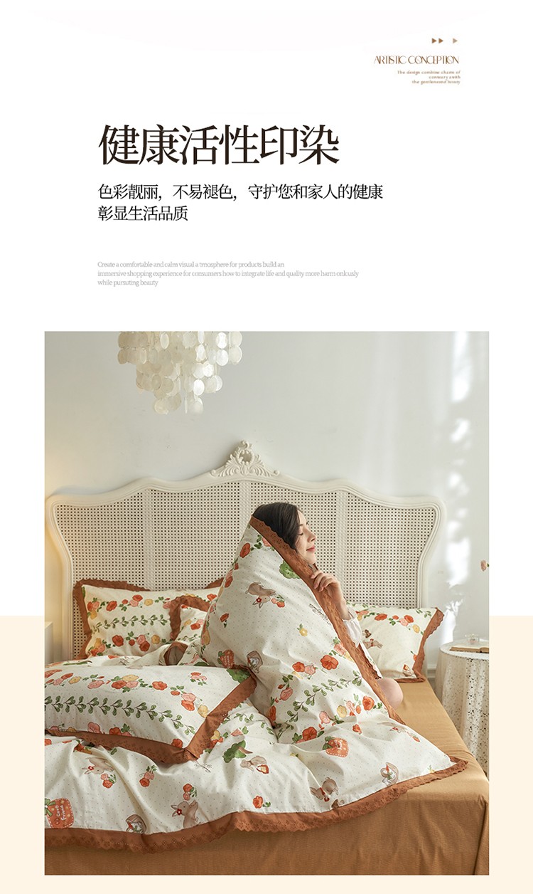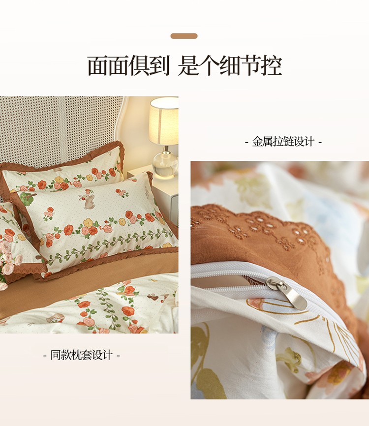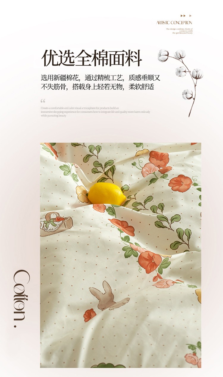(总)蓝邻家纺 2024新款小清新印花全棉四件套学生宿舍三件套,茶园兔,风翩,机灵兔熊,可妮露,藤蔓兔,筱薇
