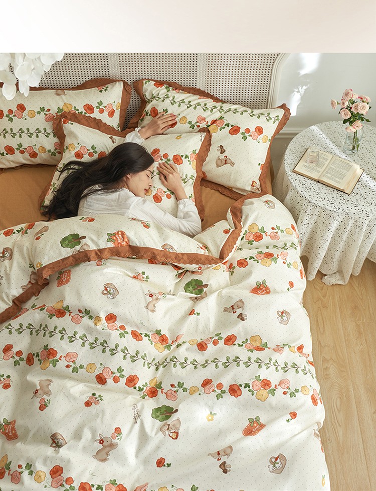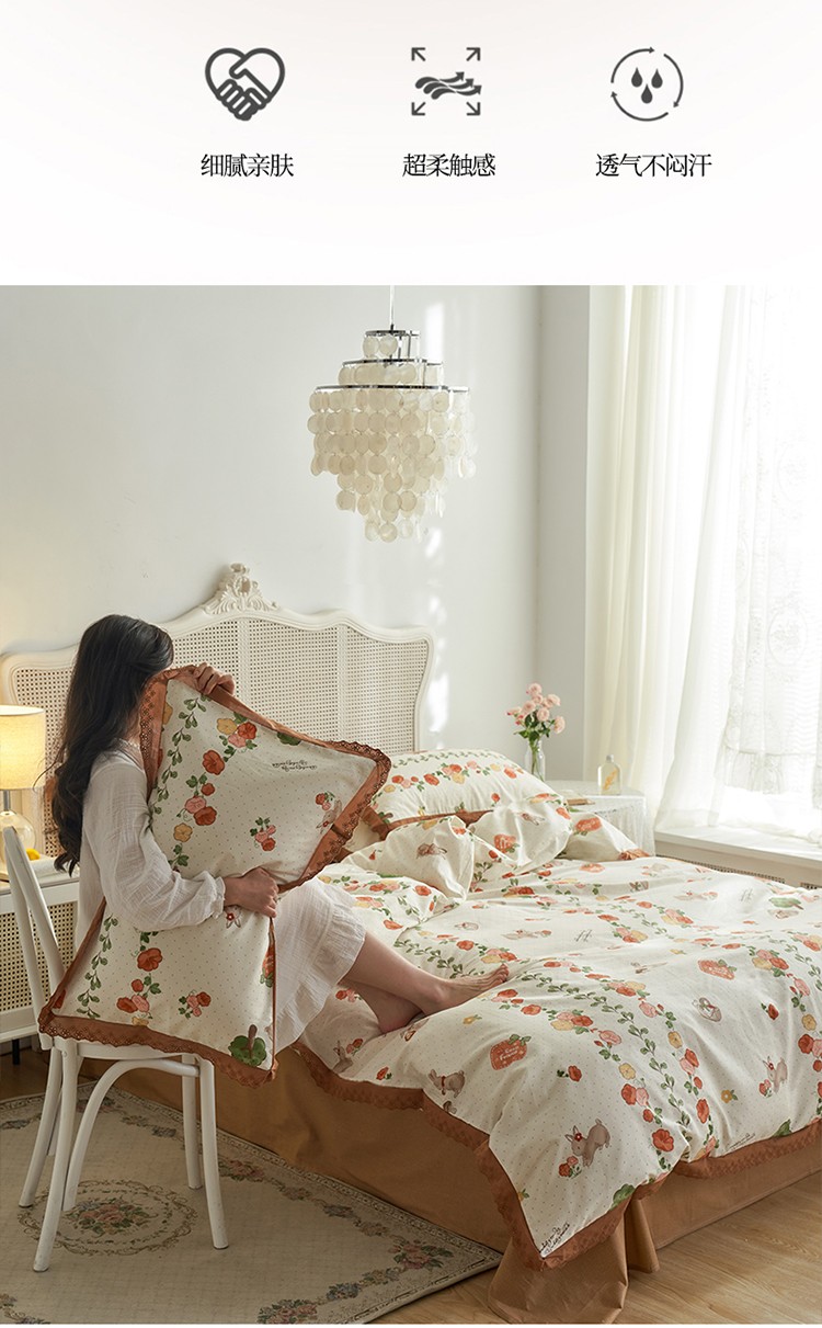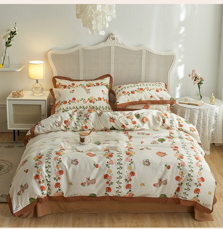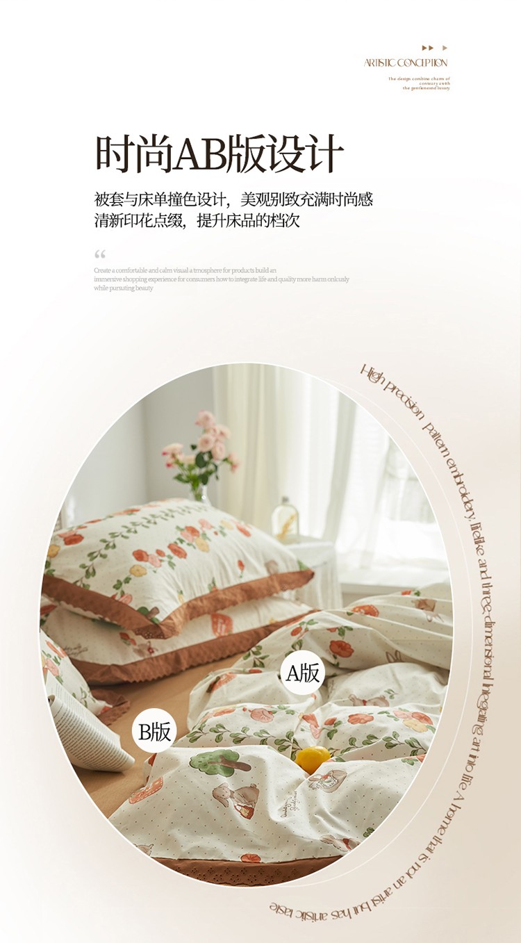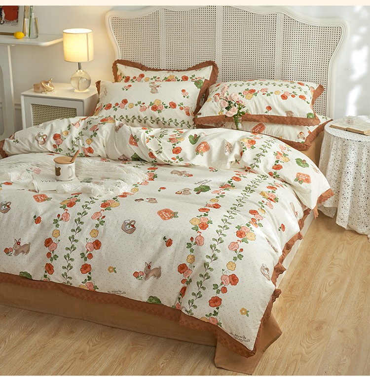 (总)蓝邻家纺 2024新款小清新印花全棉四件套学生宿舍三件套,茶园兔,风翩,机灵兔熊,可妮露,藤蔓兔,筱薇